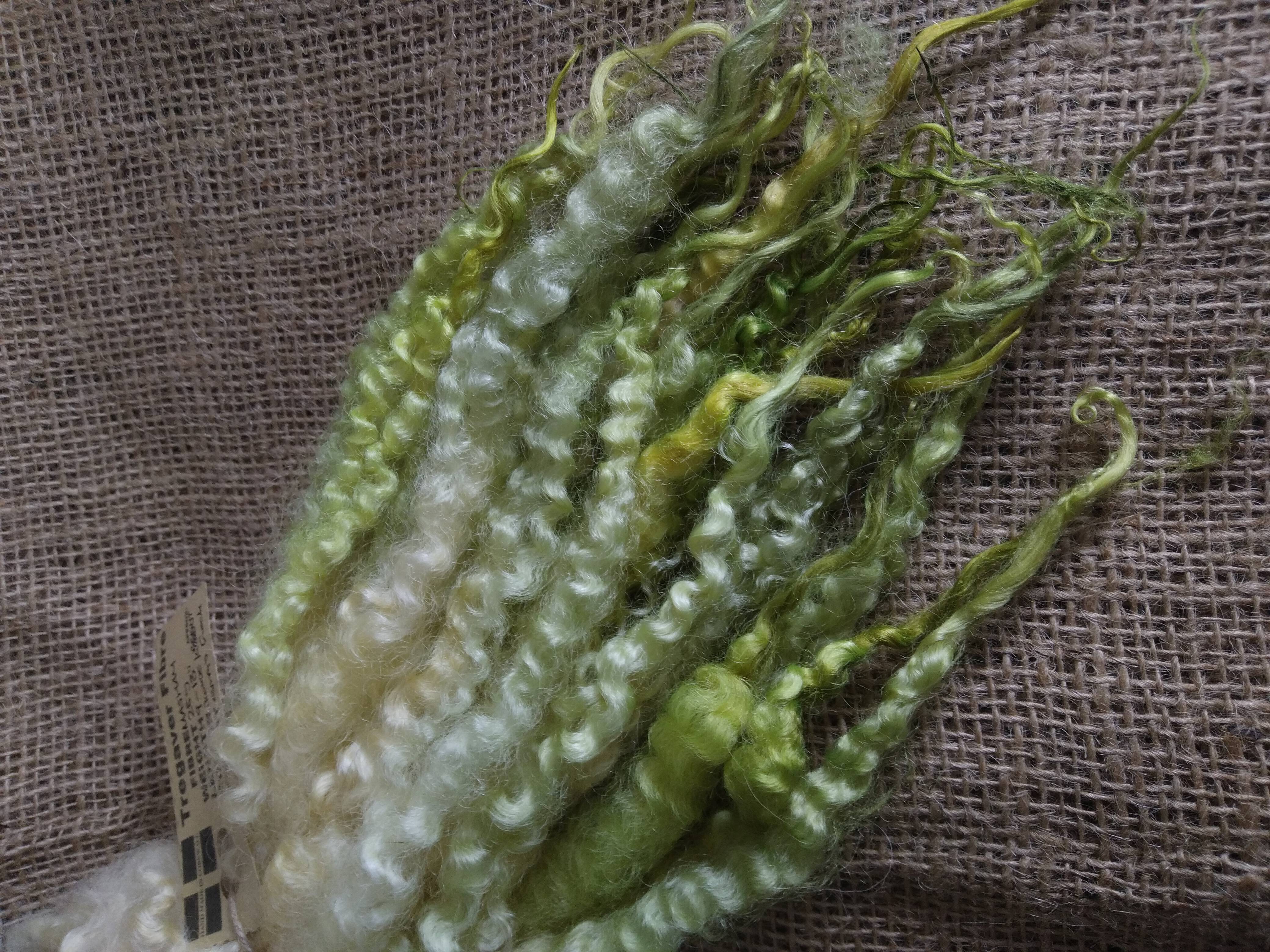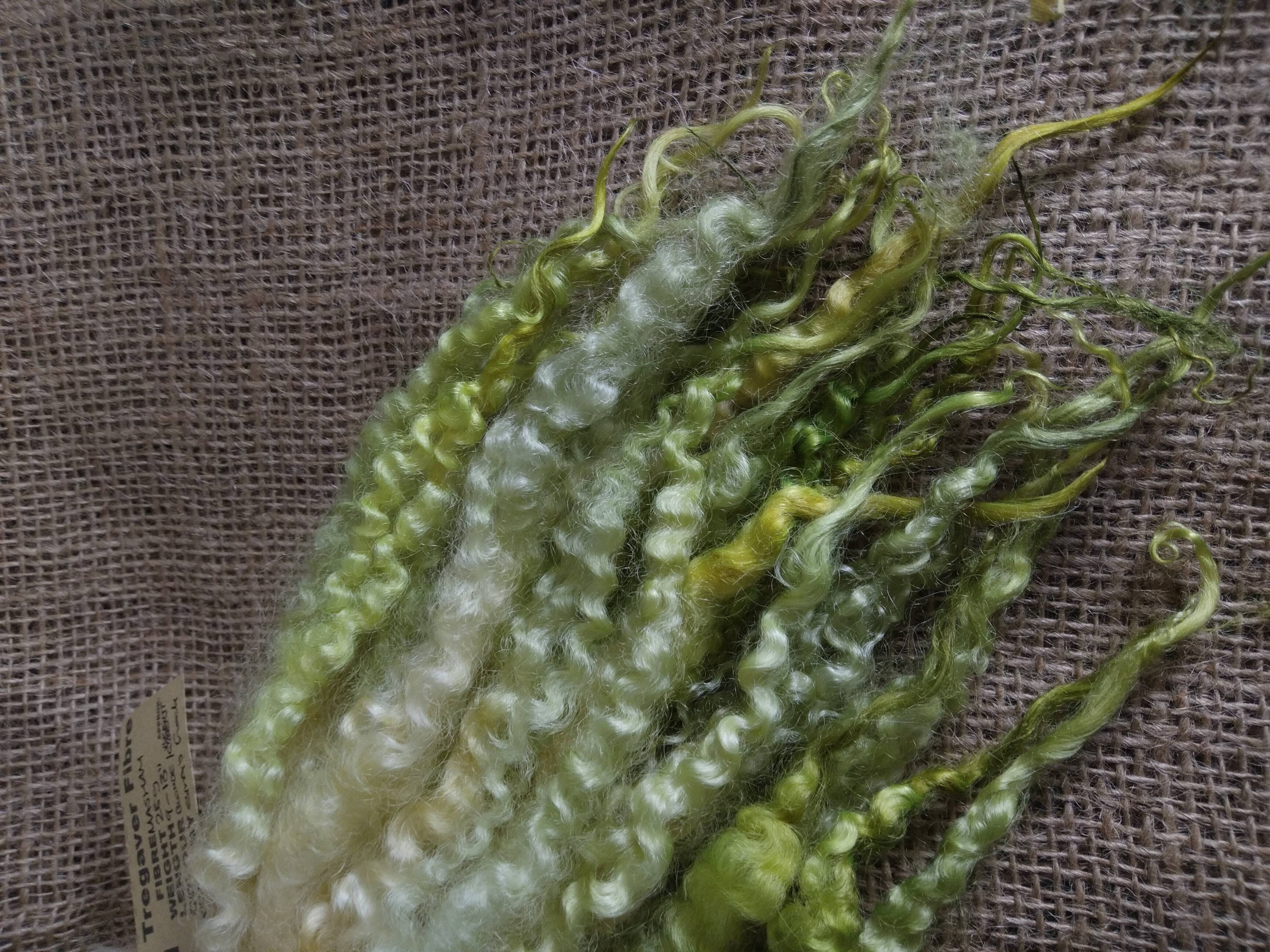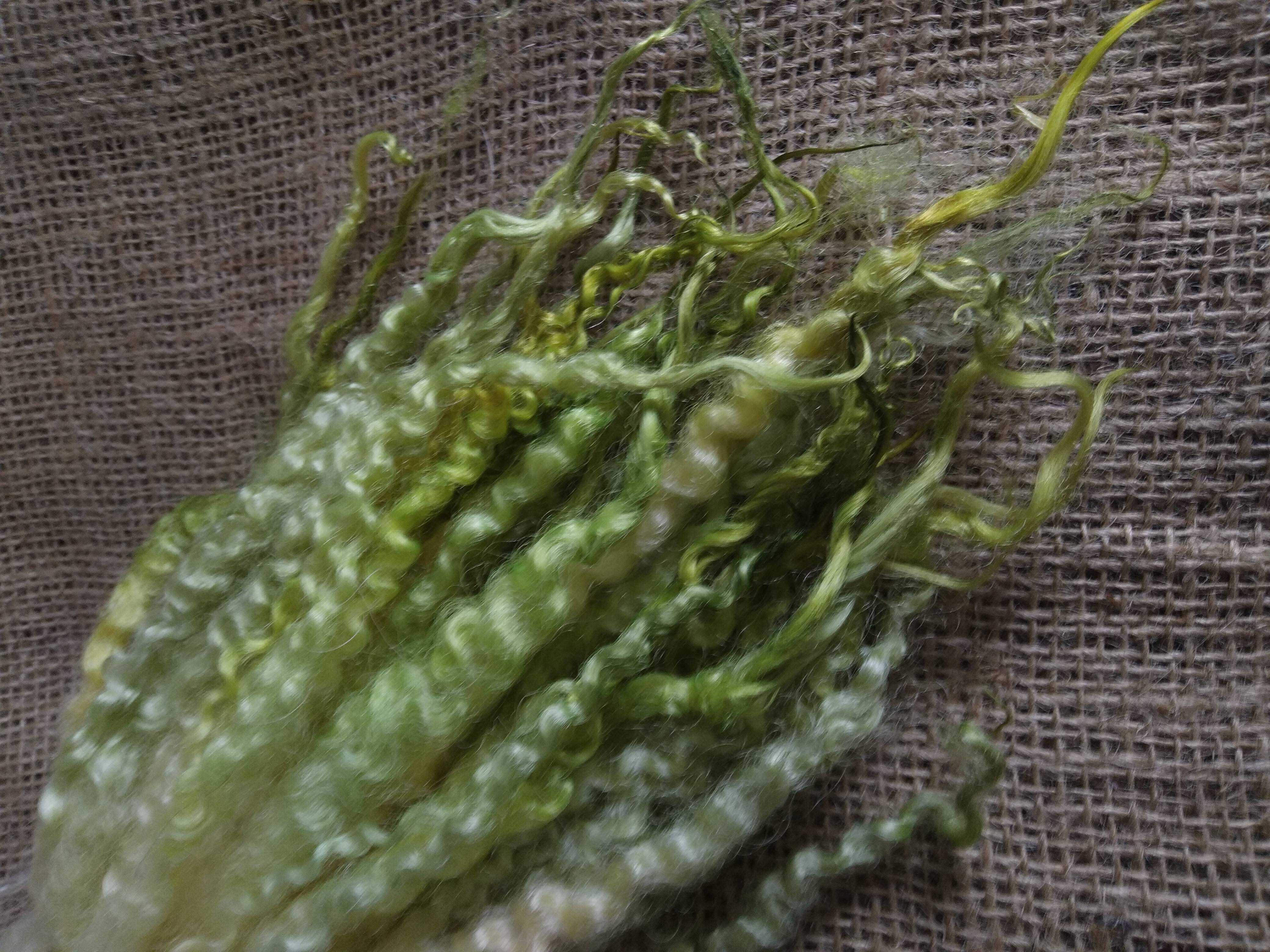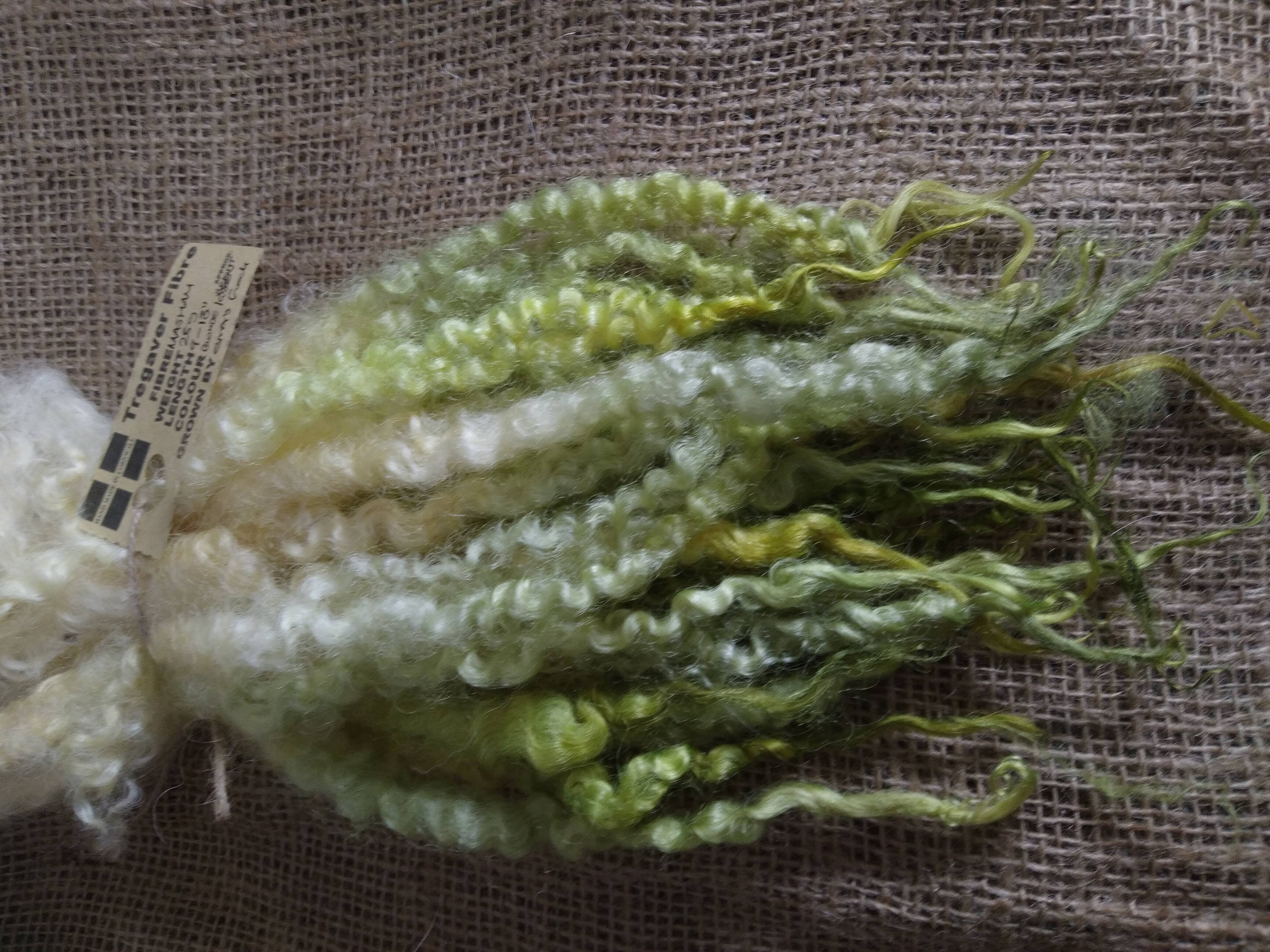 Blonde with bright green dip mix Masham wool Locks, approx 8-13", various weights