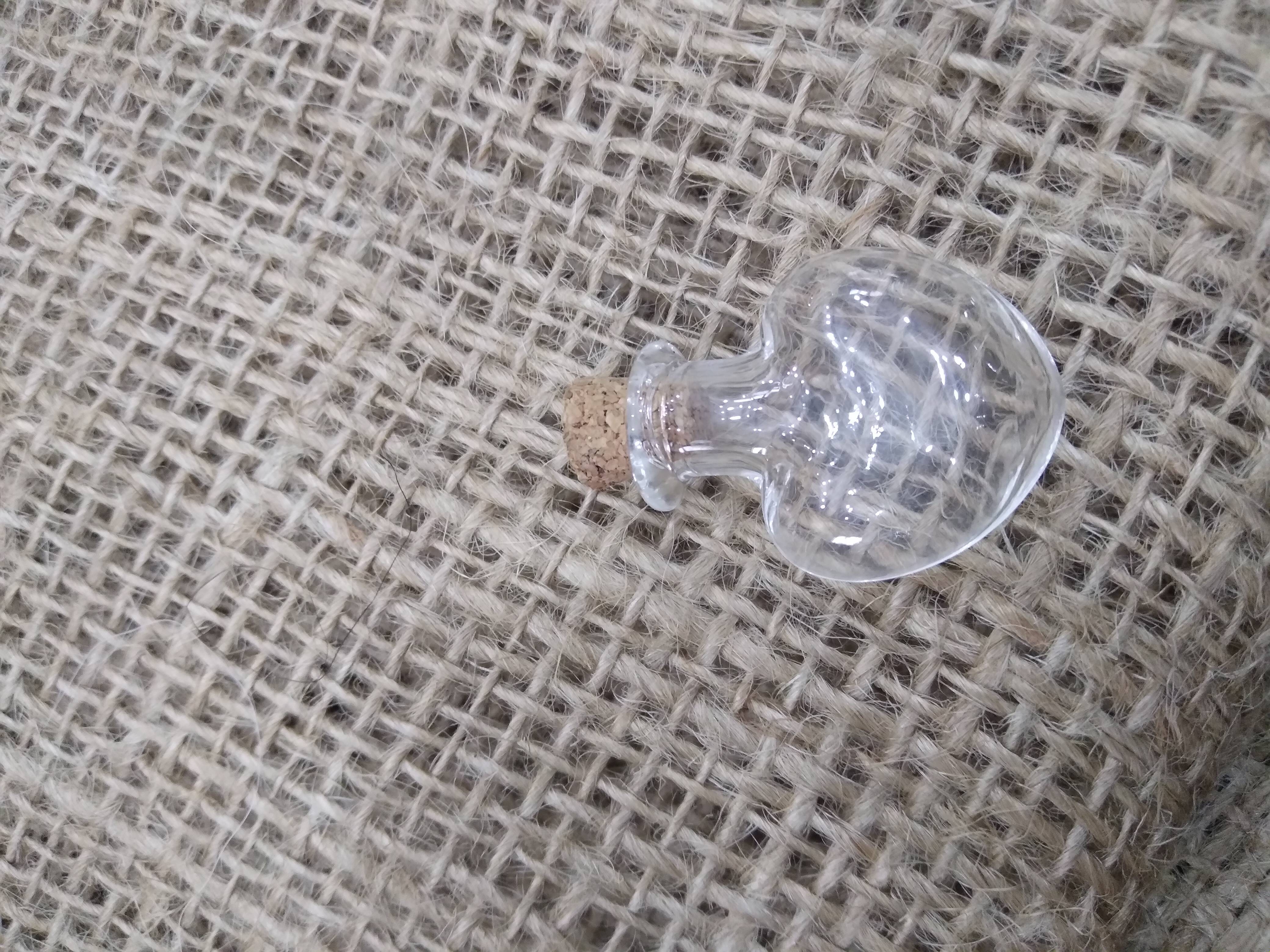 Miniature heart shaped glass potion bottle with cork, size approx 2.5cm x 2.5cm