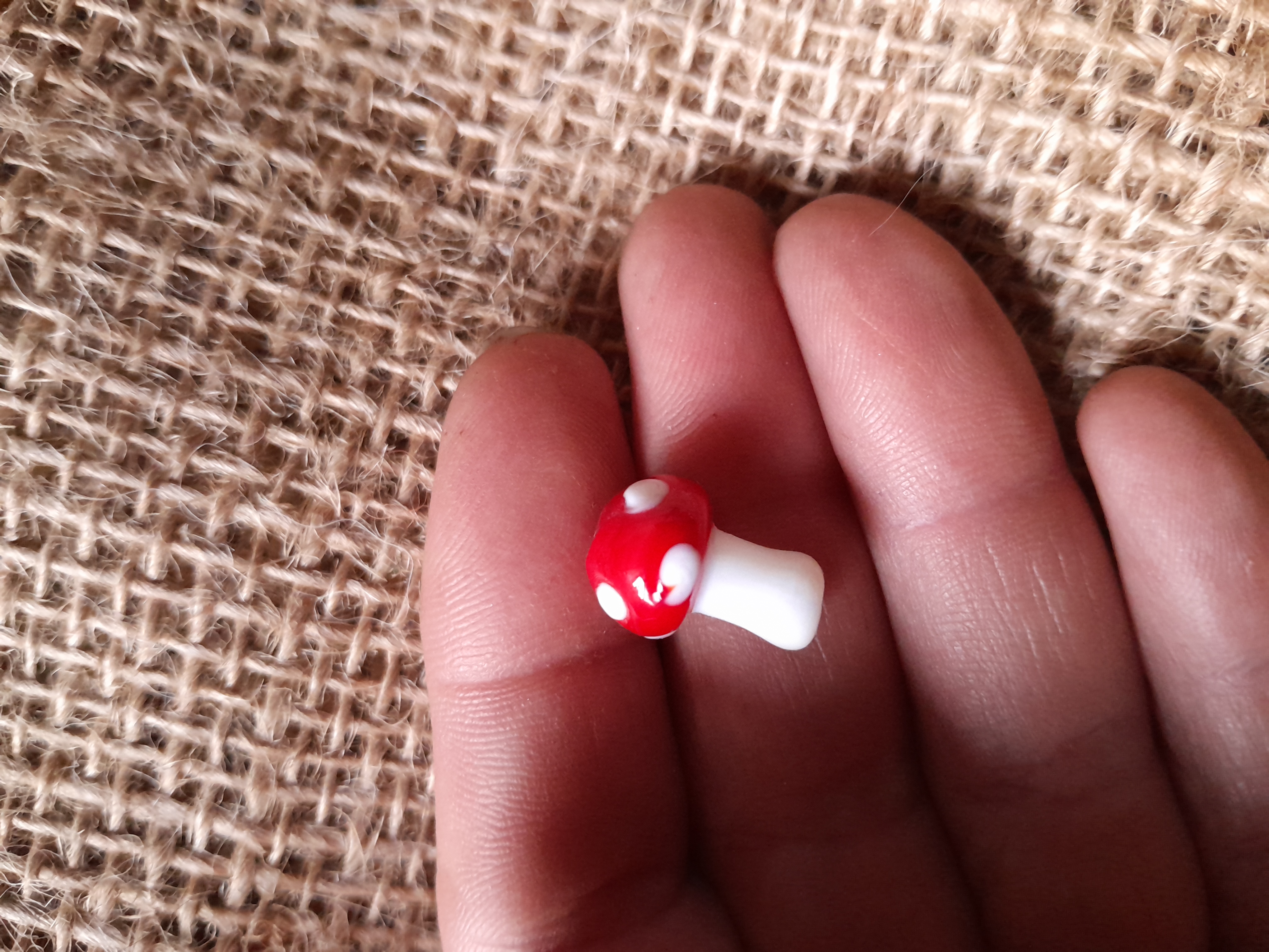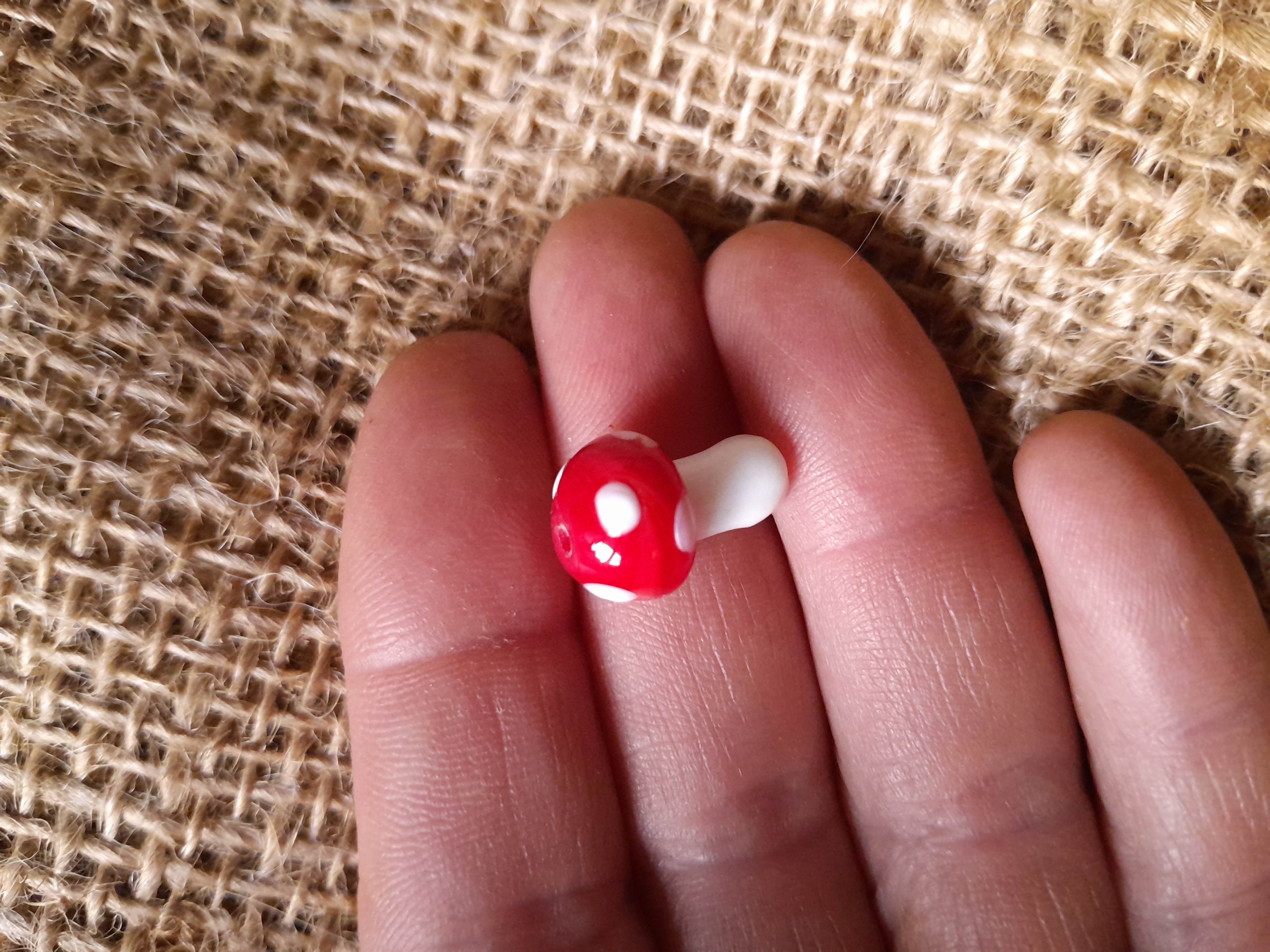 miniature red and white mushroom glass bead miniature red and white mushroom glass bead miniature red and white mushroom glass bead miniature red and white mushroom glass bead