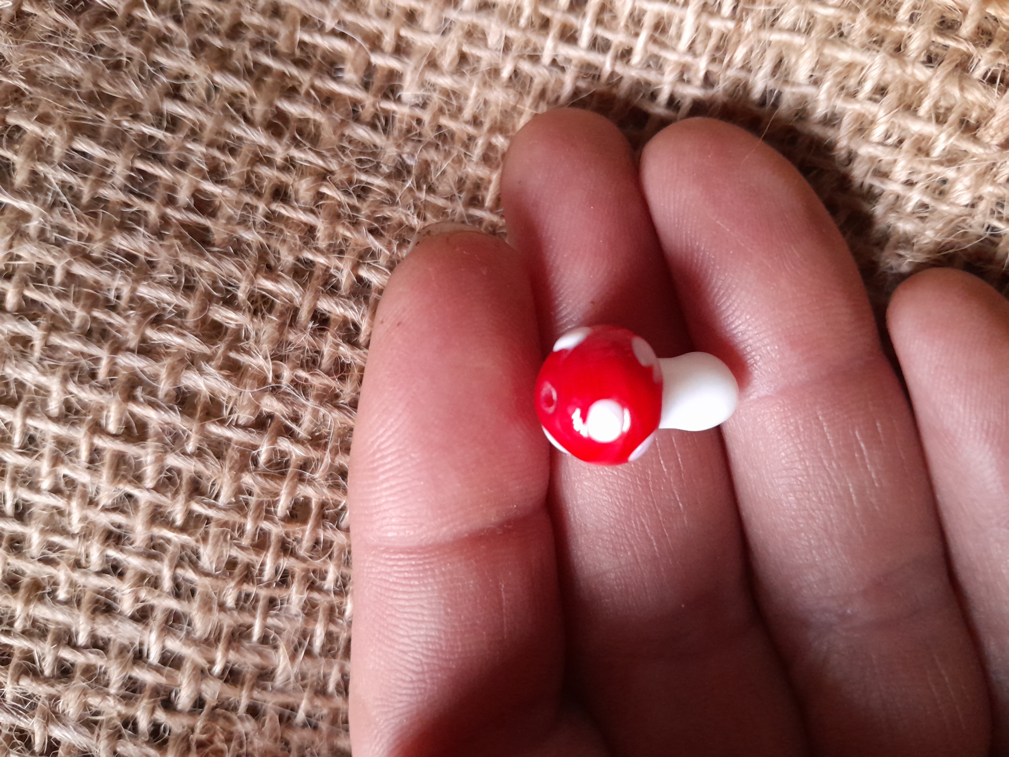 Miniature red and white mushroom  bead.