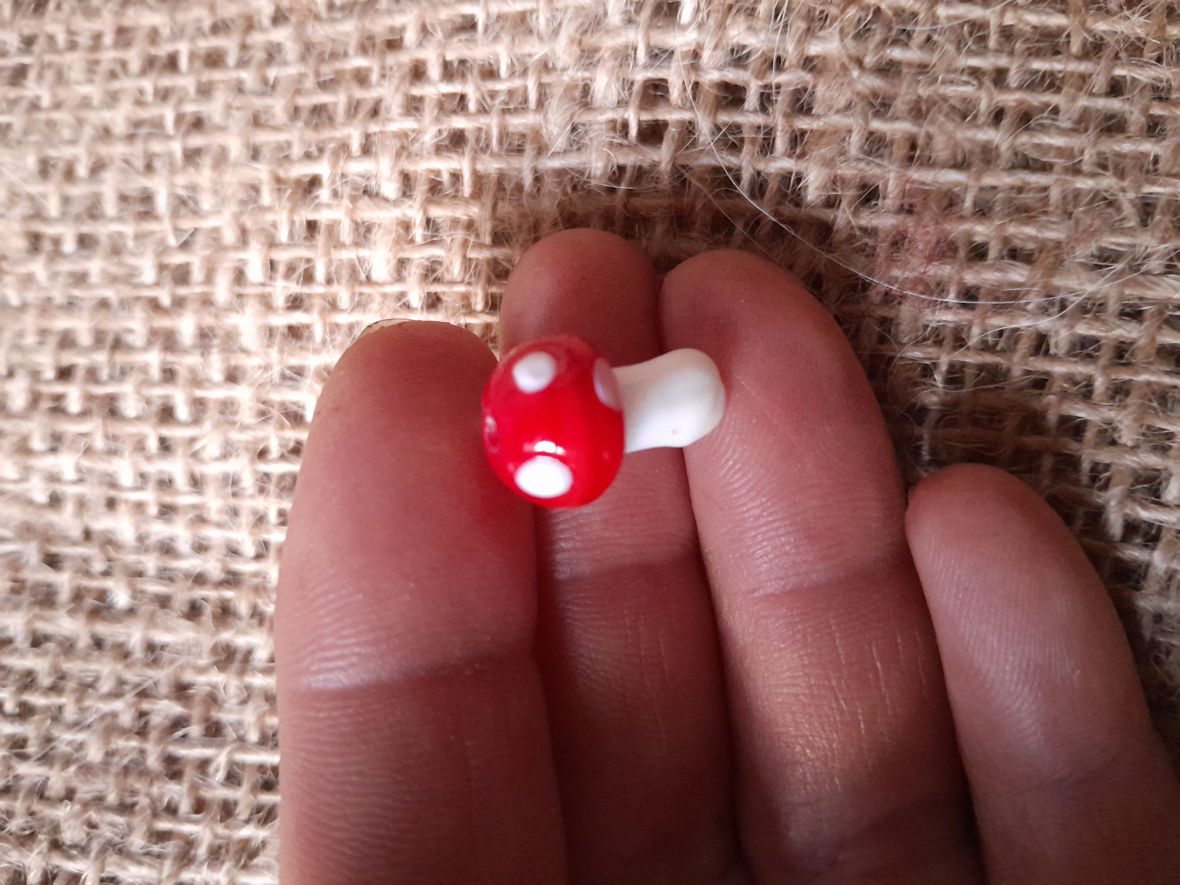 miniature red and white mushroom glass bead