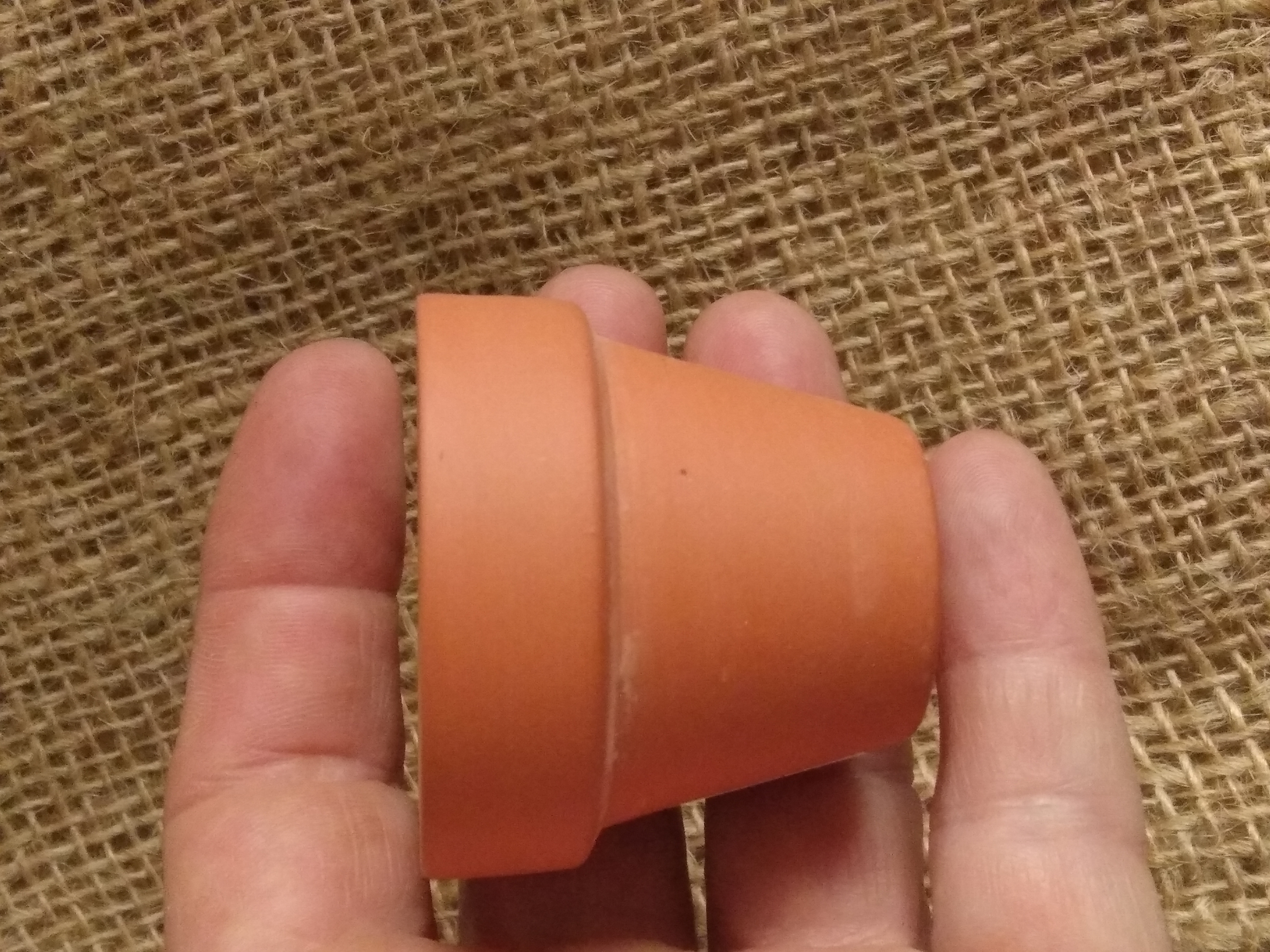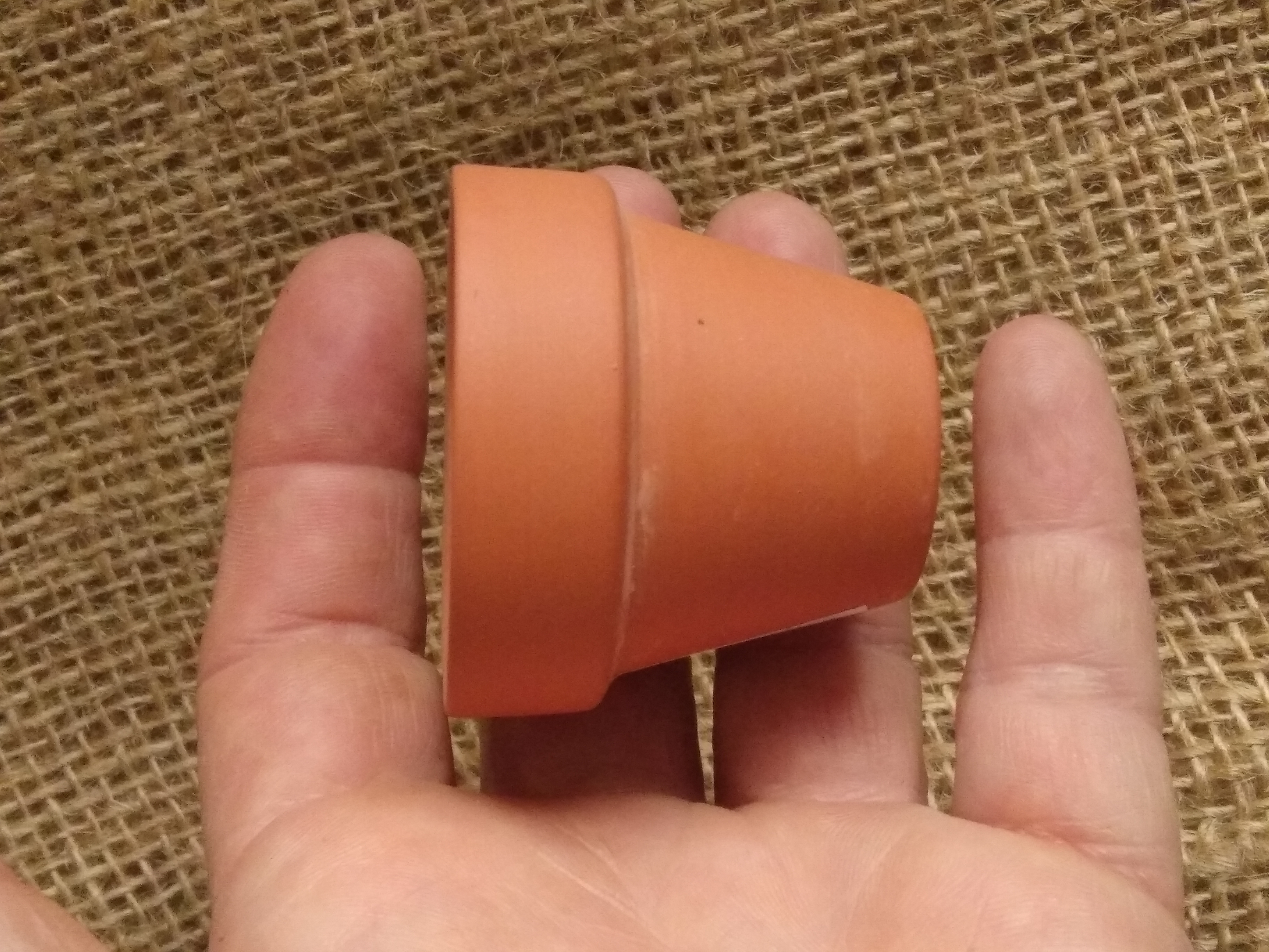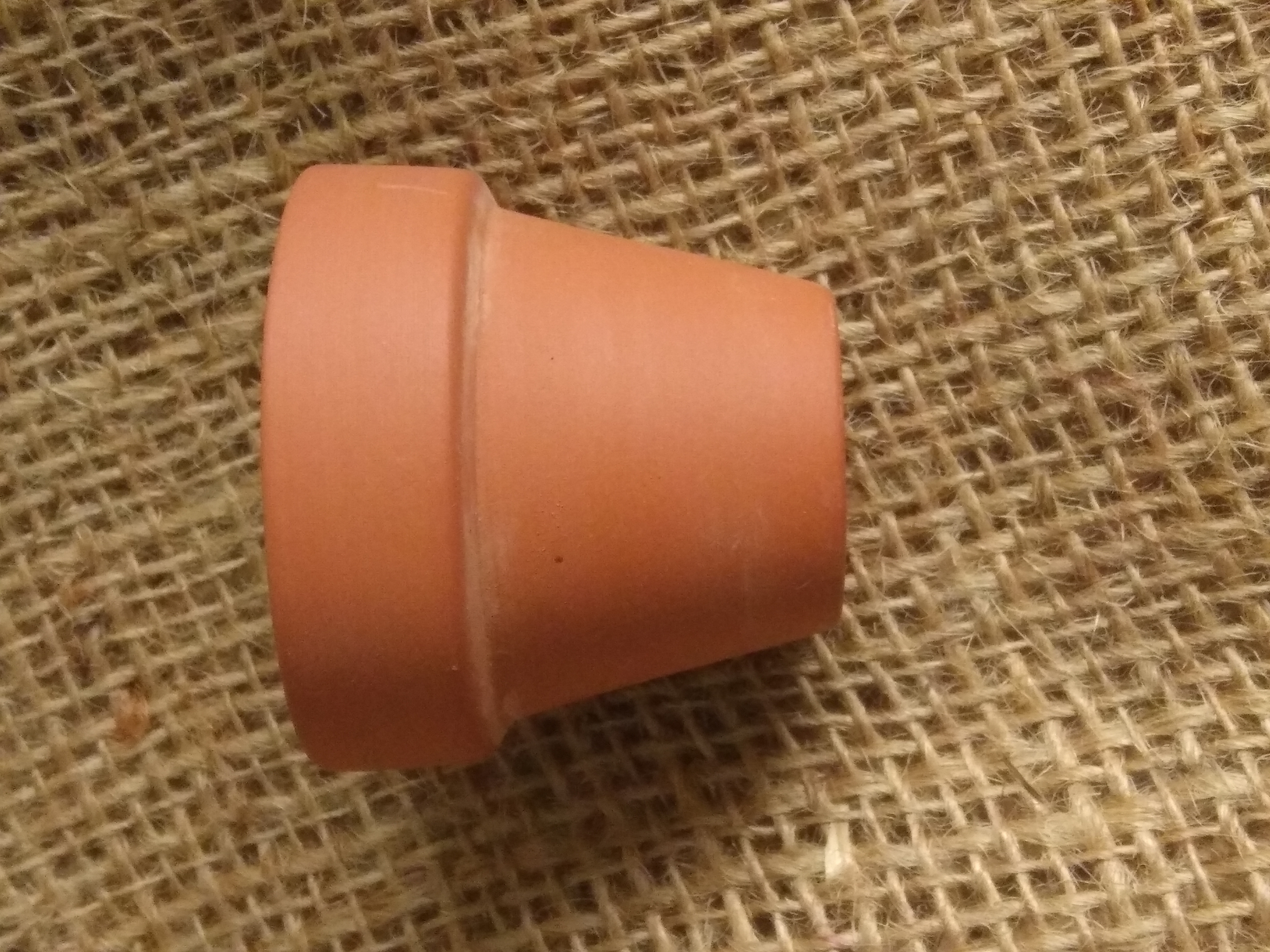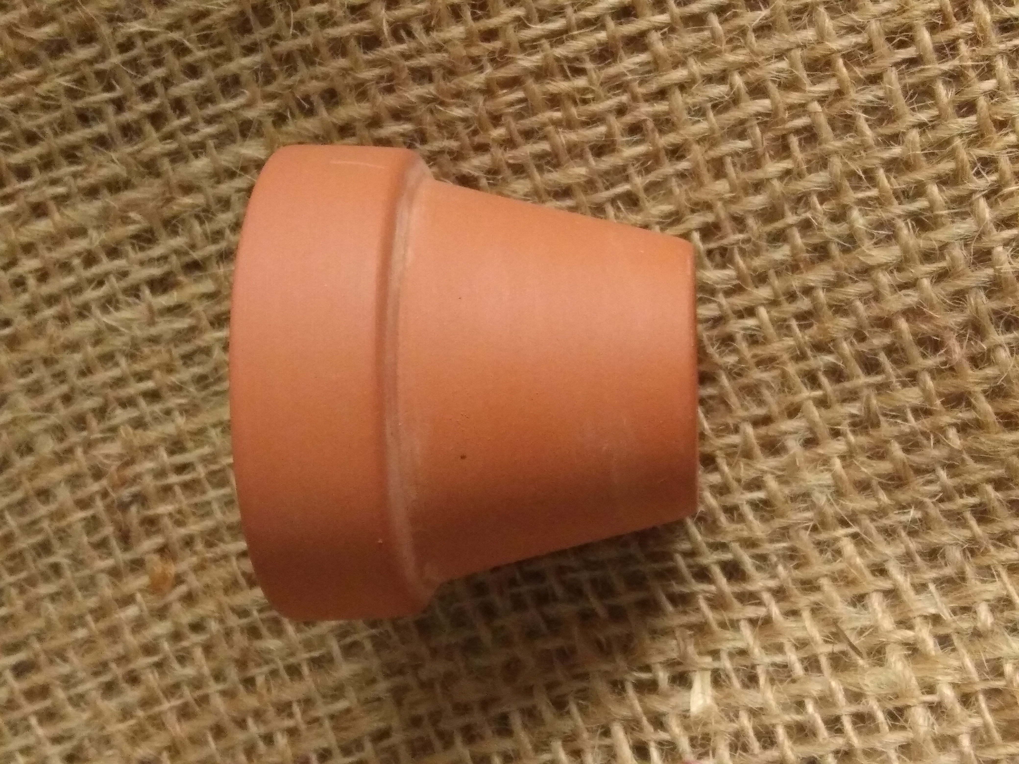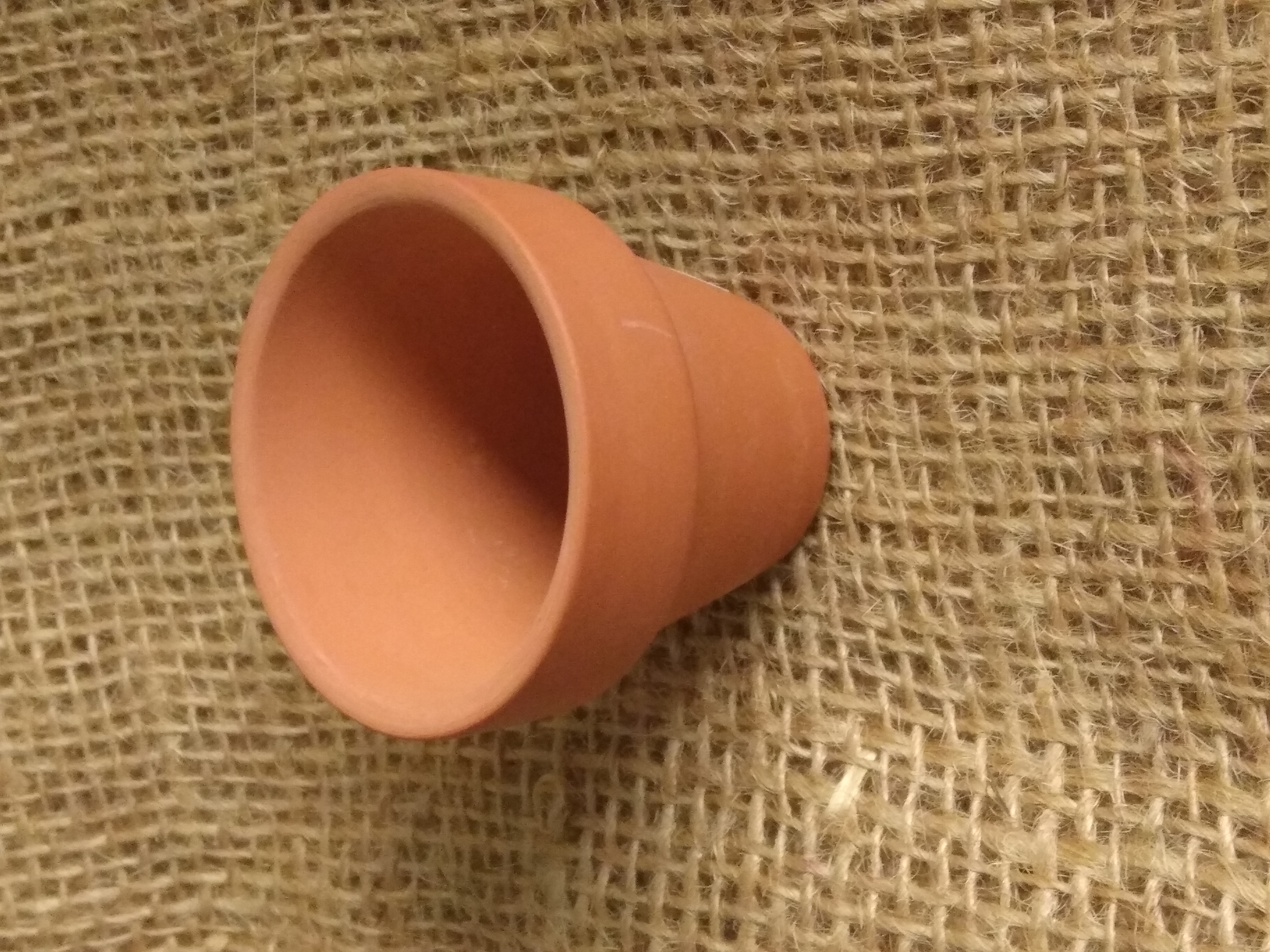 Miniature terracotta plant pot, approx 4 cm high by 5 cm wide at it's widest point