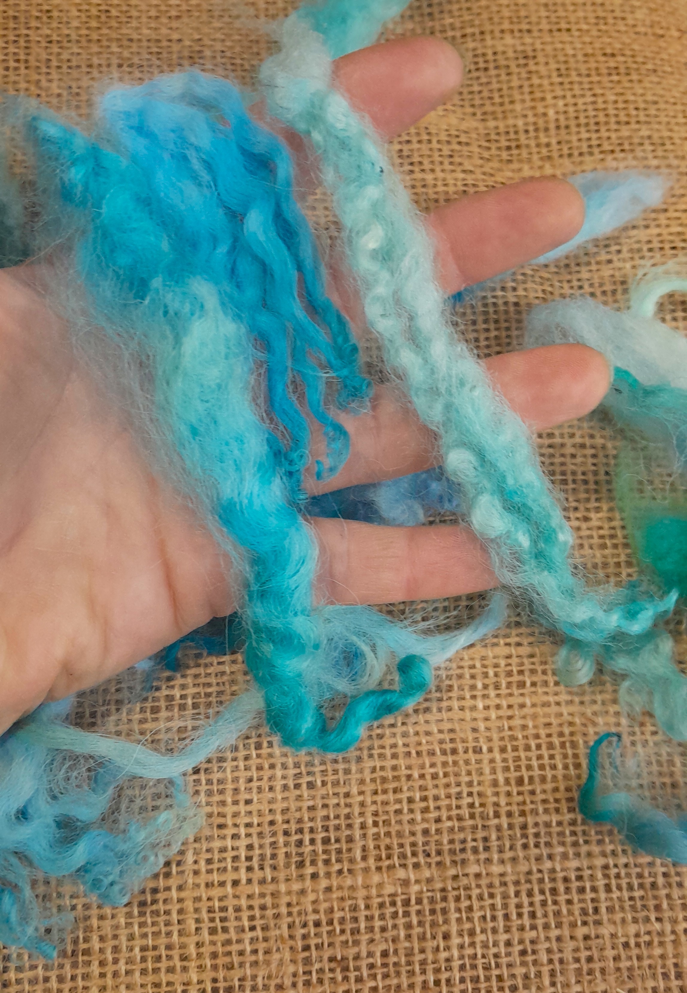 Each 10g bundle is filled with vibrant, hand-dyed, colour themed hues and dreamy textures - this mixed breed batch was all dyed in the same dye batch, so the colour is consistent throughout the batch.