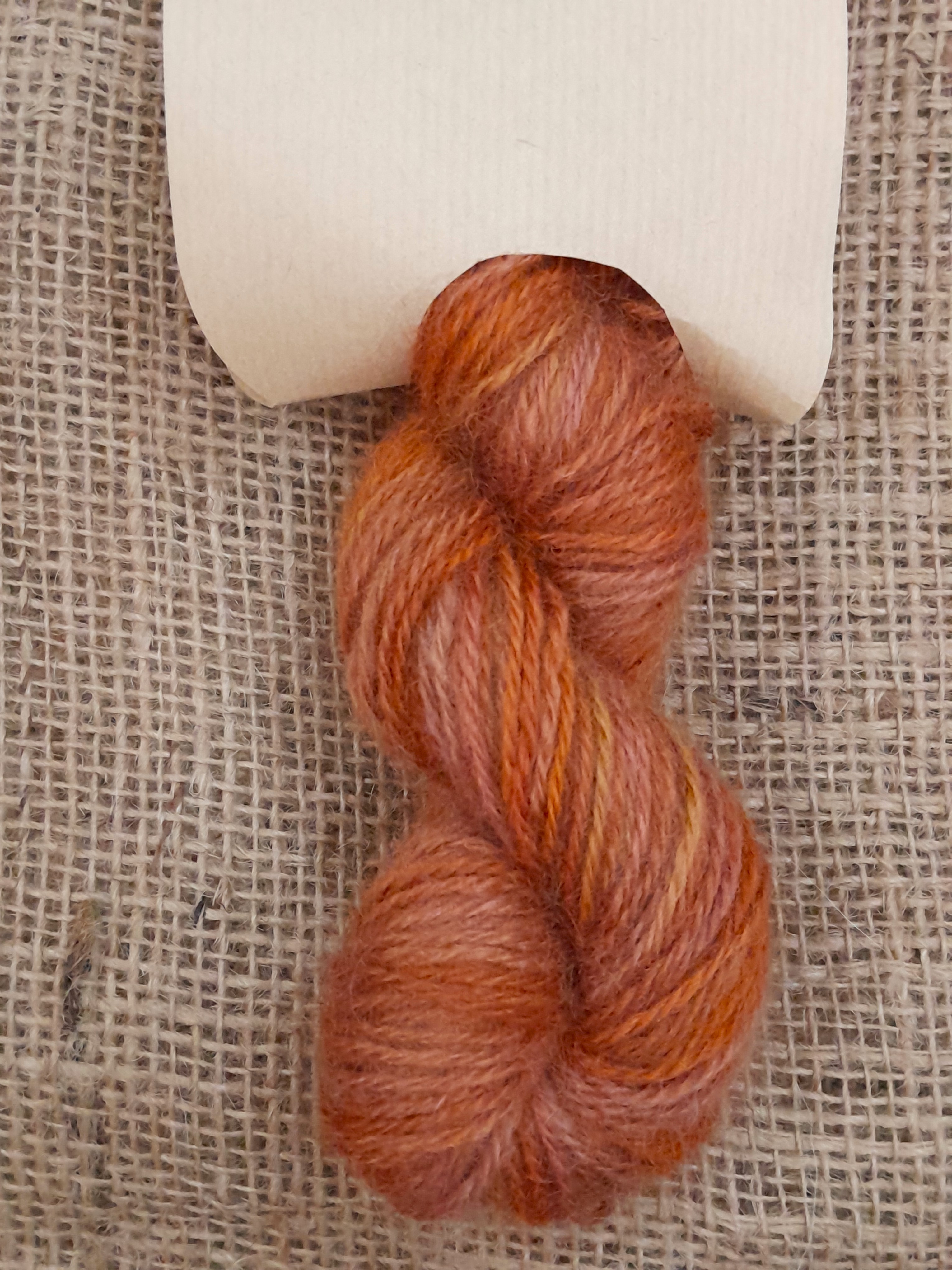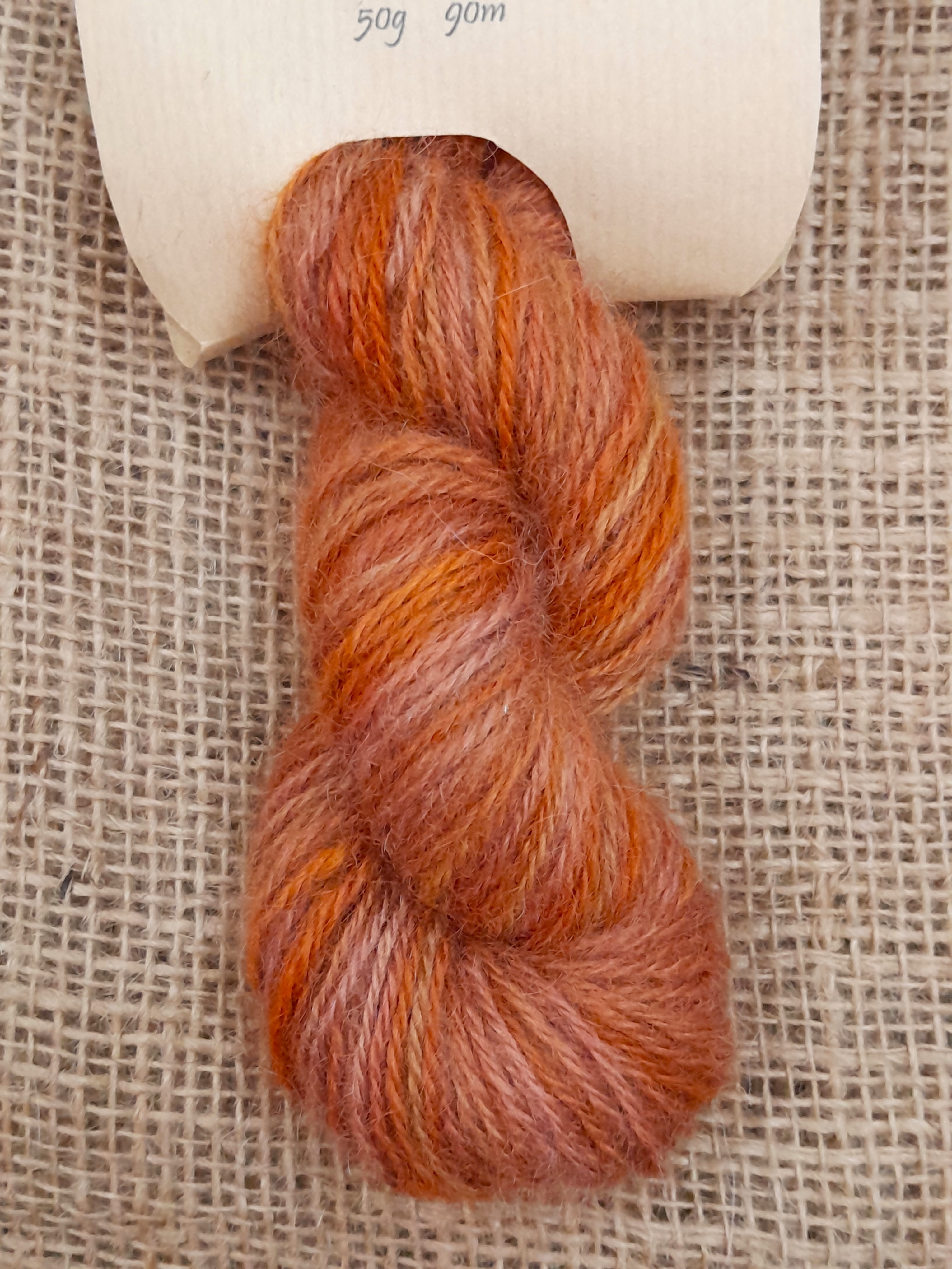 Professionally spun by the Natural Fibre Company in Launceston, Cornwall, this mohair yarn is spun as a light aran weight yarn, and each hank is 50g , with a length of 90m.