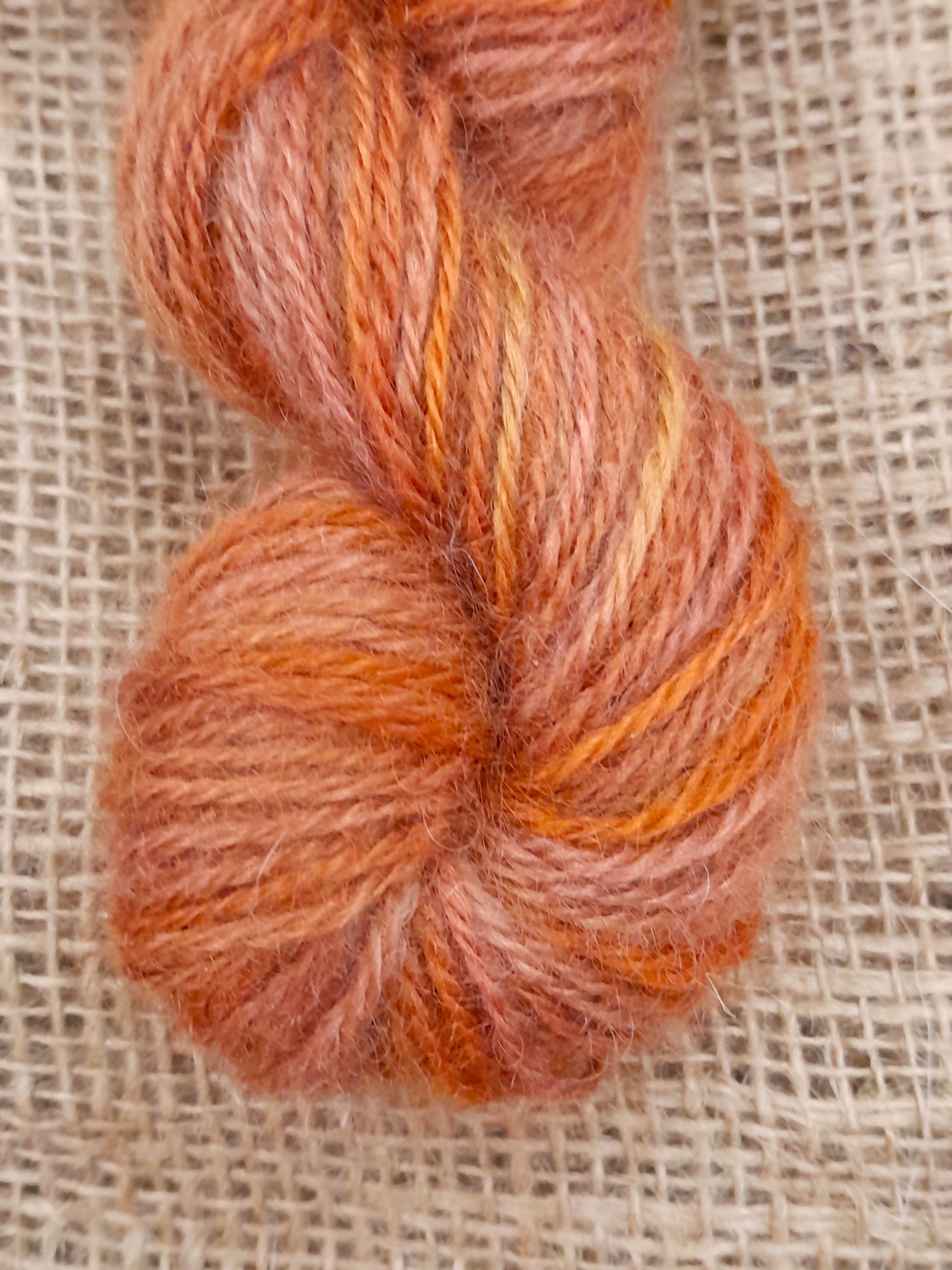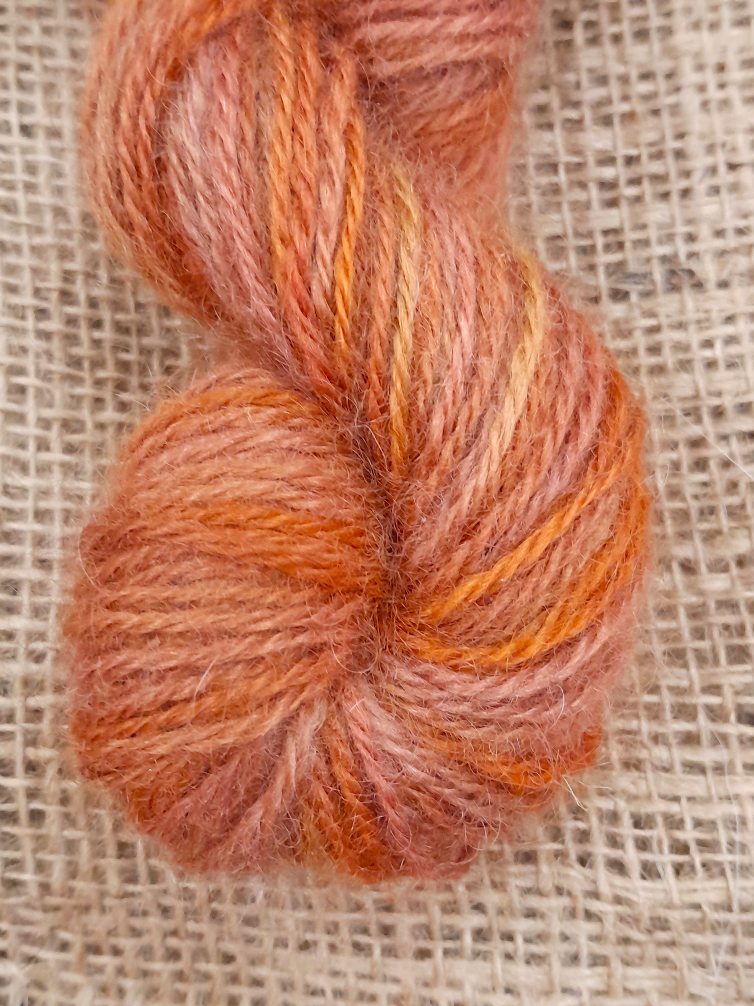 My mohair yarn is hand dyed in small batches, and as I hand blend the dyes, each batch is unique and unlikely to be repeated, so please do ensure you buy enough for your project.