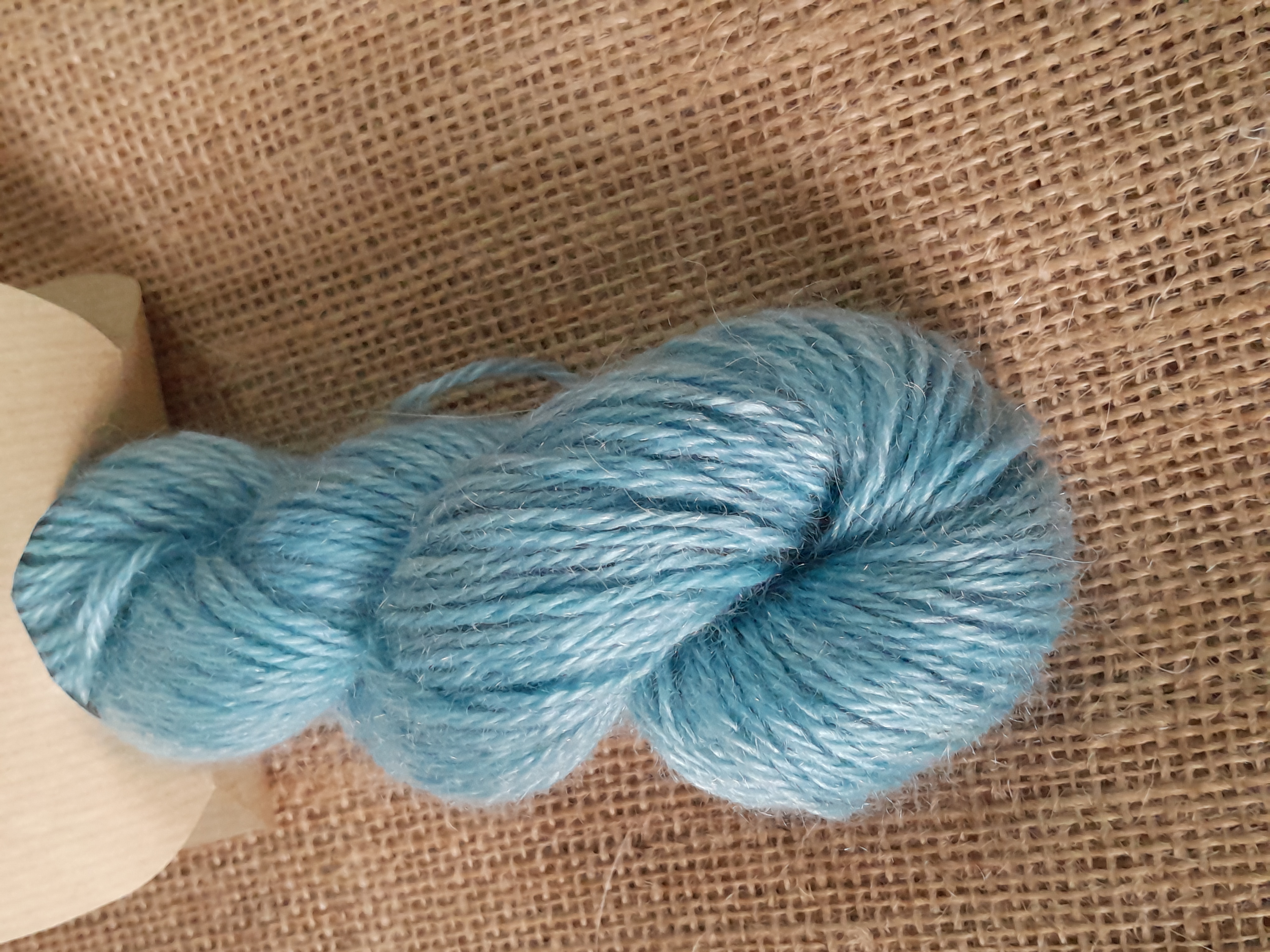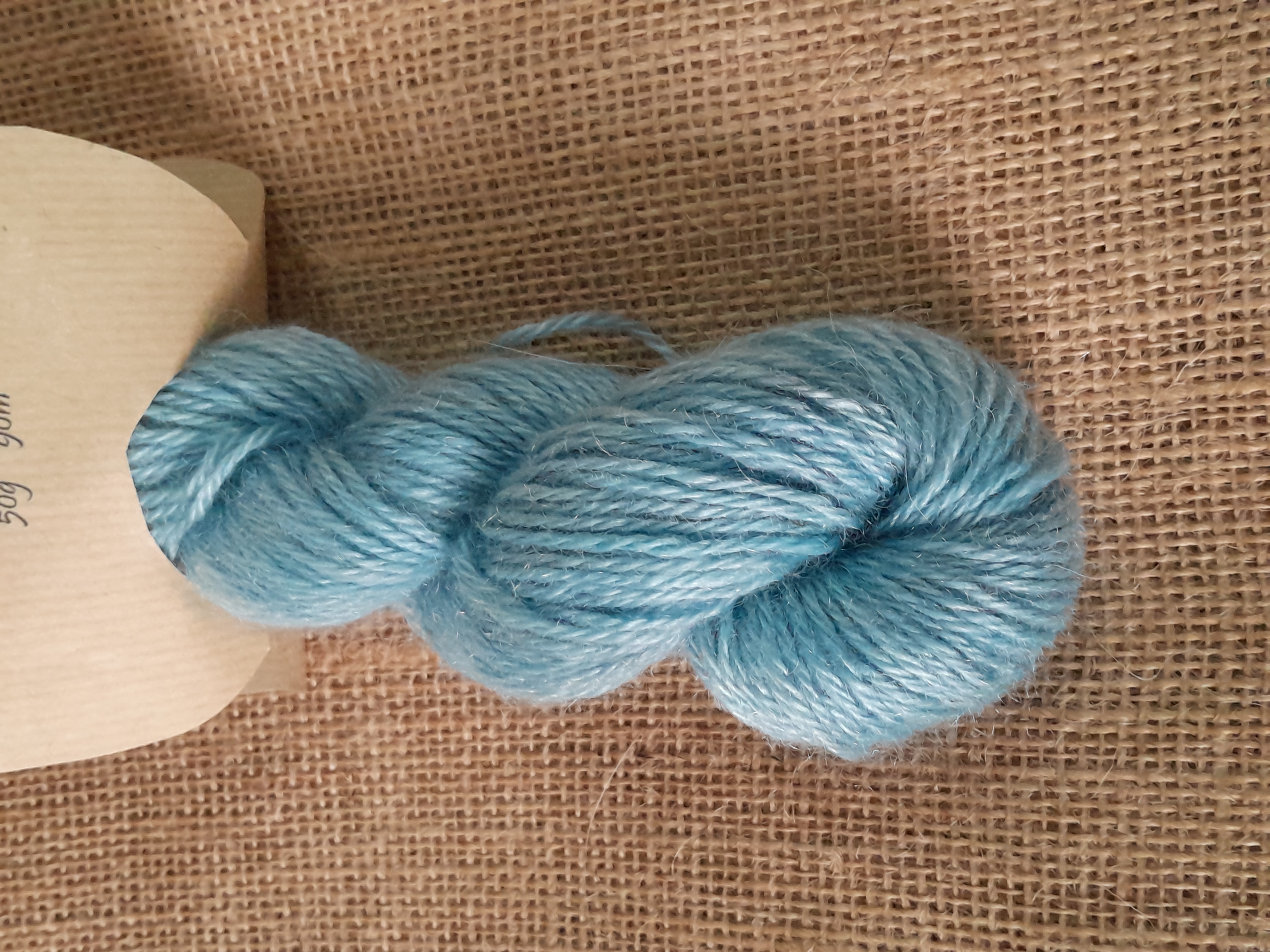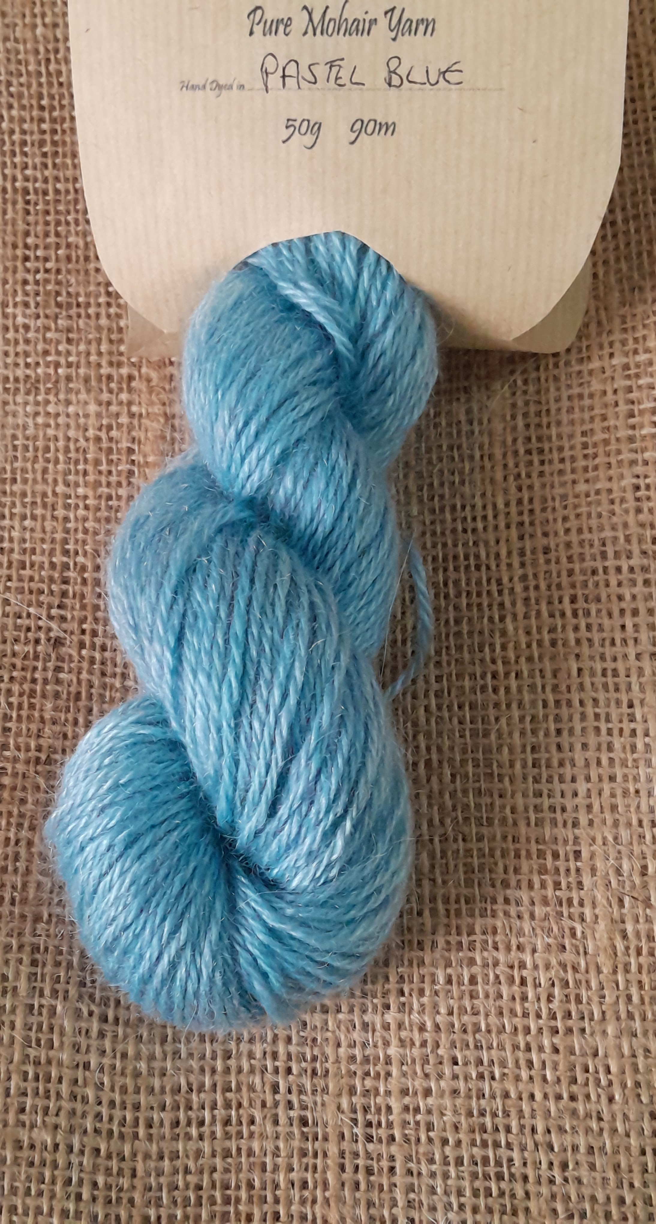 Professionally spun by the Natural Fibre Company in Launceston, Cornwall, this mohair yarn is spun as a light aran weight yarn, and each hank is 50g , with a length of 90m.