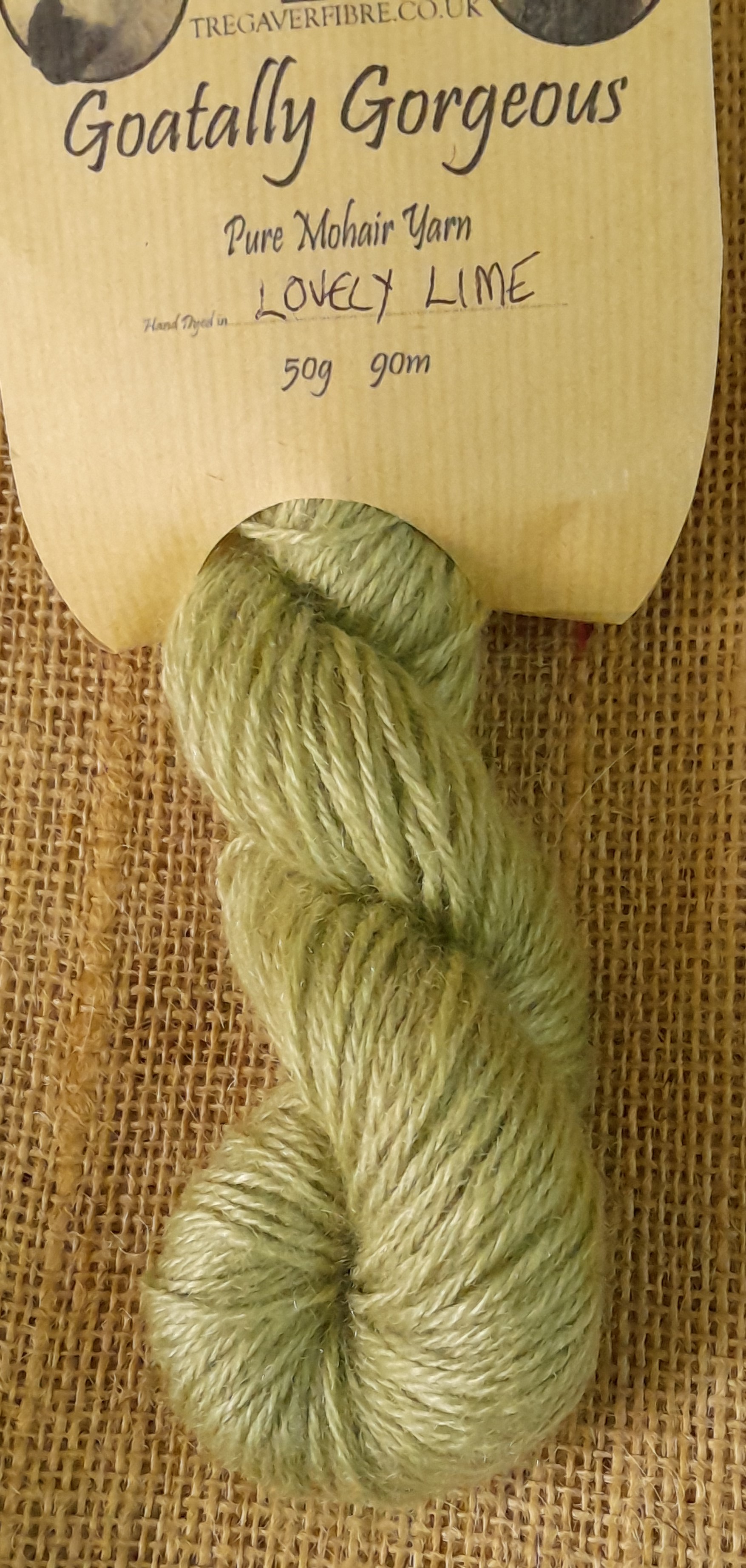Goatally Gorgeous Pure Mohair Yarn in Hand Dyed in Lovely Lime Green (v)
