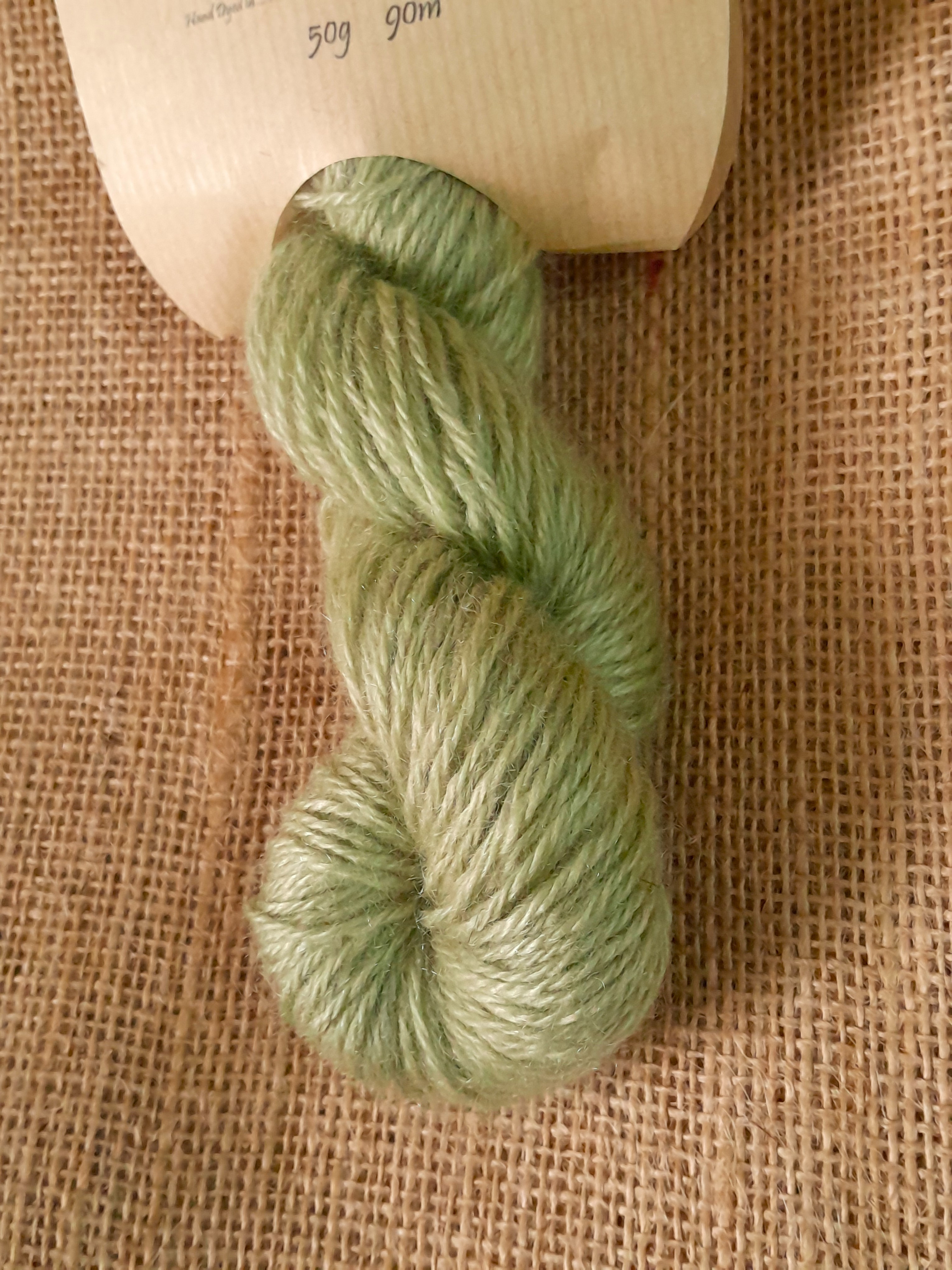Professionally spun by the Natural Fibre Company in Launceston, Cornwall, this mohair yarn is spun as a light aran weight yarn, and each hank is 50g , with a length of 90m.