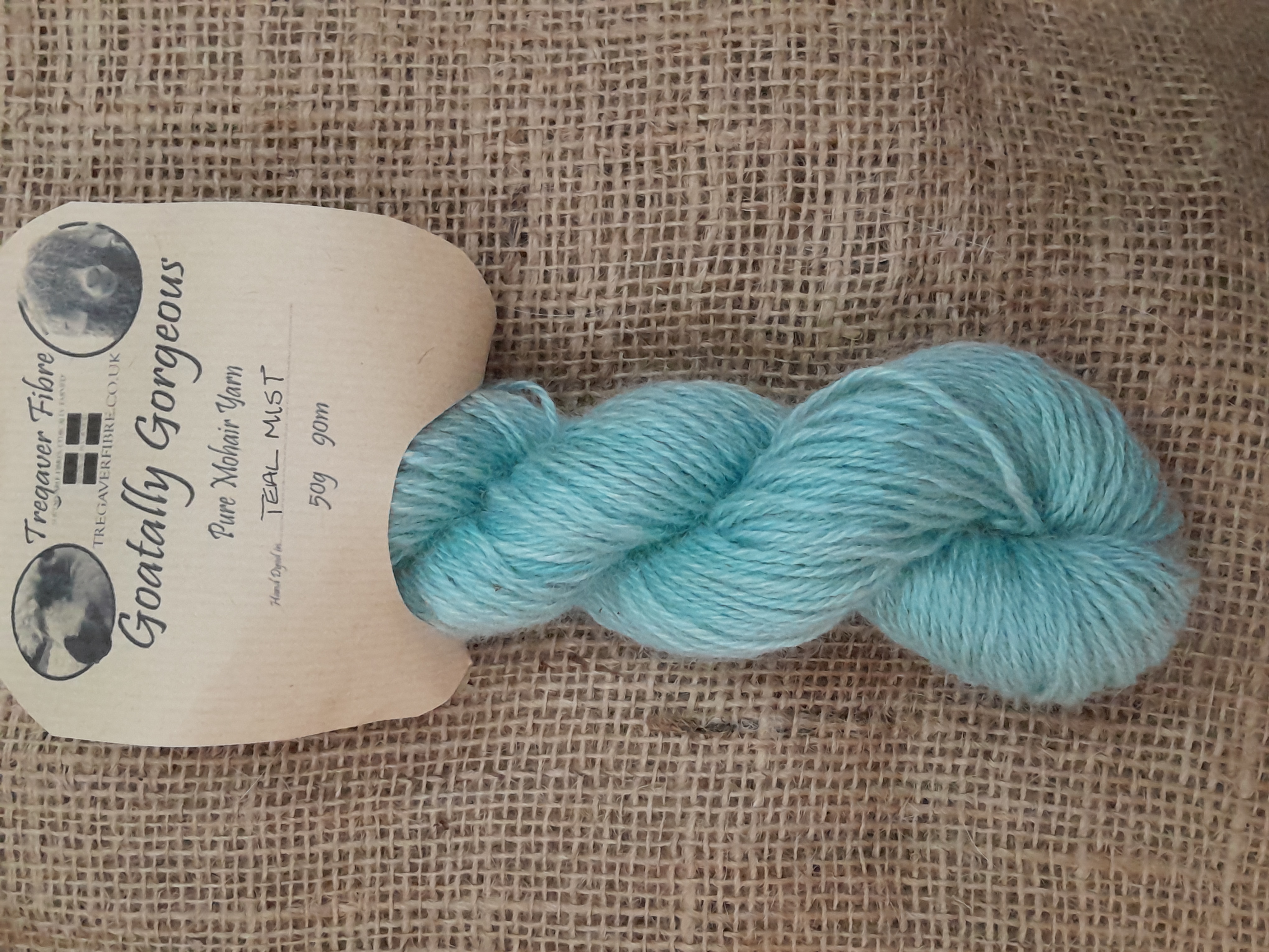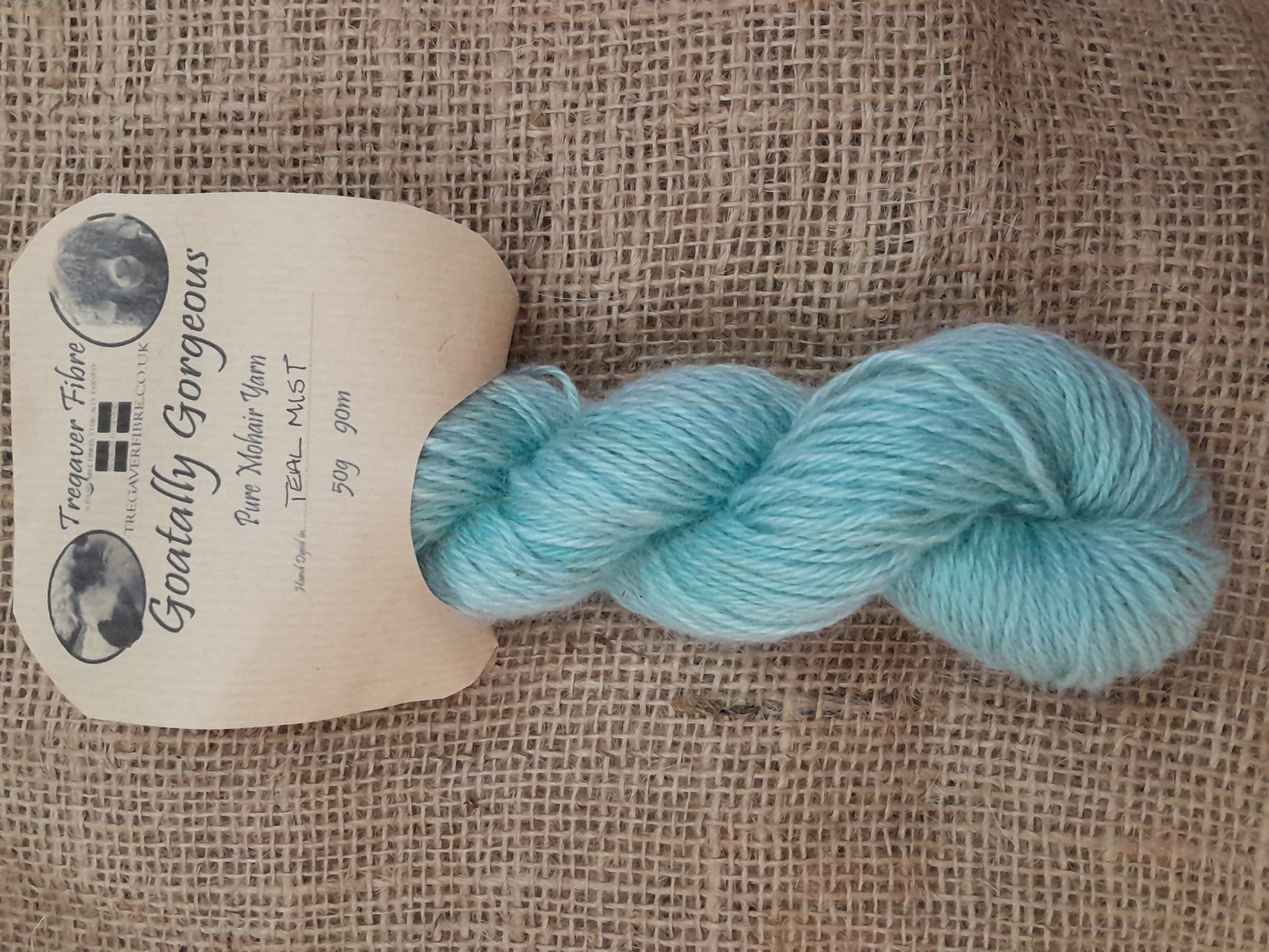 Goatally Gorgeous Pure Mohair Yarn in Hand Dyed in Teal Mist (v) blue/green