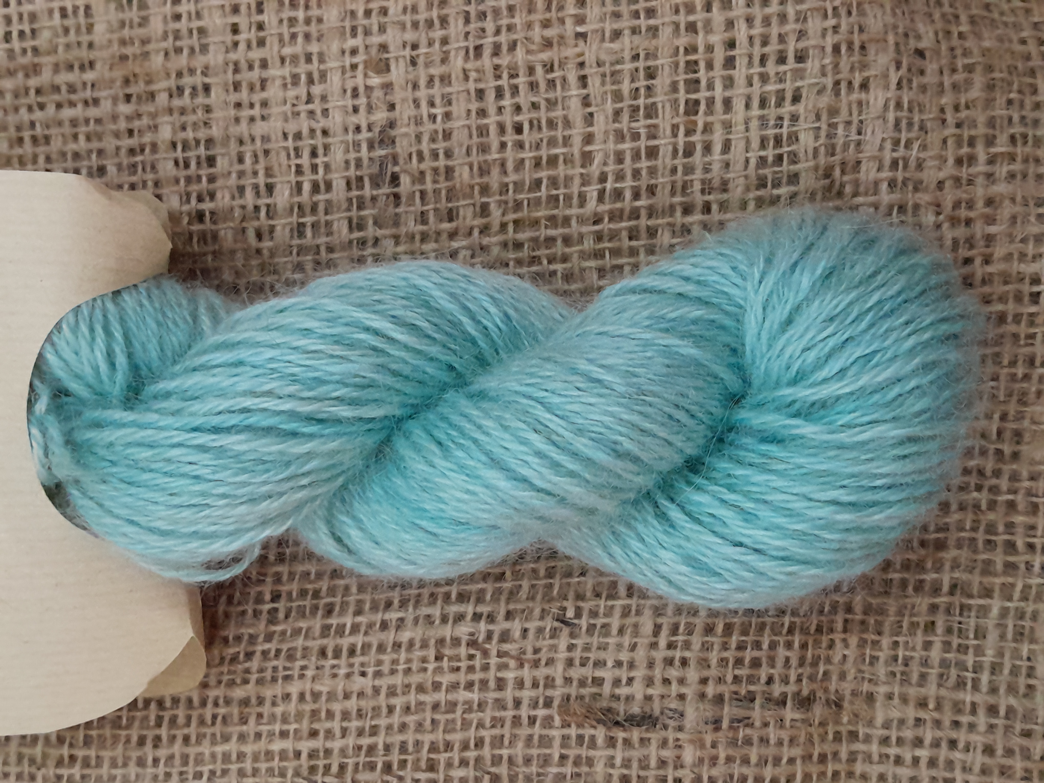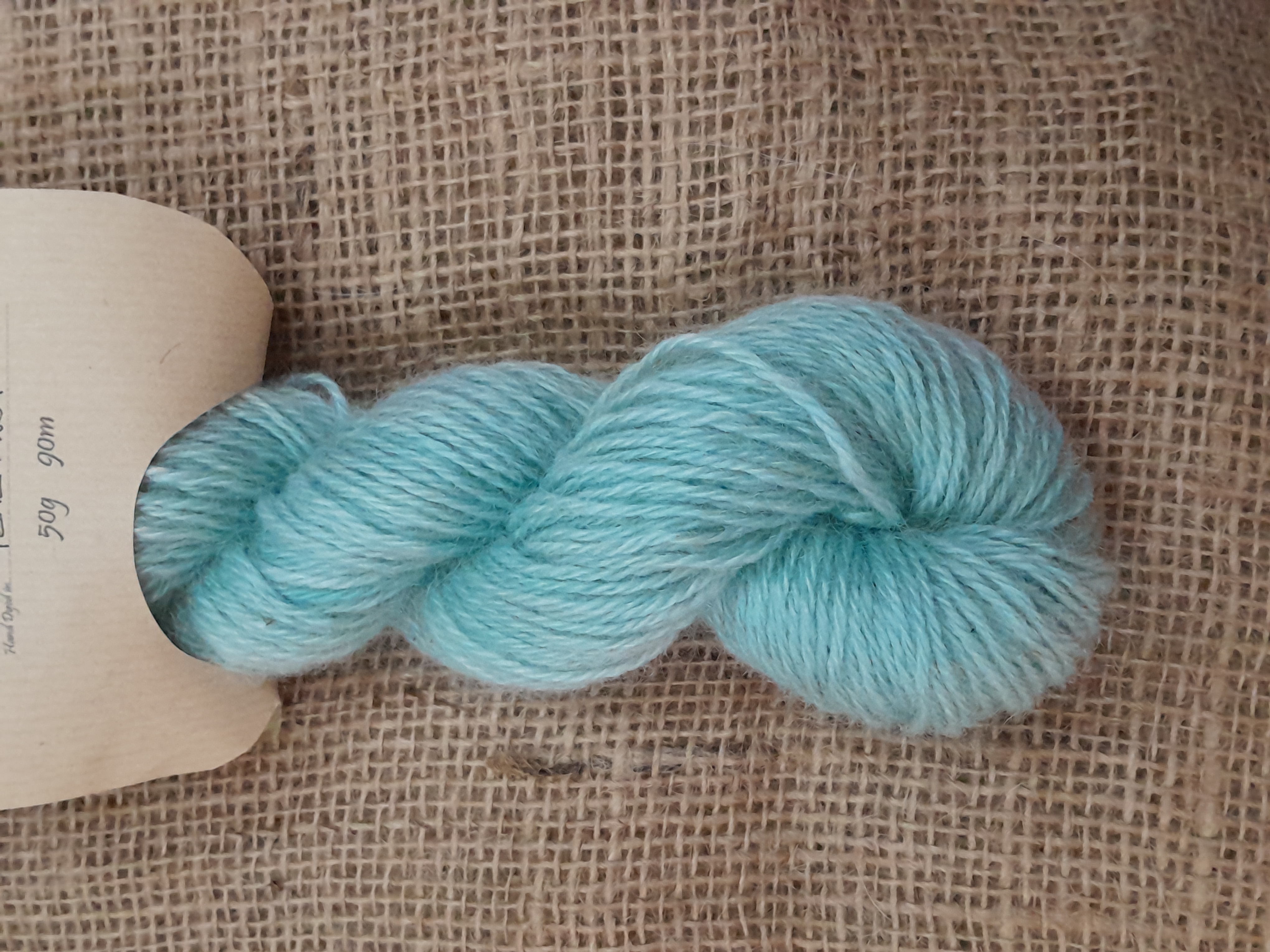 Professionally spun by the Natural Fibre Company in Launceston, Cornwall, this mohair yarn is spun as a light aran weight yarn, and each hank is 50g , with a length of 90m.