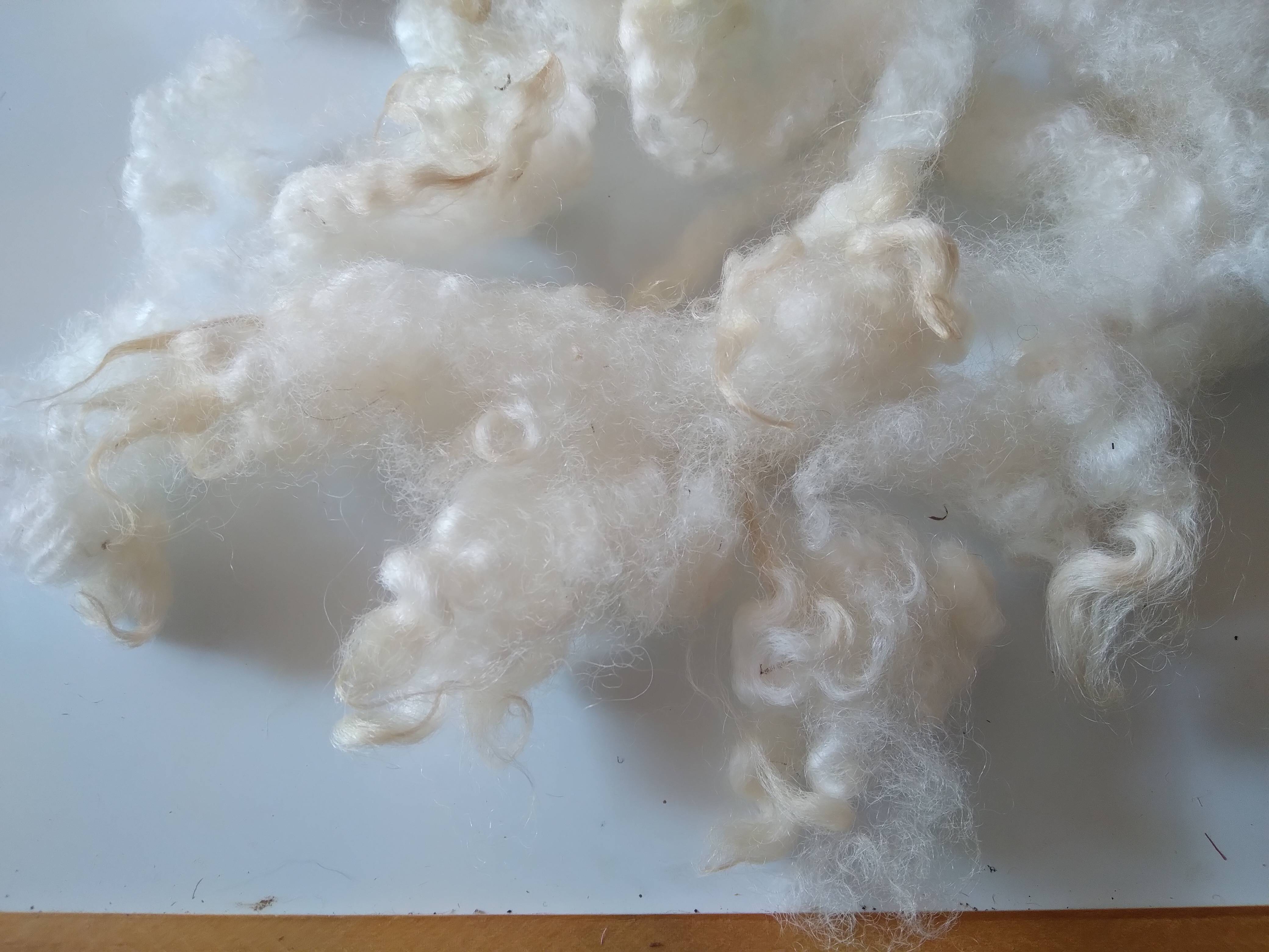 100% hand processed perendale lamb undyed locks and loose fibre.