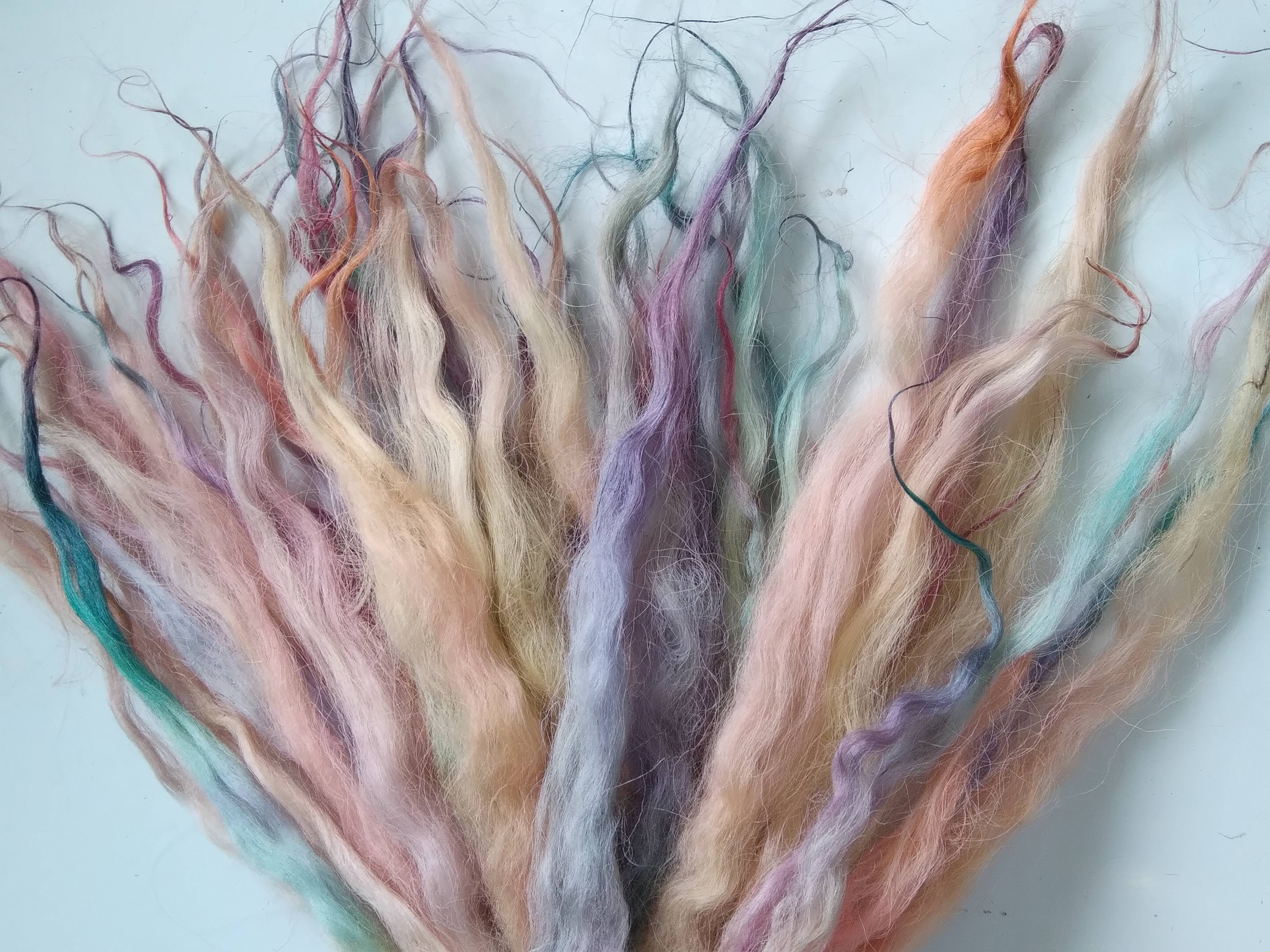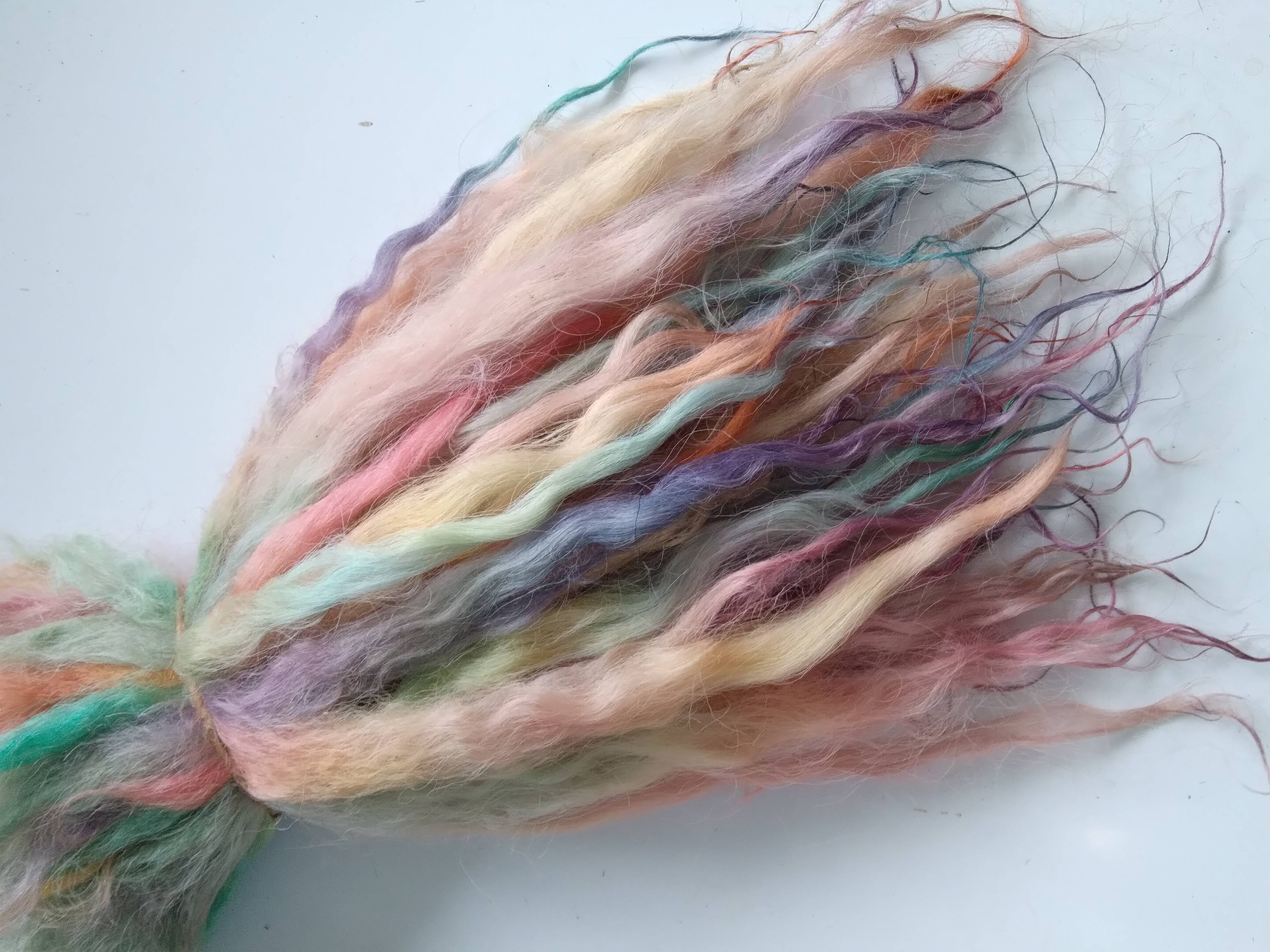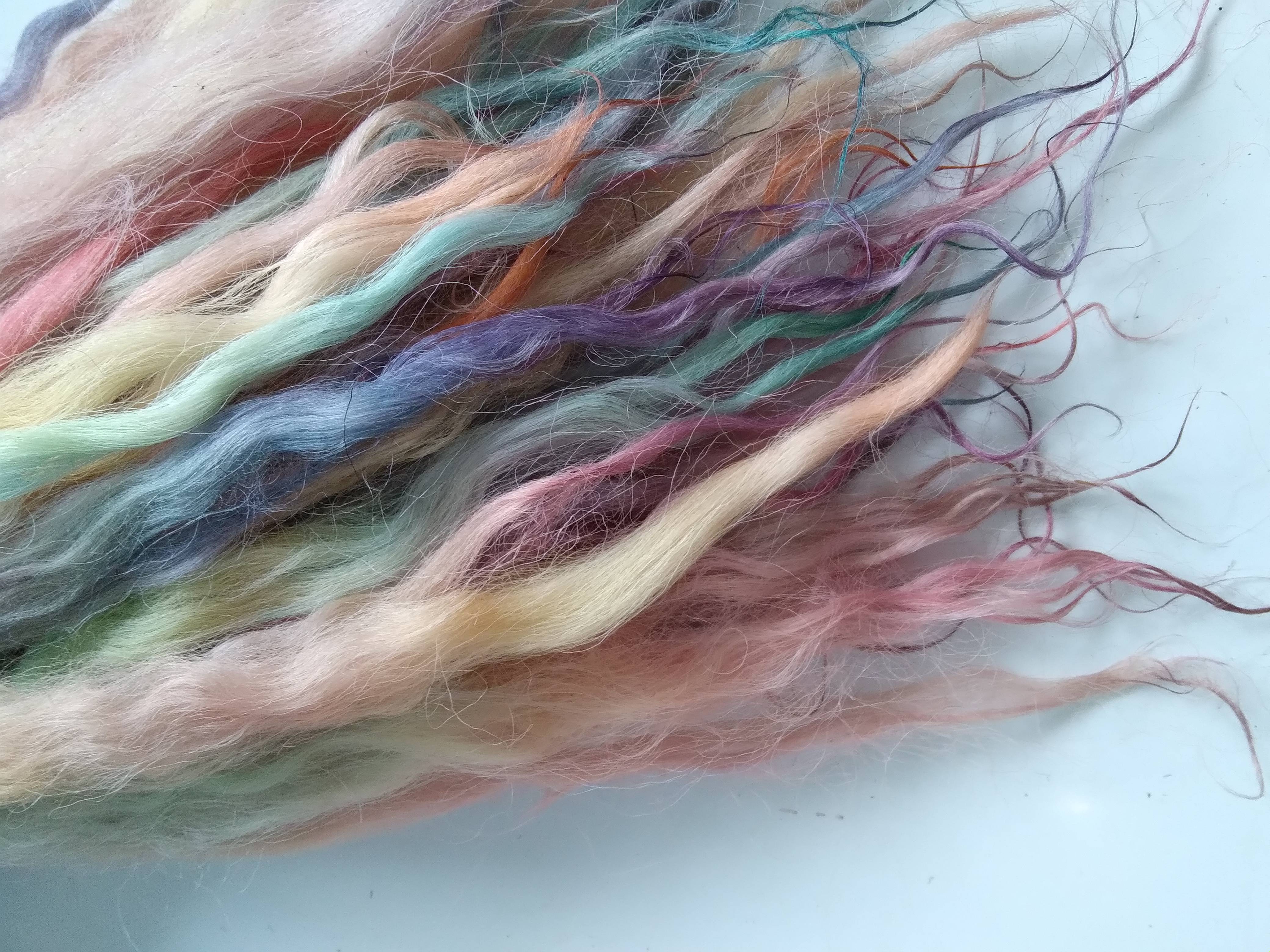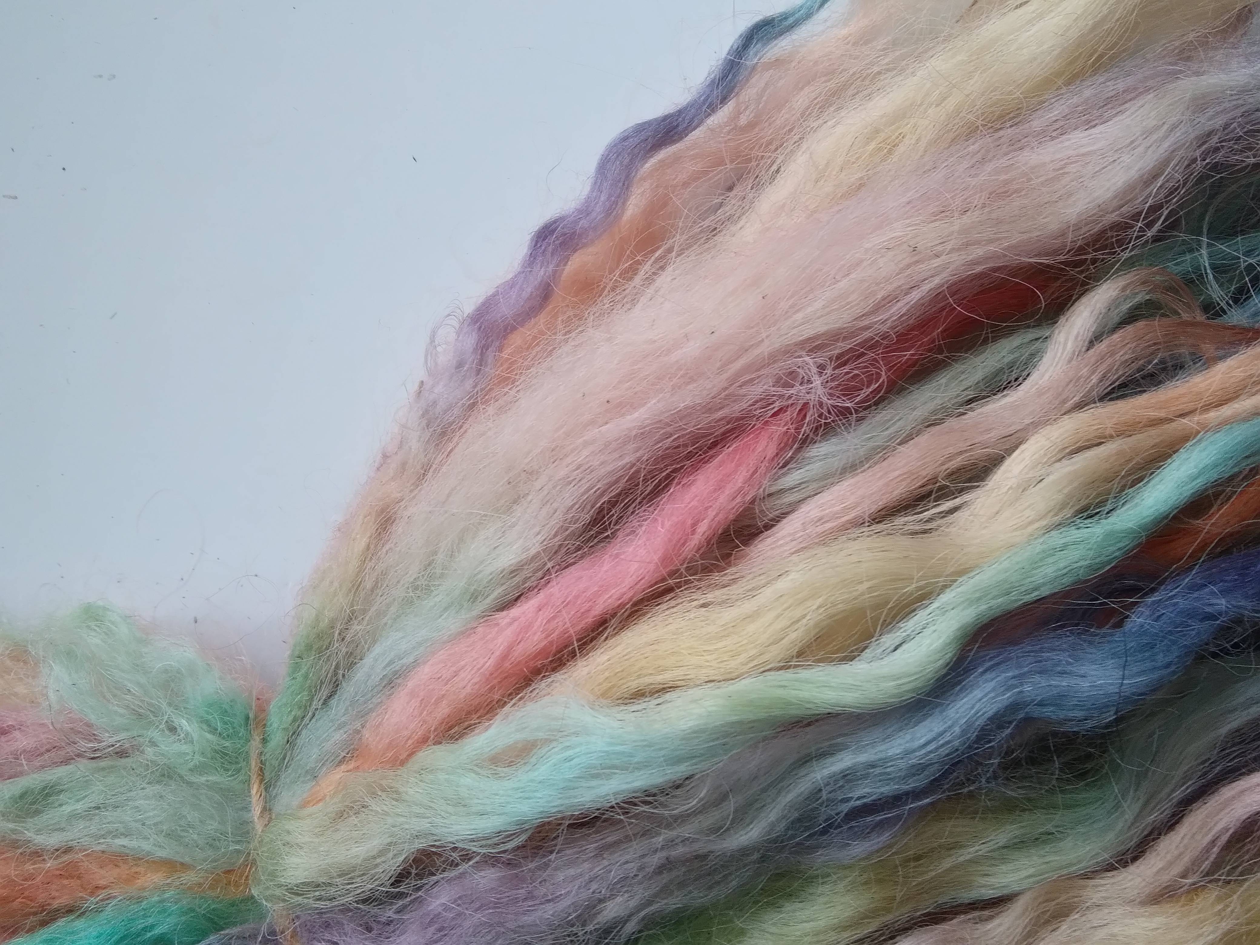 100% hand processed and hand dyed in a mixture of pastel rainbow tones