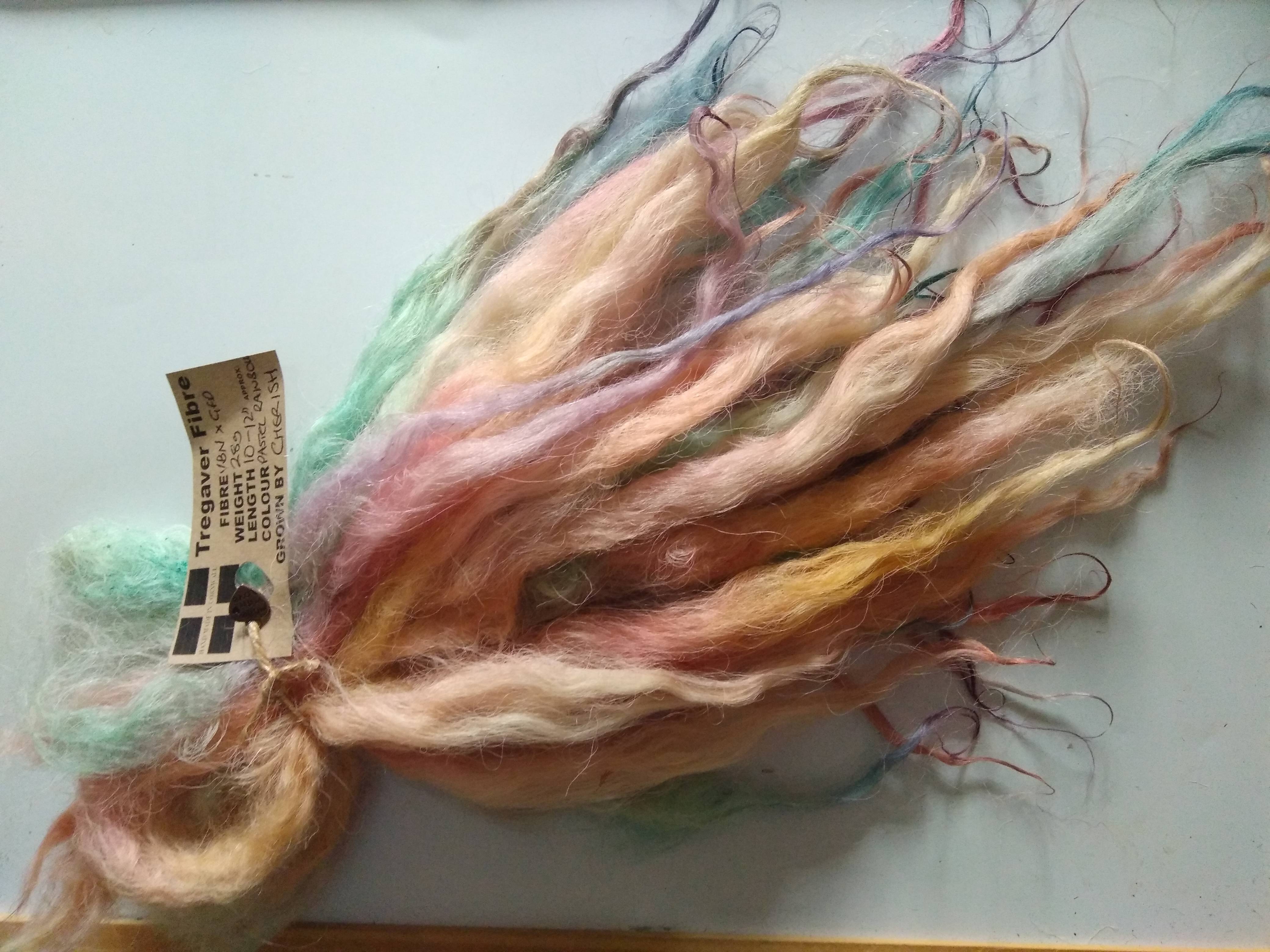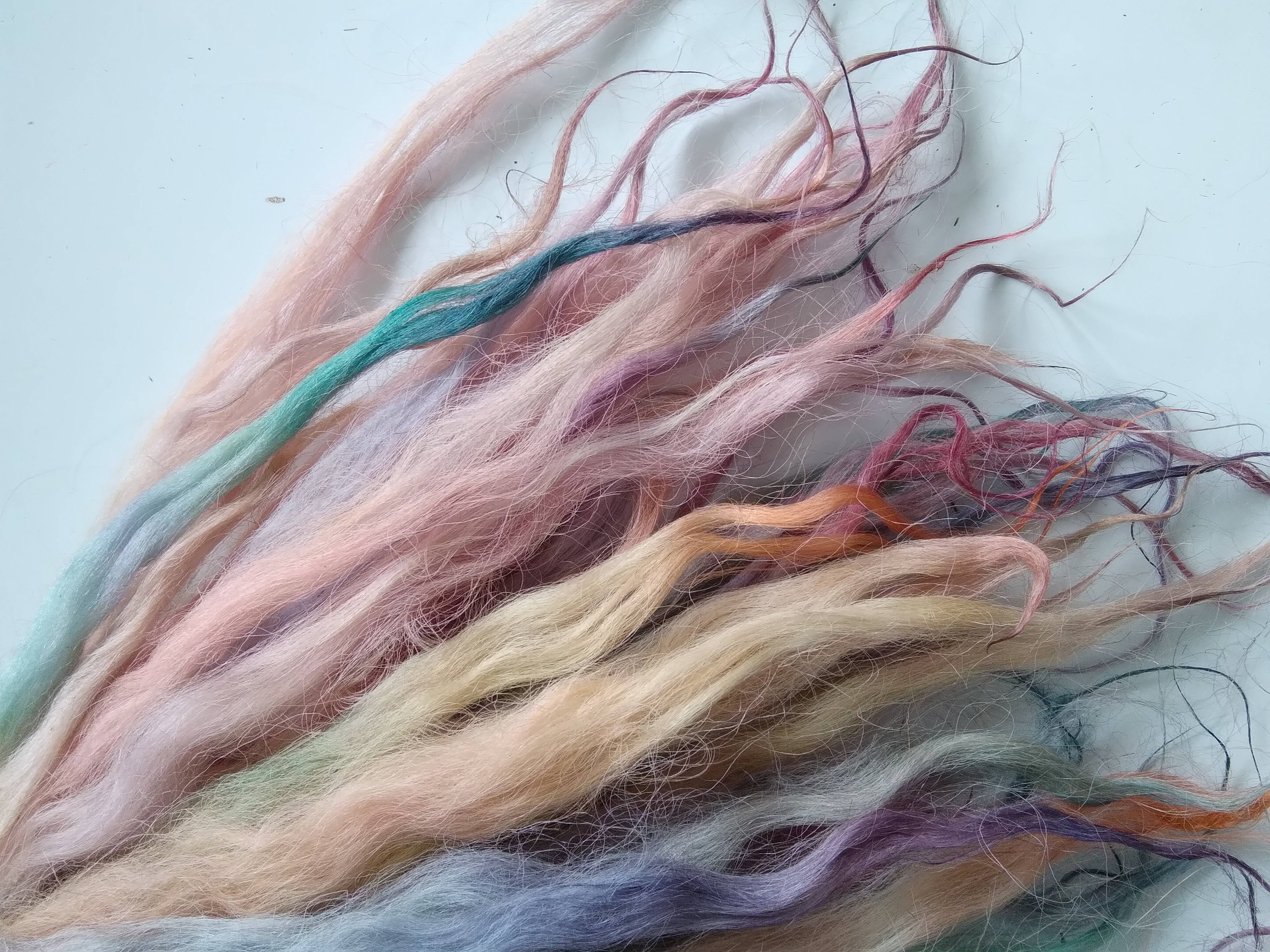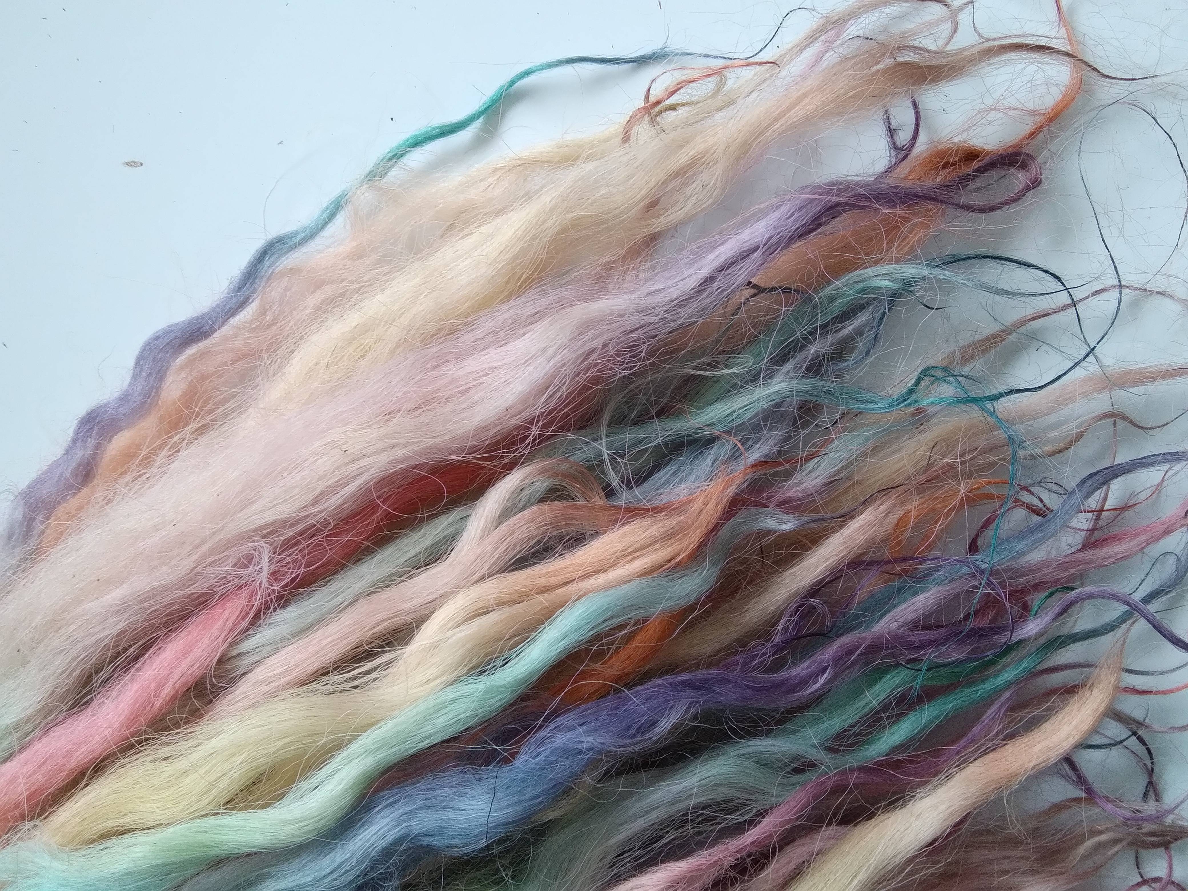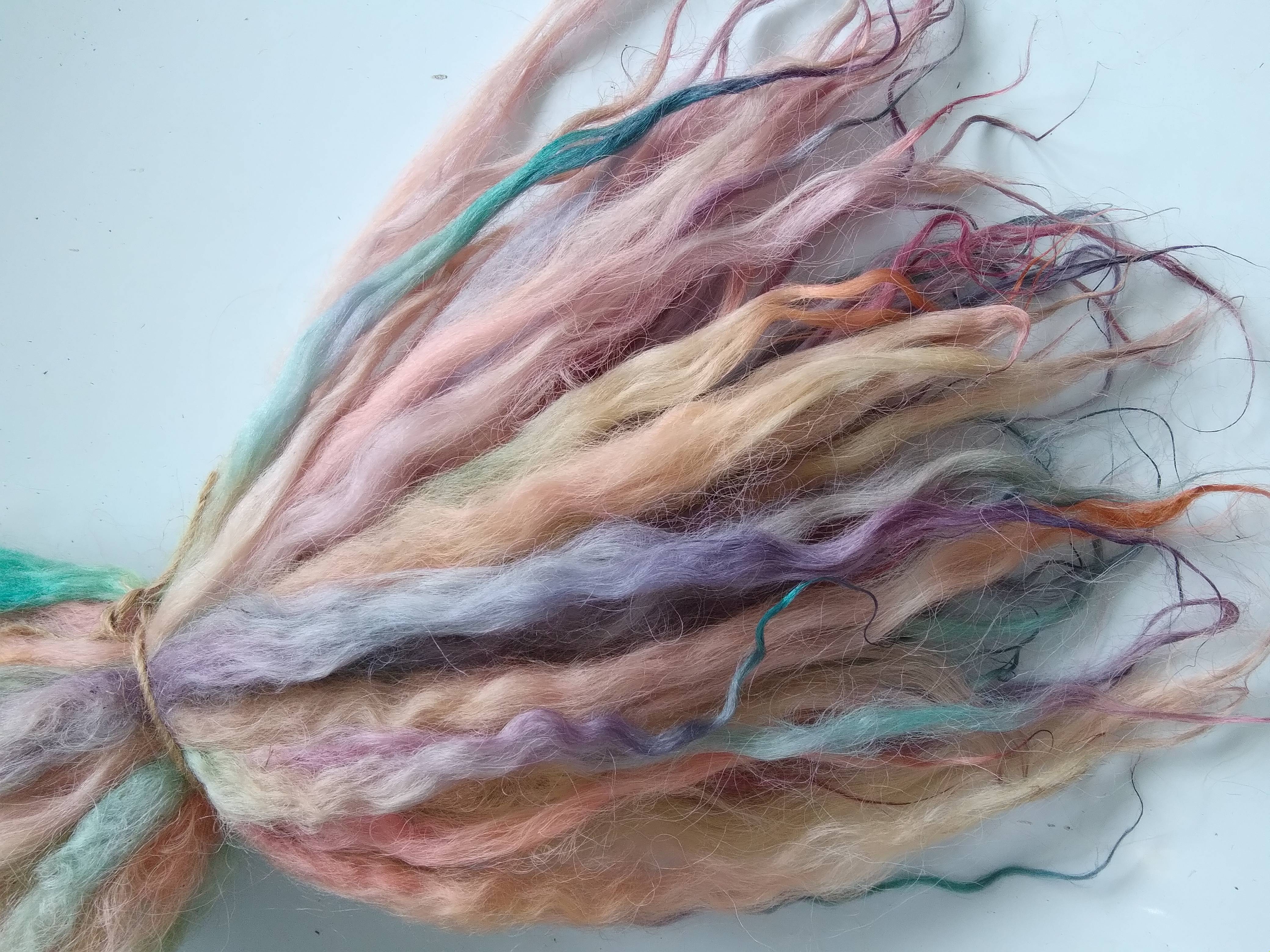100% hand processed and hand dyed in a mixture of pastel rainbow tones