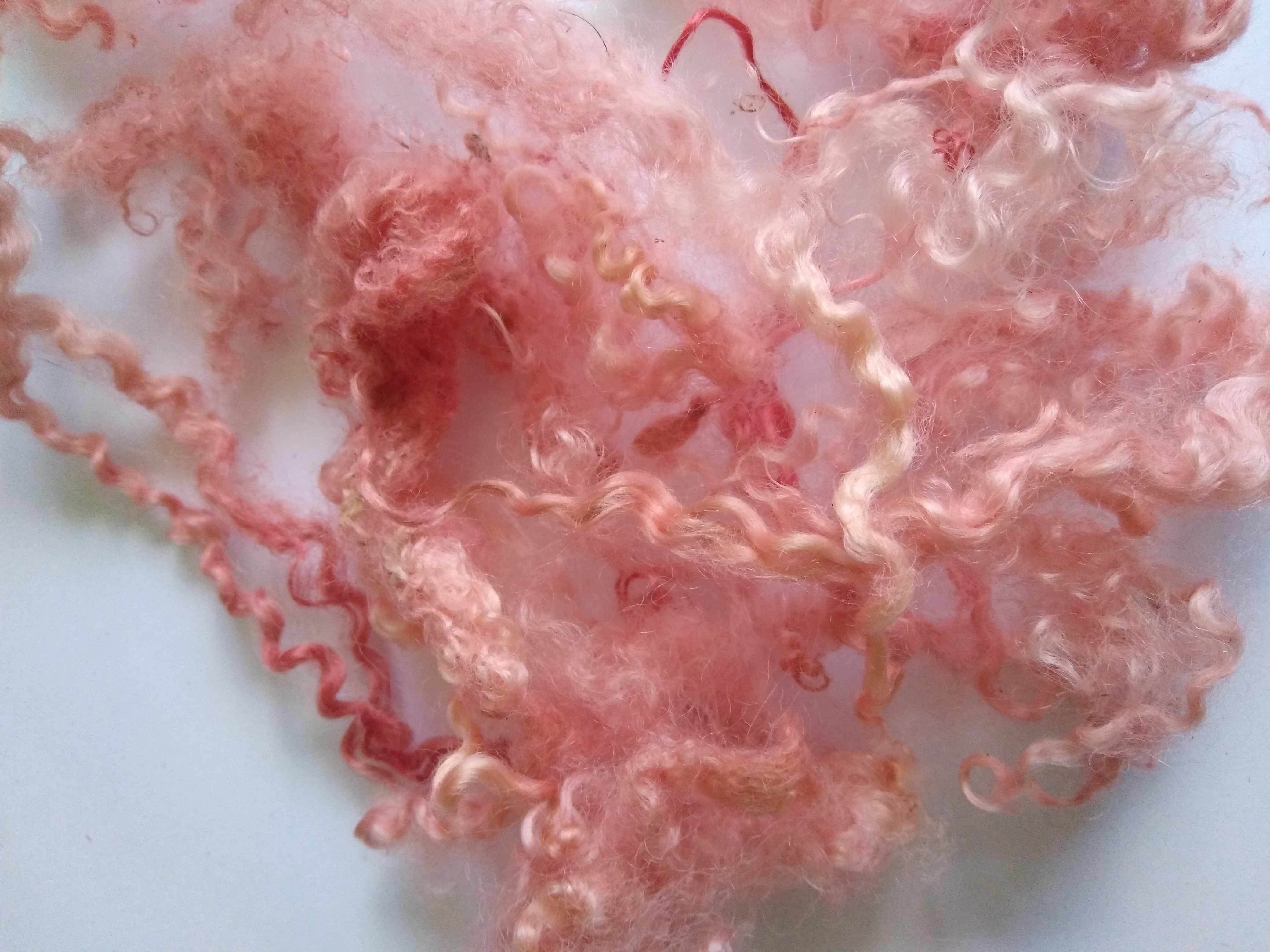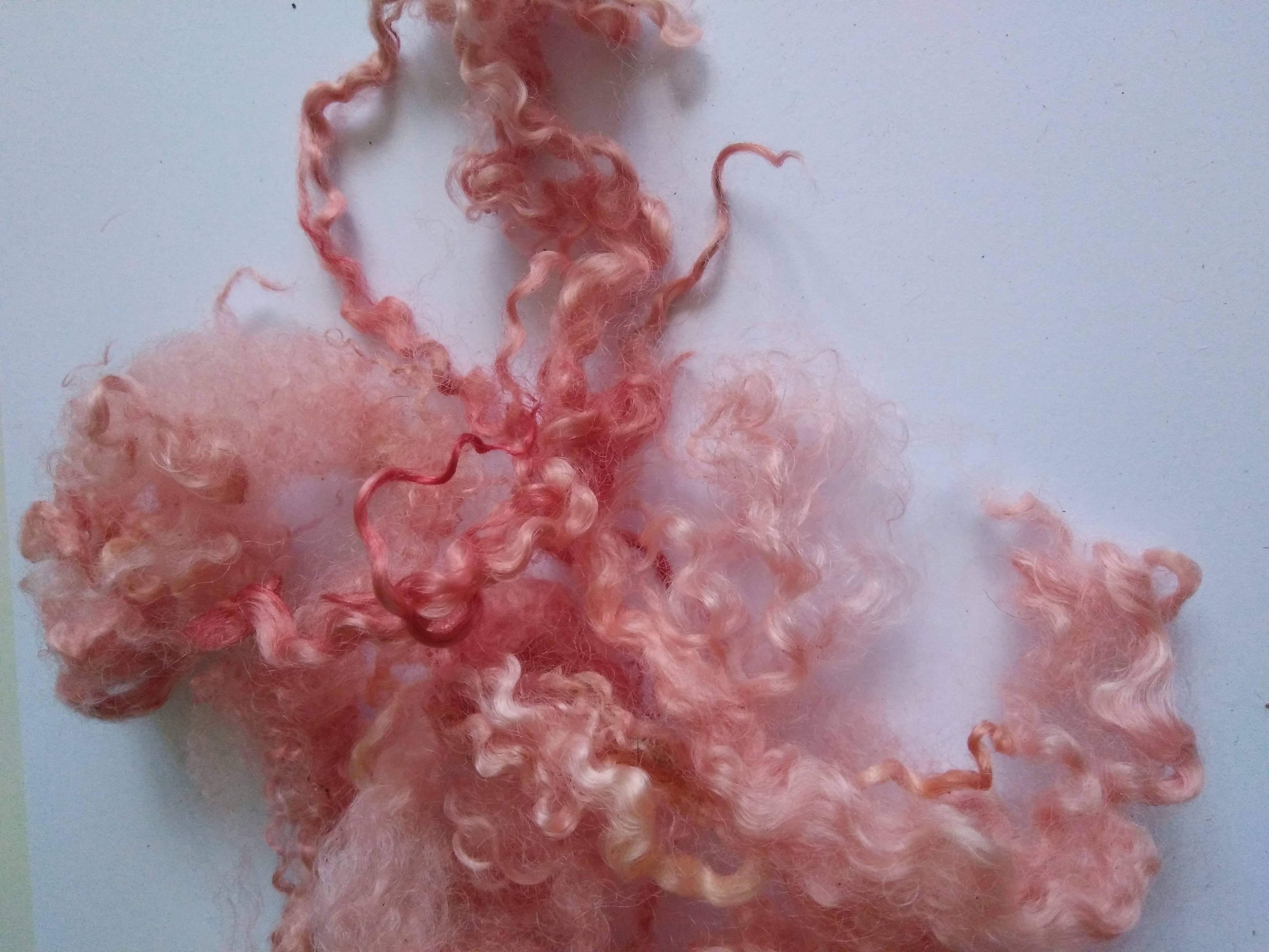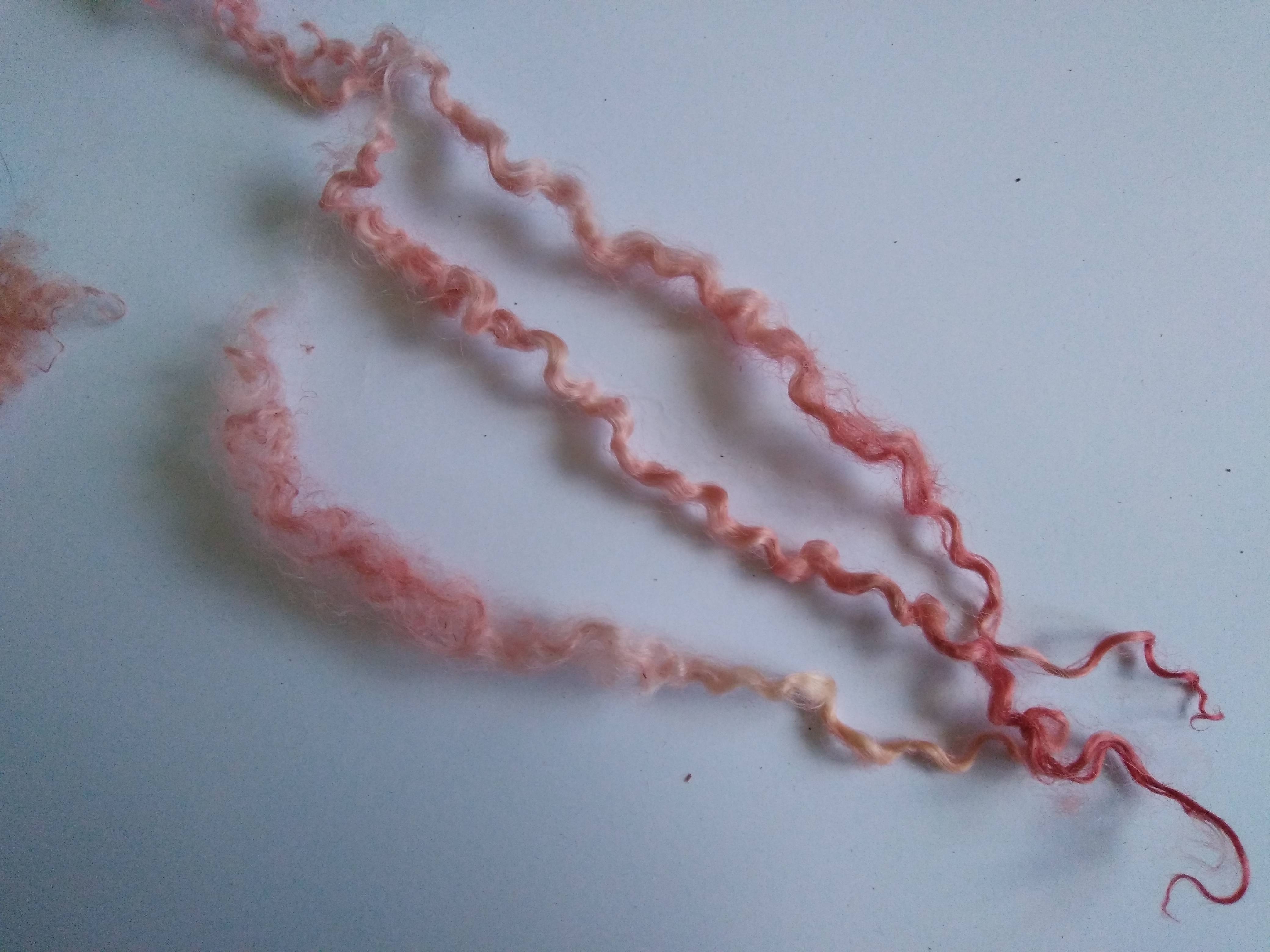 The wool is has been hand dyed in a mixture of pink and golden peach tones