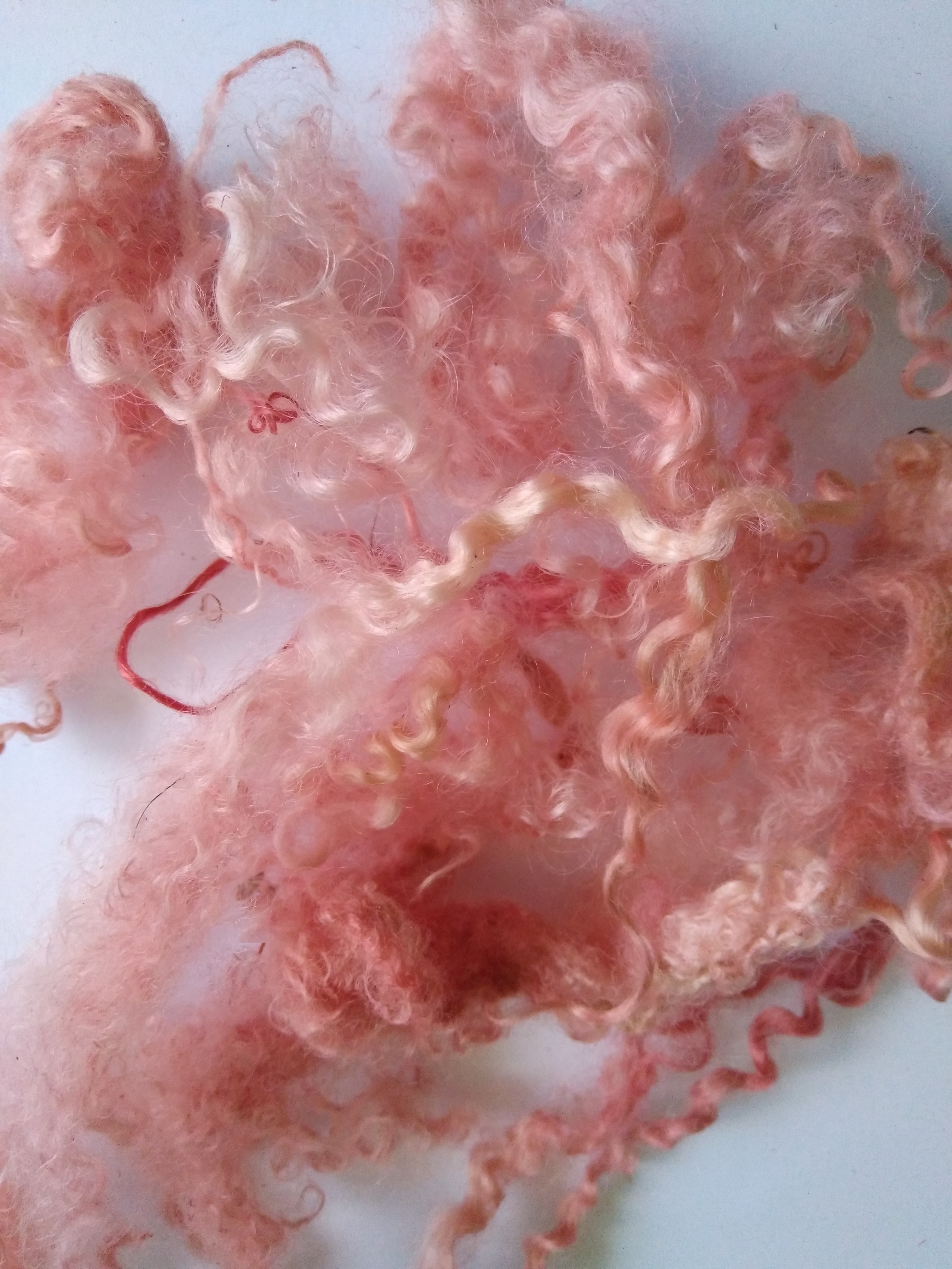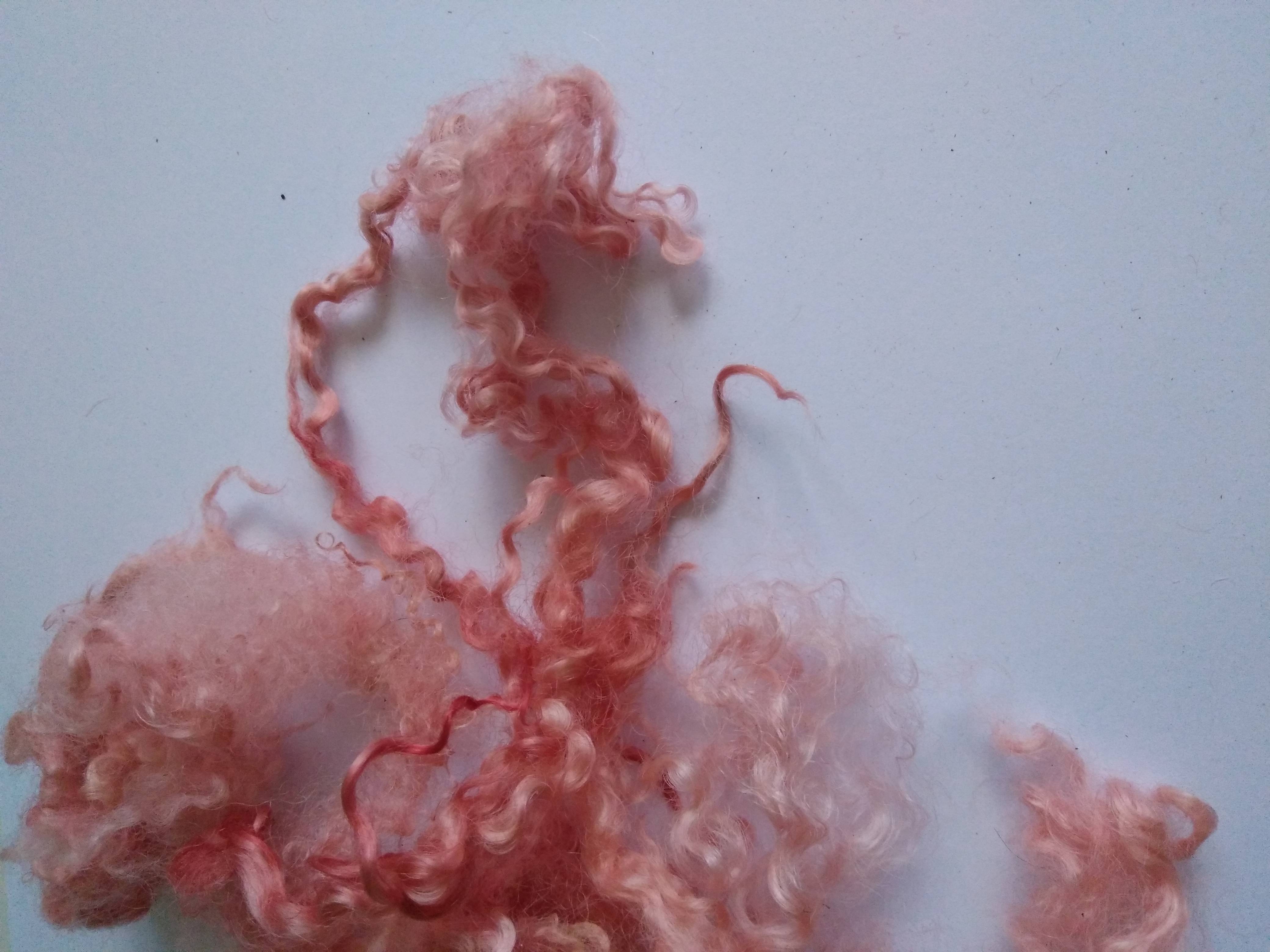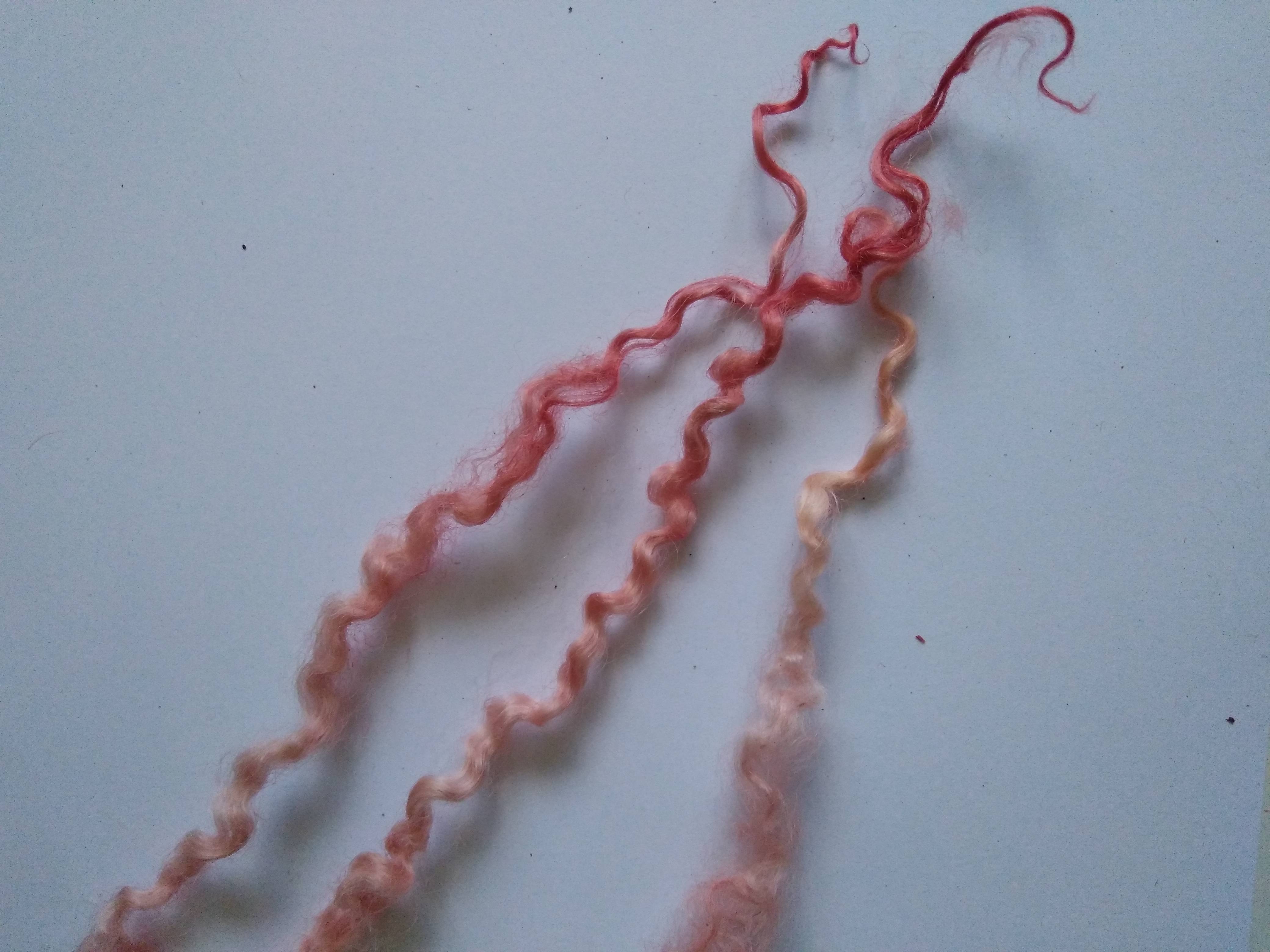 The wool is has been hand dyed in a mixture of pink and golden peach tones
