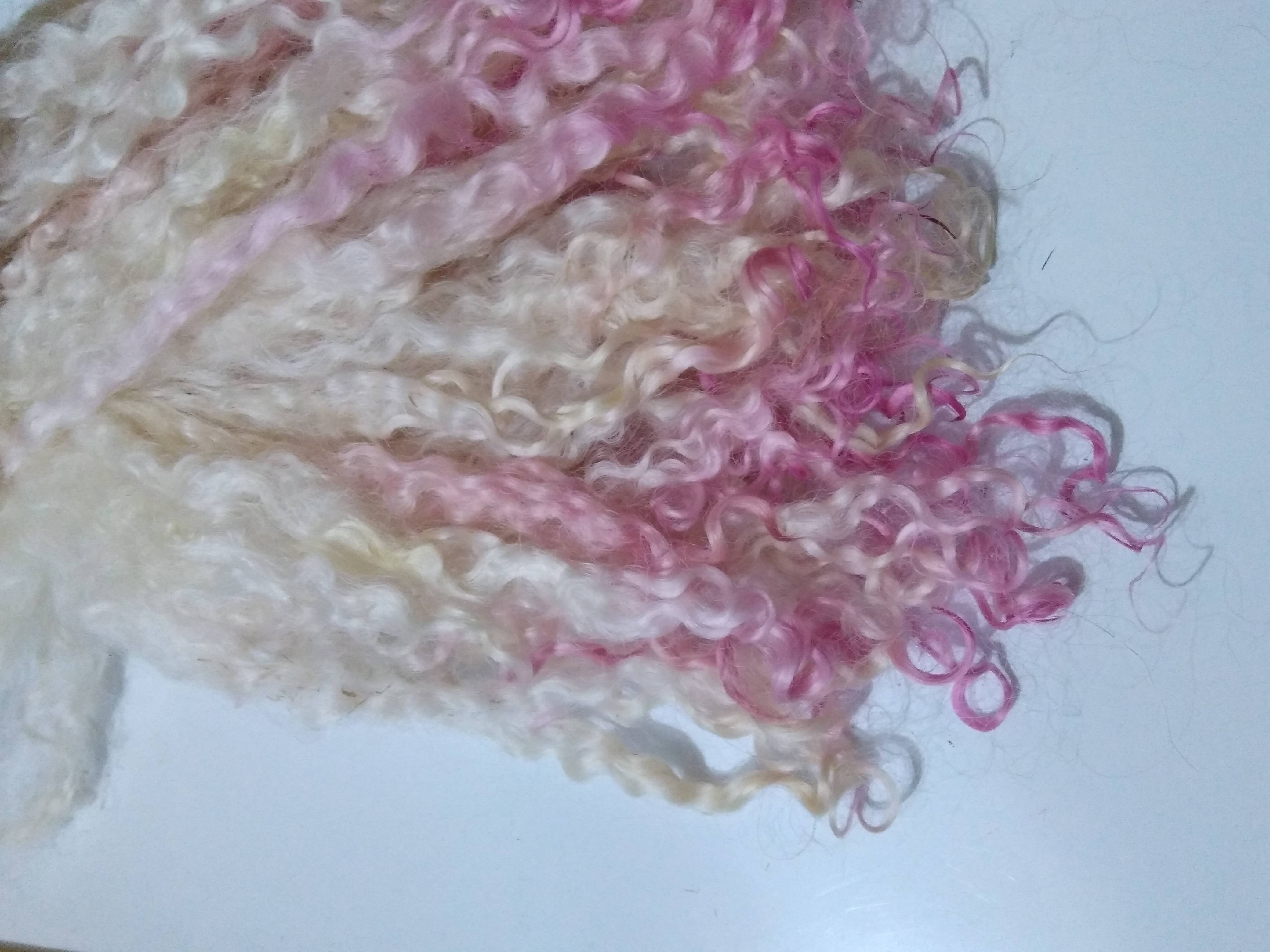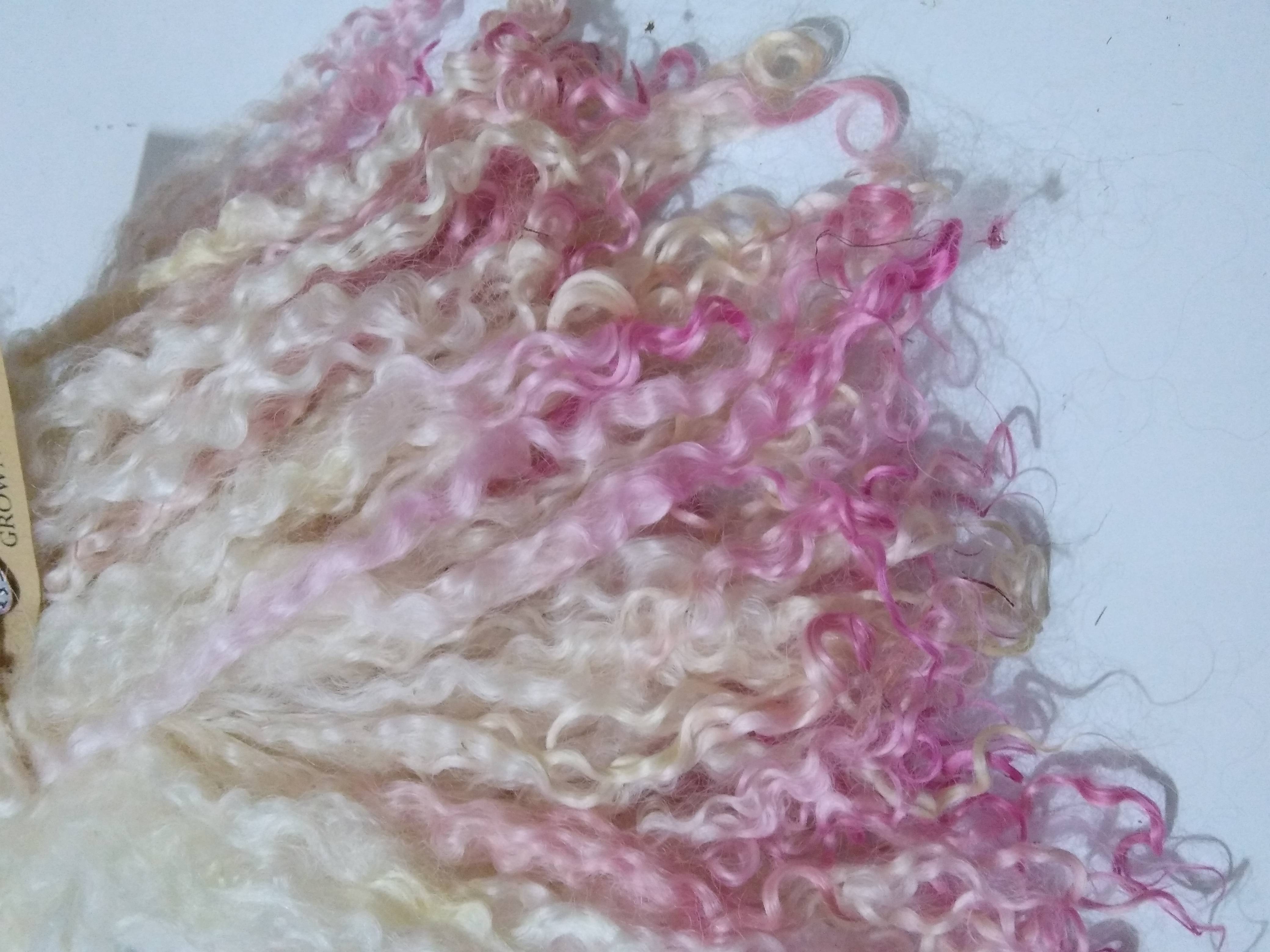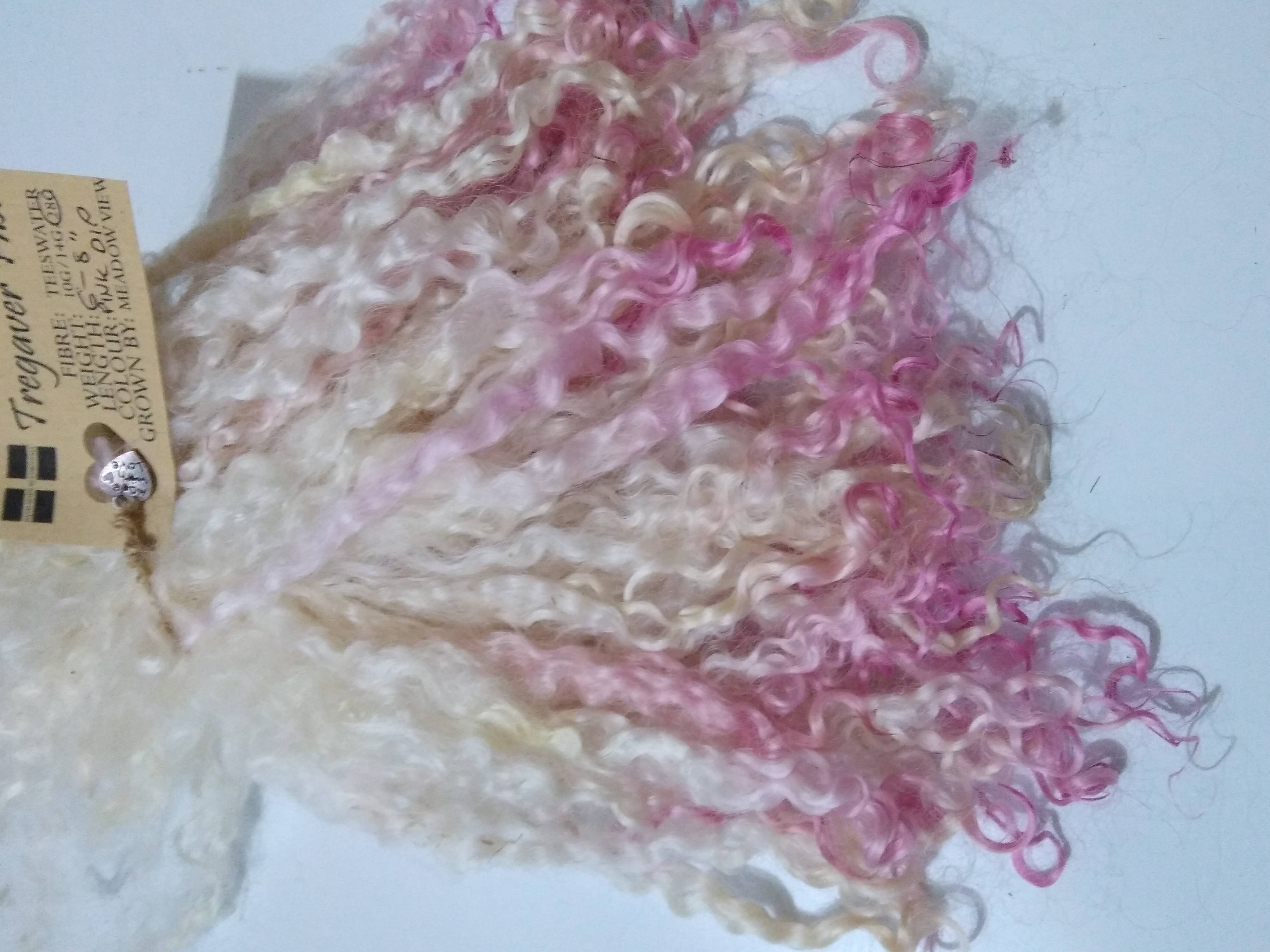 Pink dip Teeswater wool locks, 28g 14g 7g