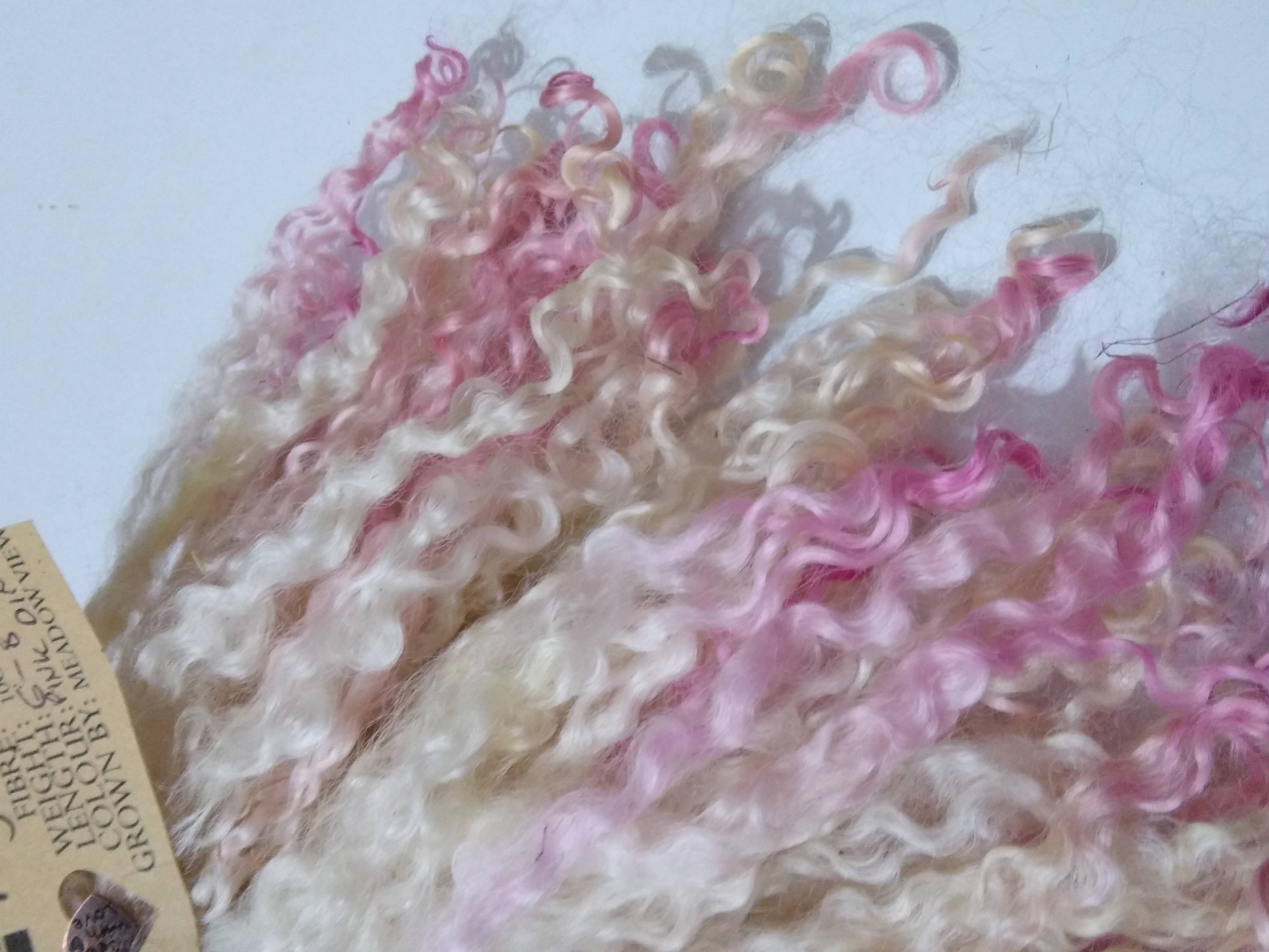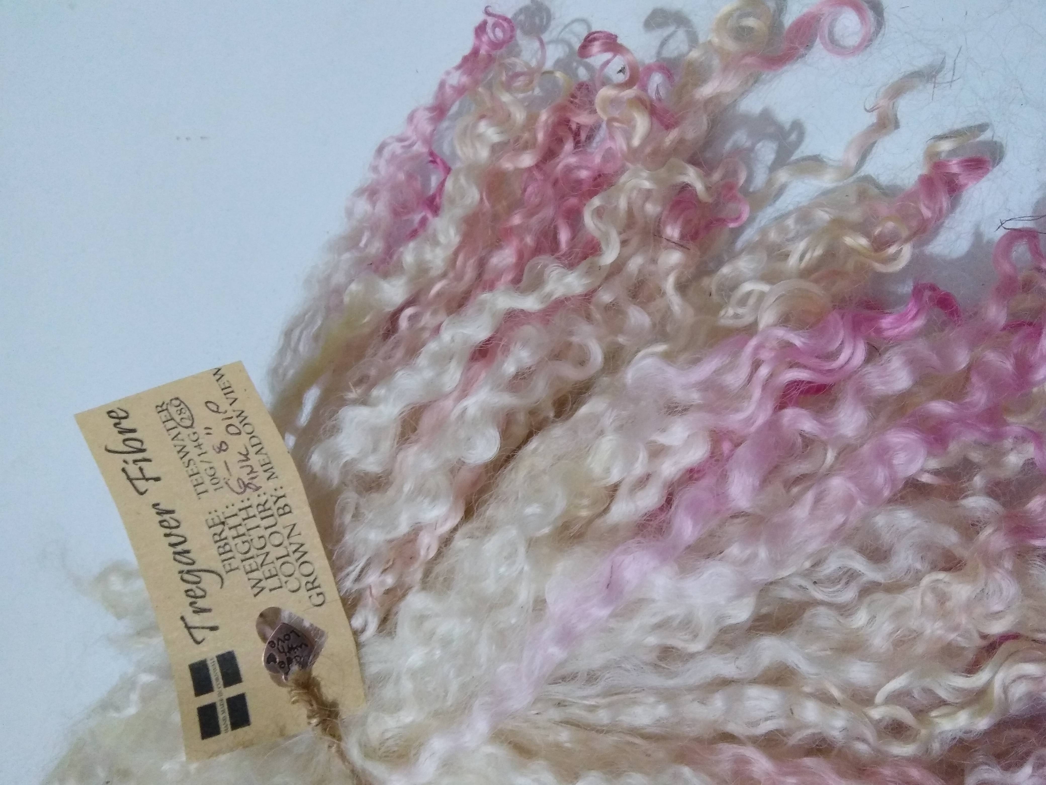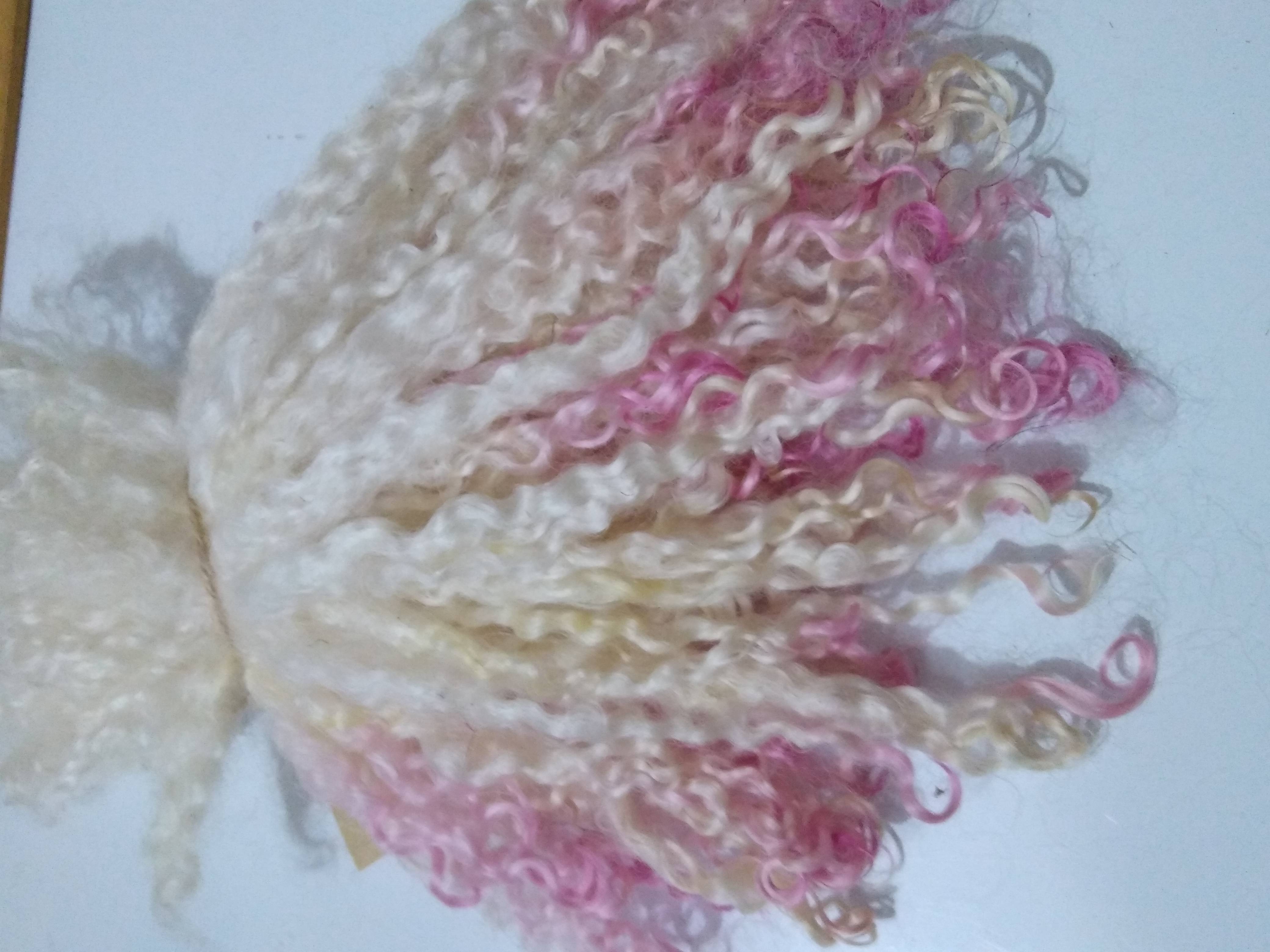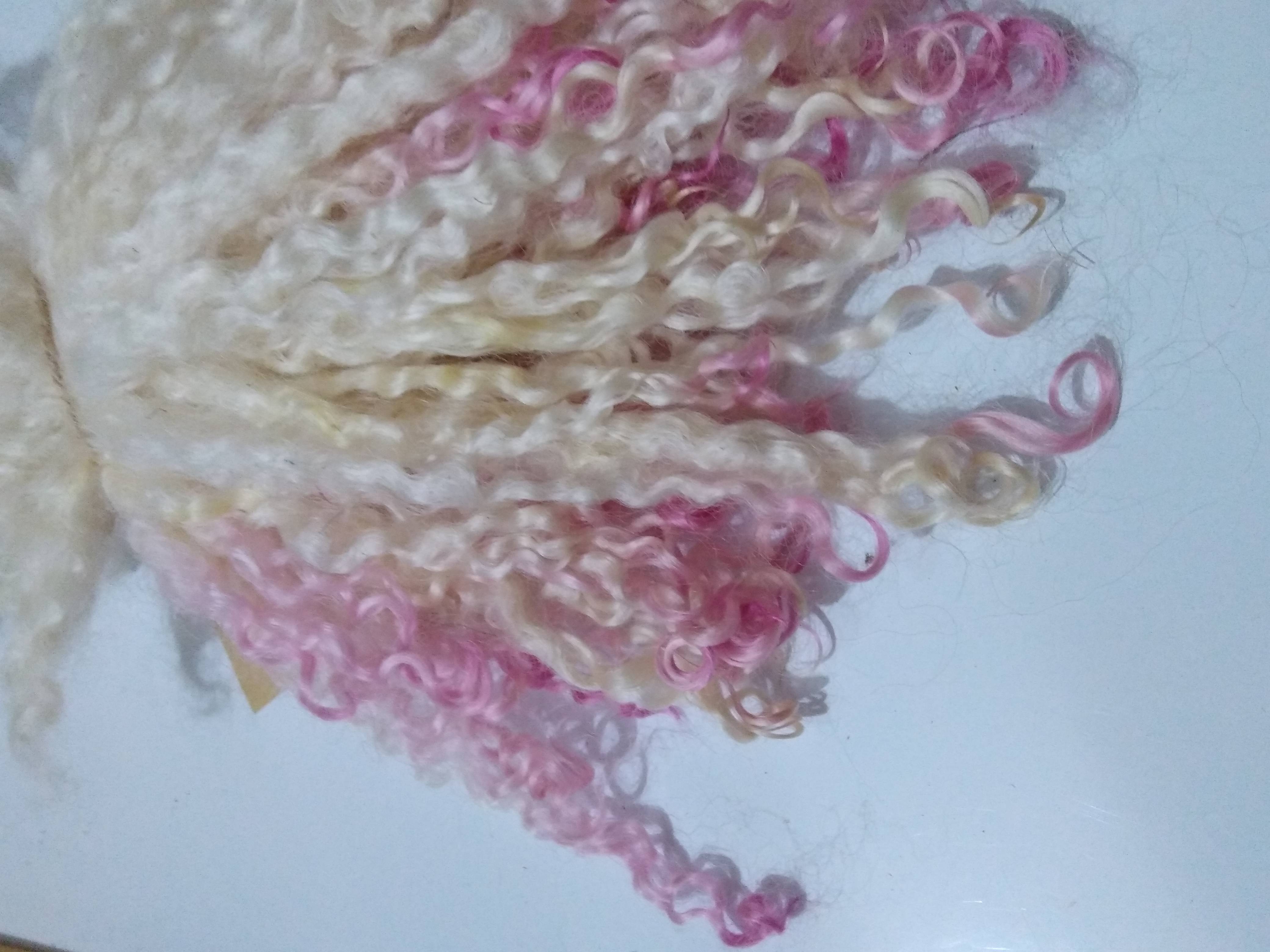 Pink dip Teeswater wool locks, 28g 14g 7g