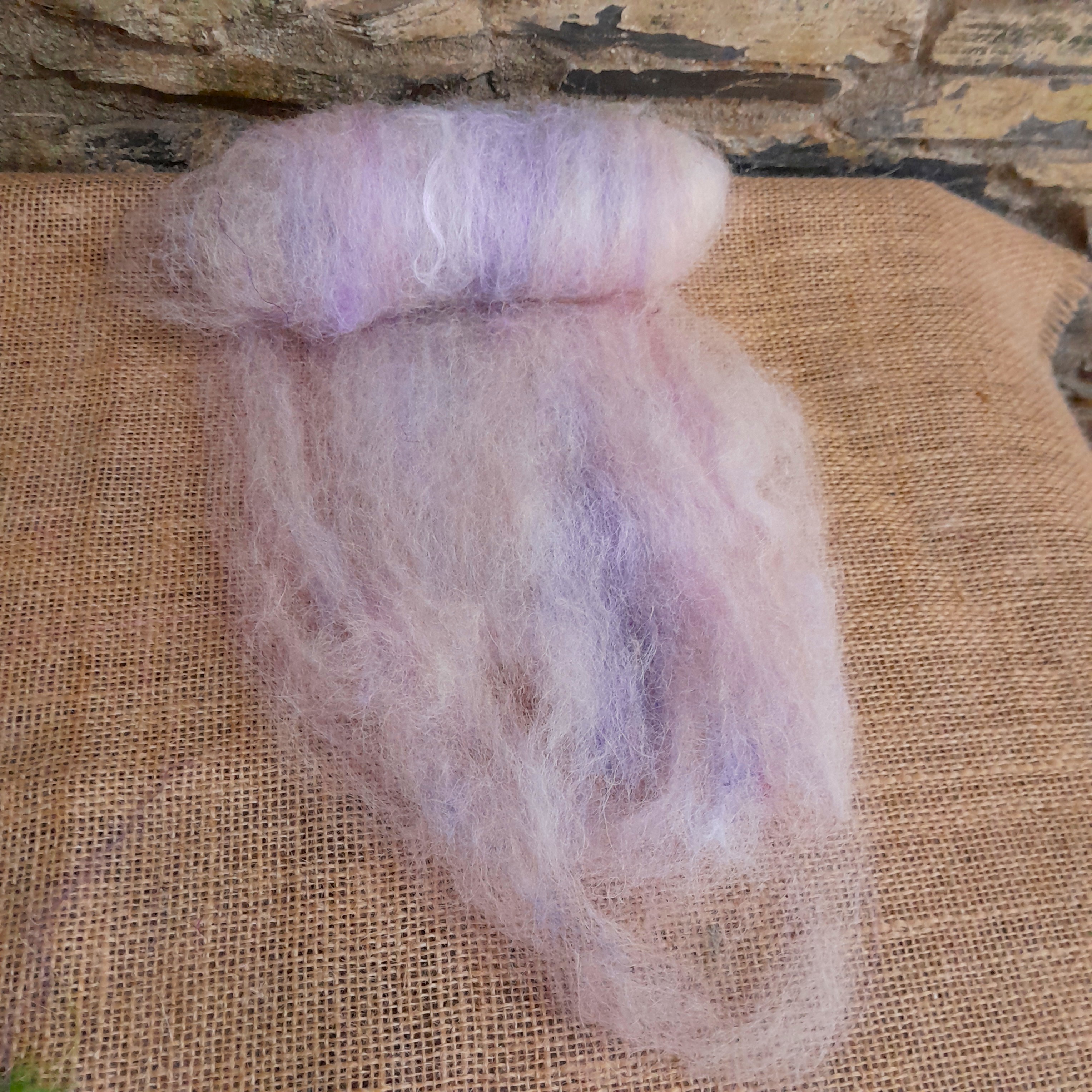 Our carded art batts have been handmade on our drum carder. They are made from our own various types of hand dyed wools and fibres. These have all been lightly carded so there are still some natural textures that can be found in the batt - for instance, you'll notice a few curly teeswater locks in the batts, some blue faced leicester tiny curls, and some valais waves - our batts have been created to have a mix of breeds of wool sheep in, to allow for ease of felting, and some also contain some mohair and alpaca, for a touch of luxury!