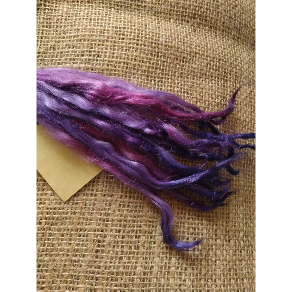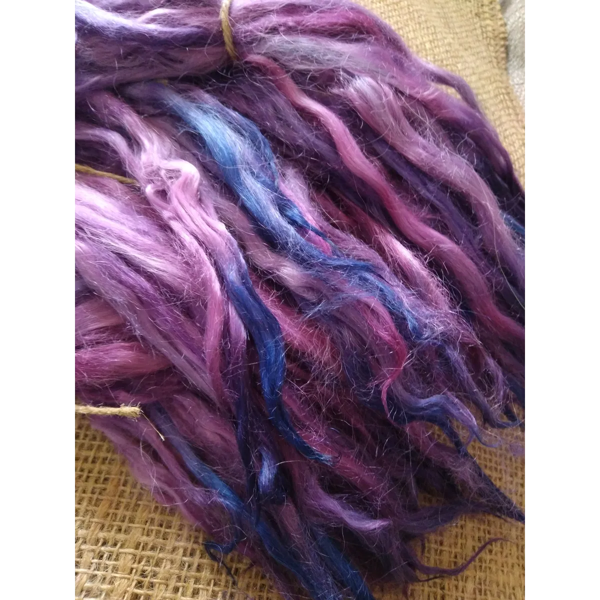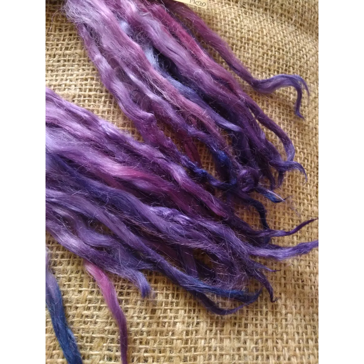 These are hand dyed in a fairy mx theme of purple and blue with some pink aspects The nature of this fibre means there may be a small amount of VM, and due to the wet winter we had, there may be some remaining dirt, and may be fragile in places, but they have been very well washed.