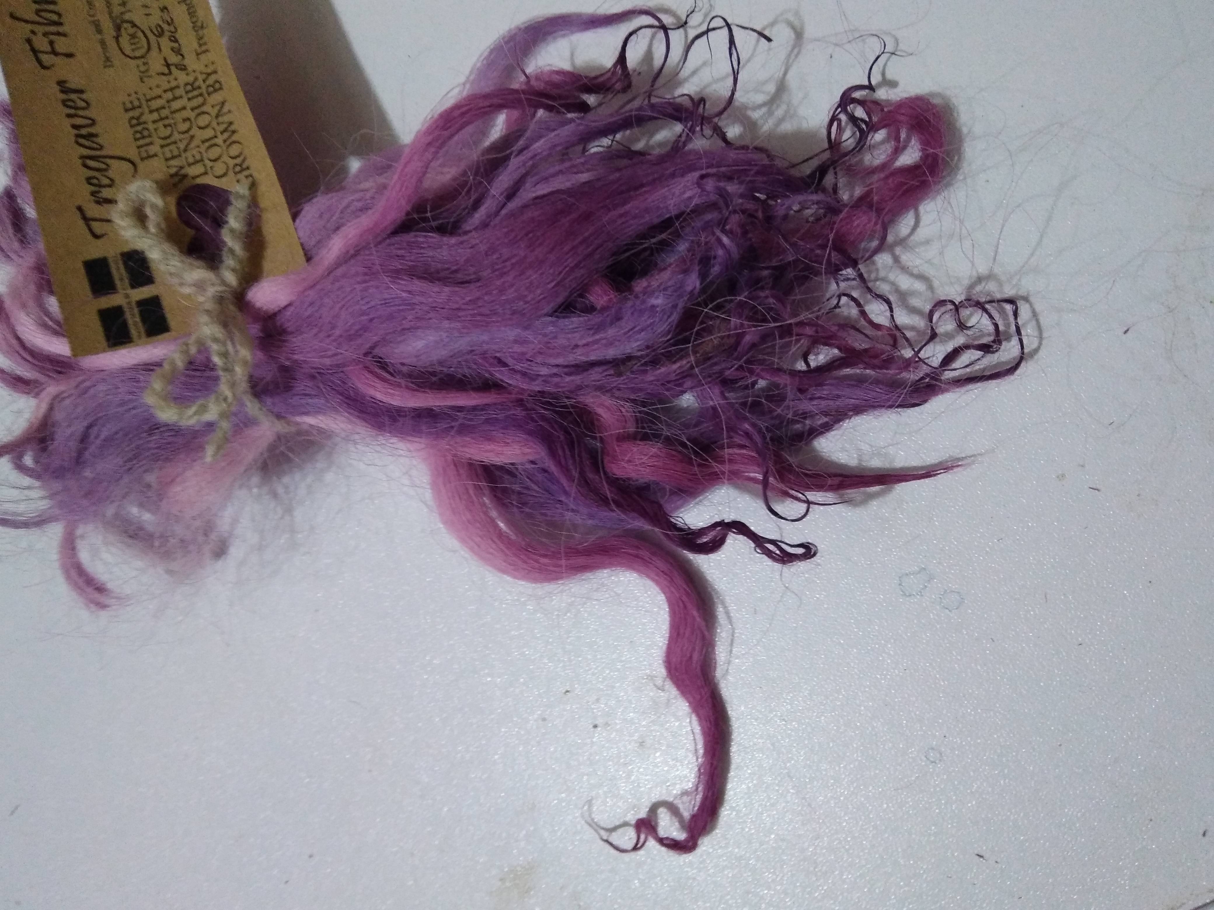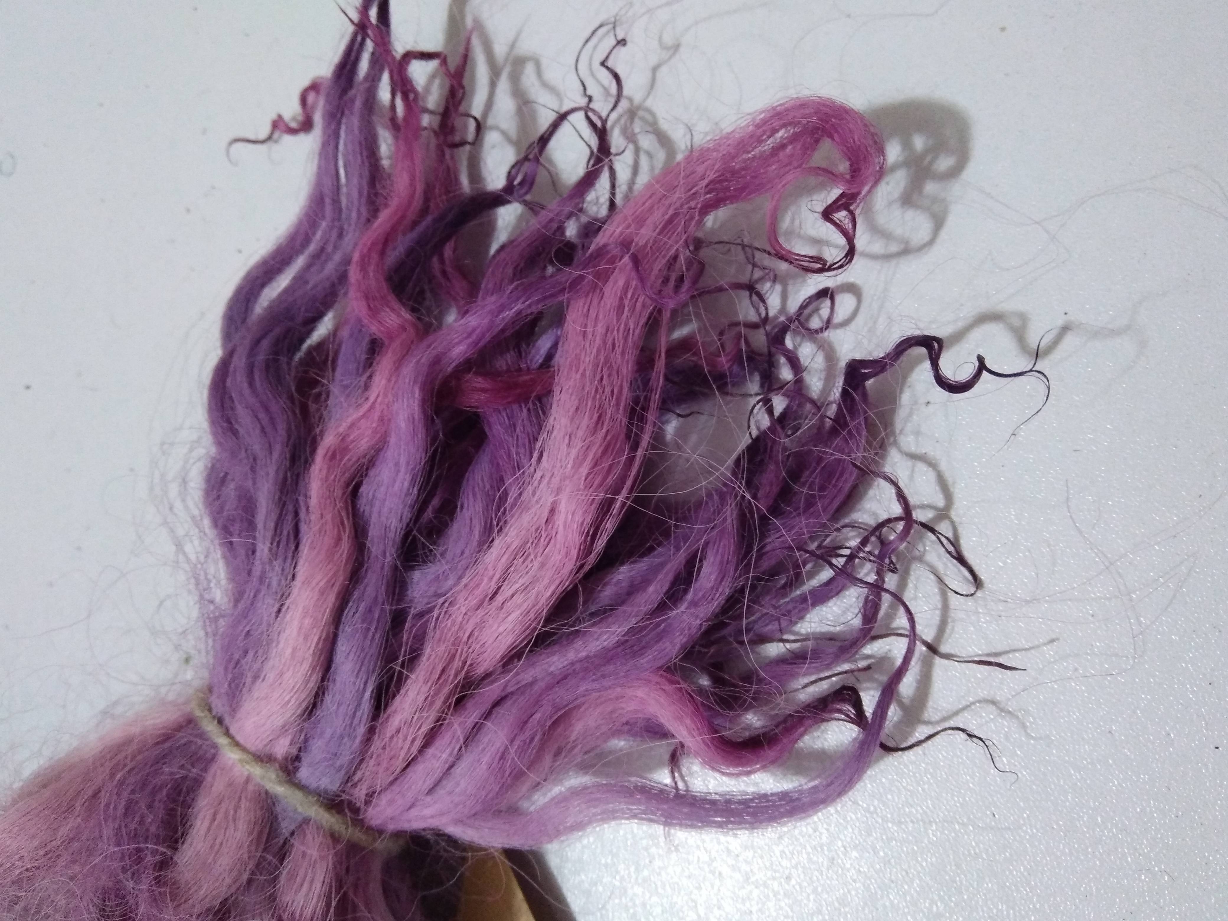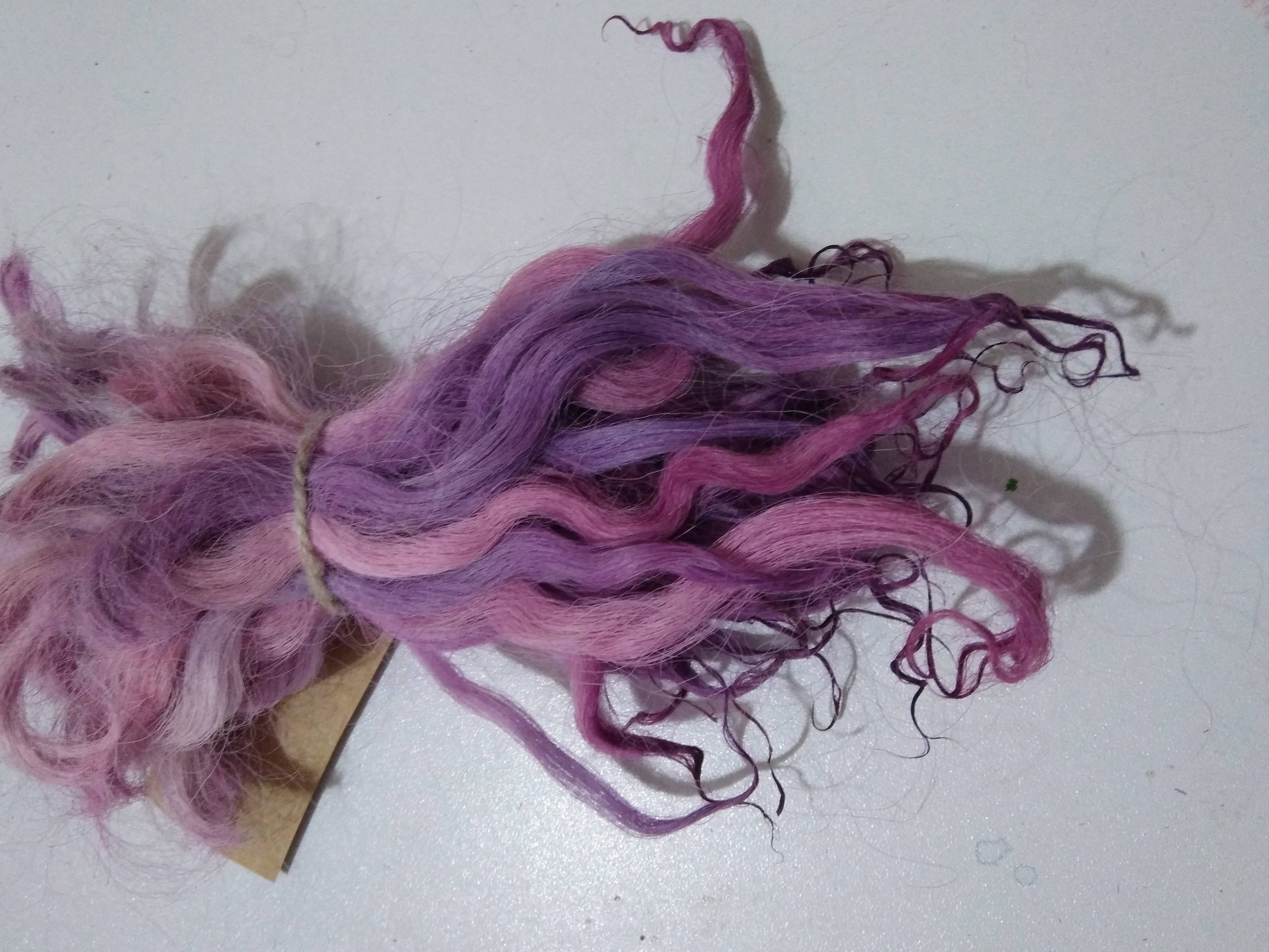 These have been 100% hand processed (very well washed by hand multiple times) and are hand dyed in a mixture purples and pinks
