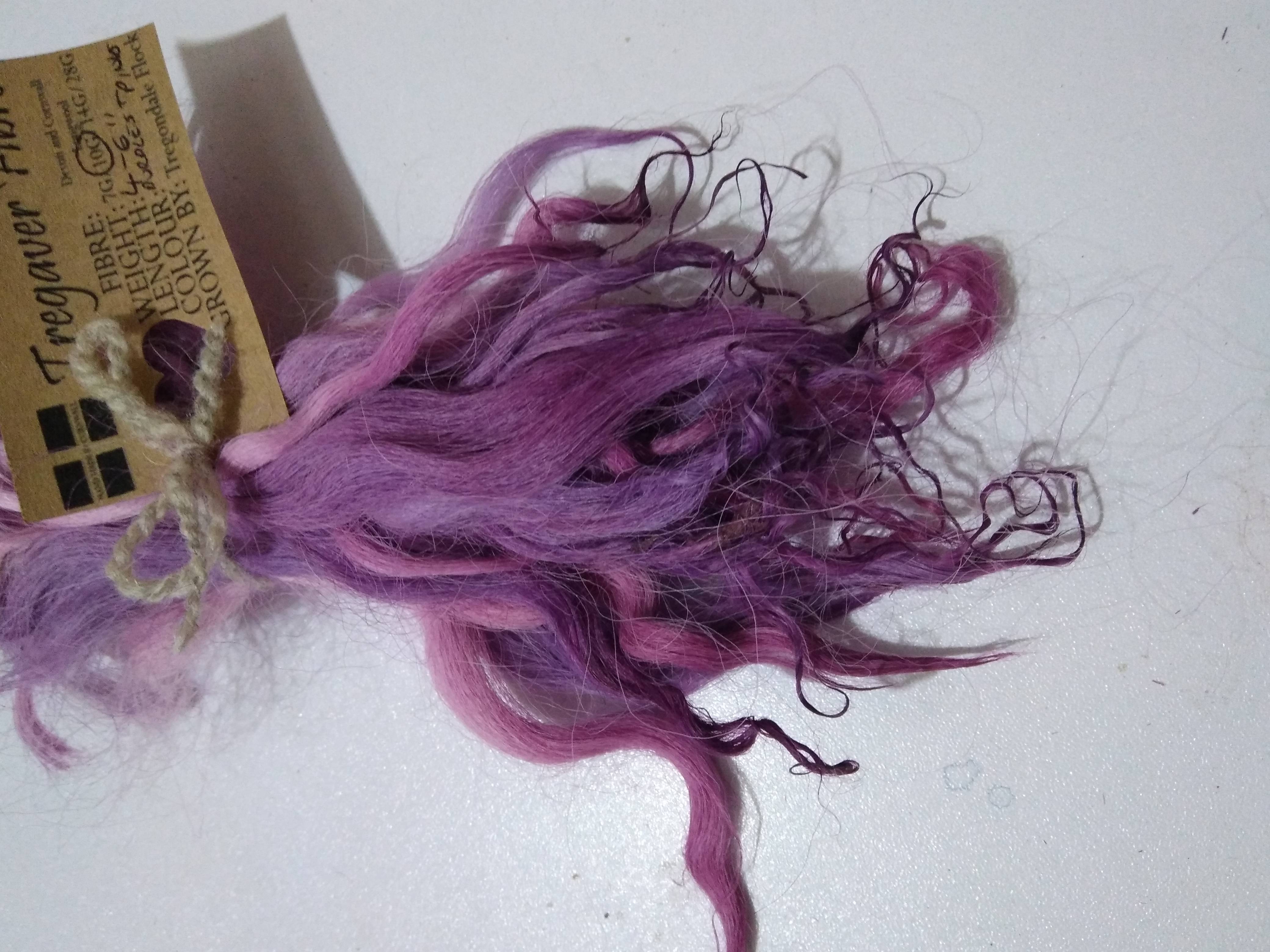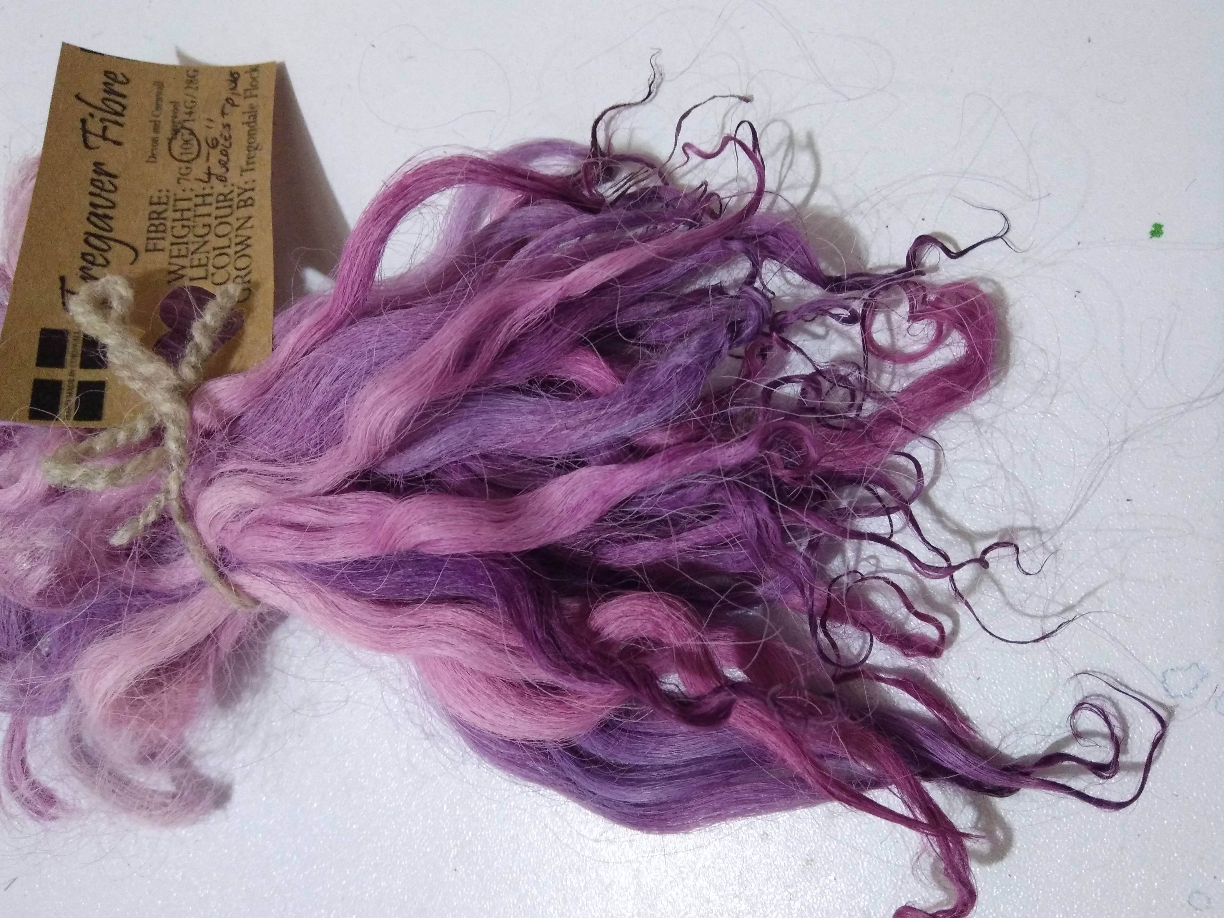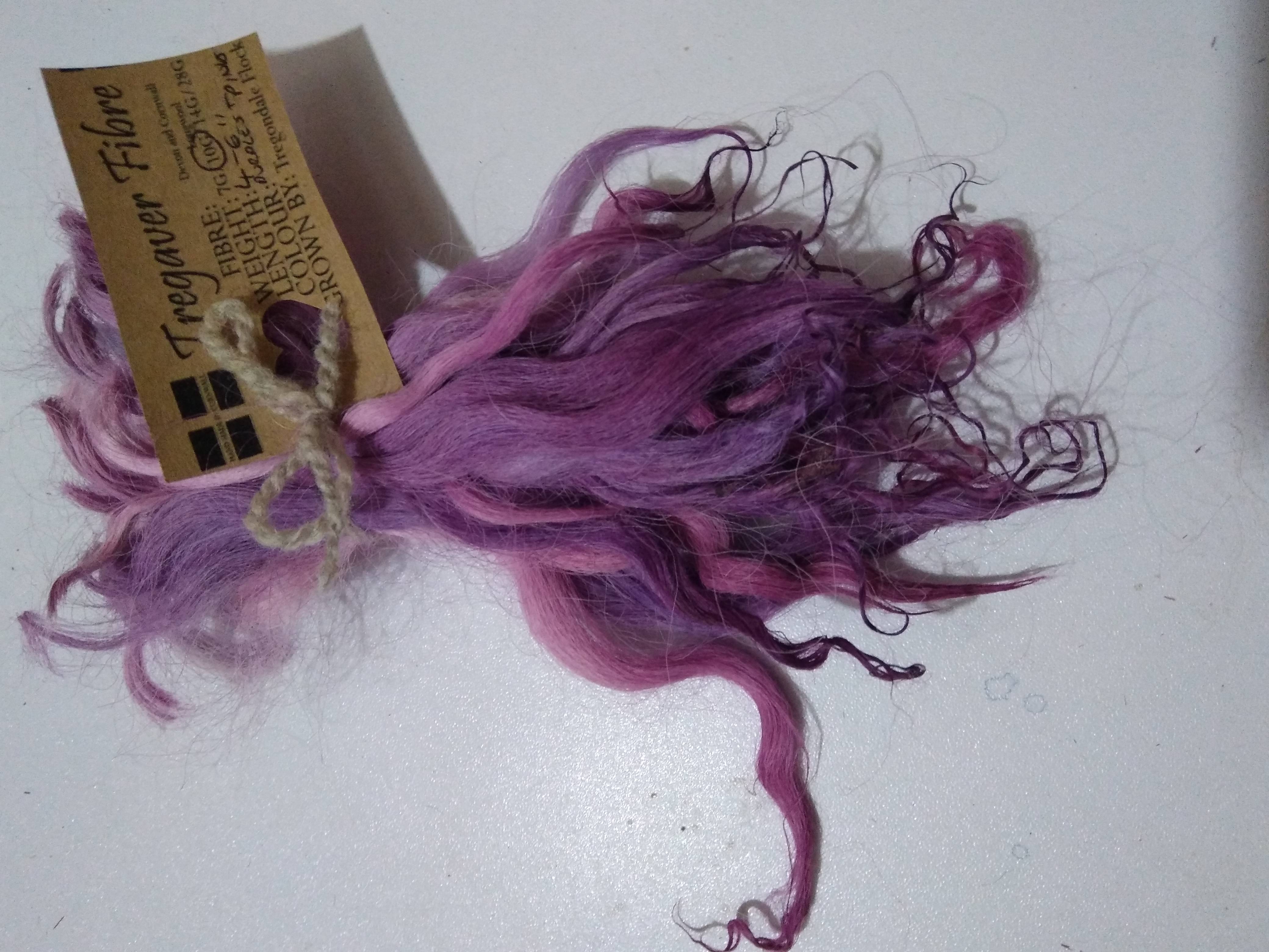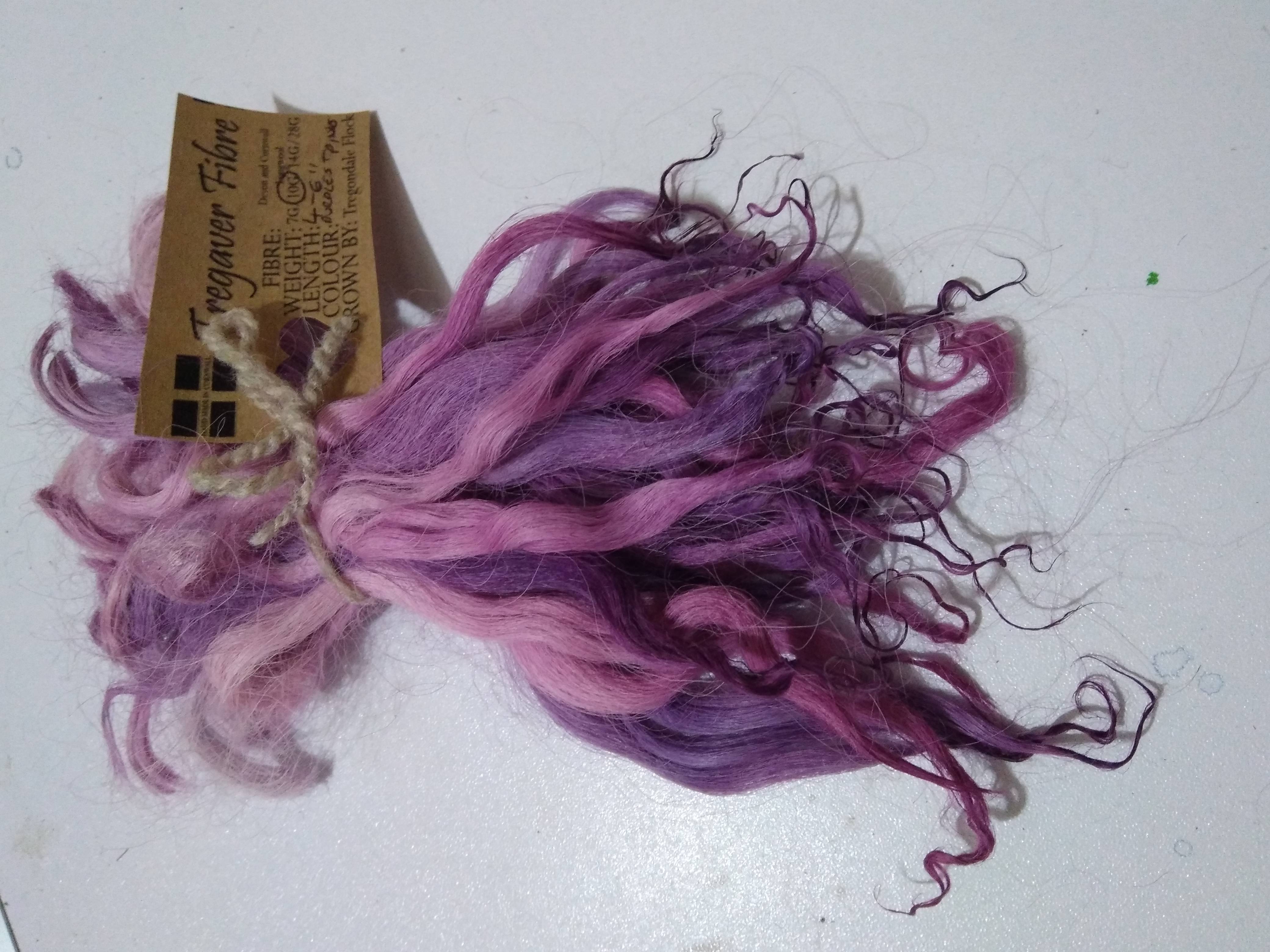 These have been 100% hand processed (very well washed by hand multiple times) and are hand dyed in a mixture purples and pinks