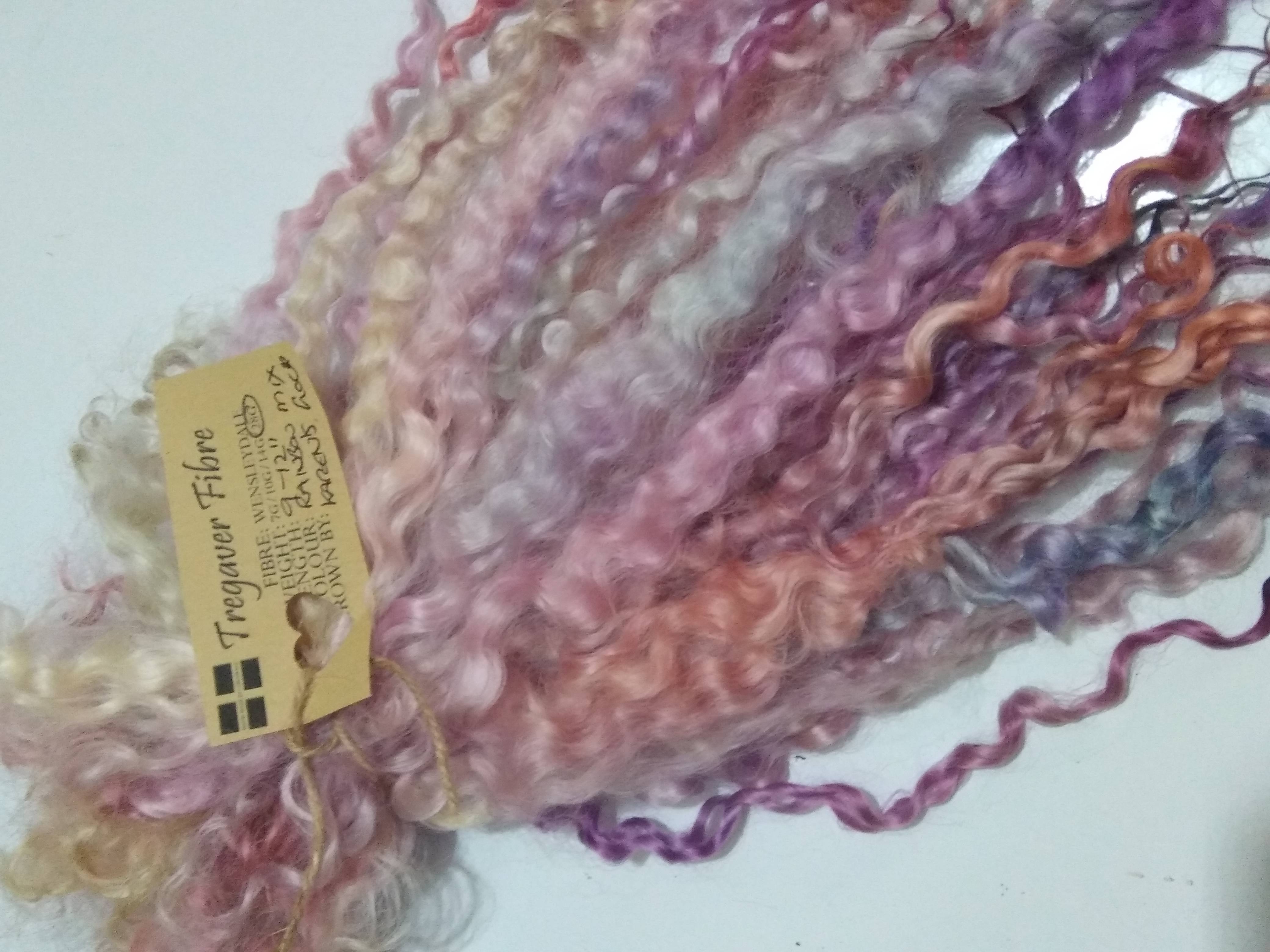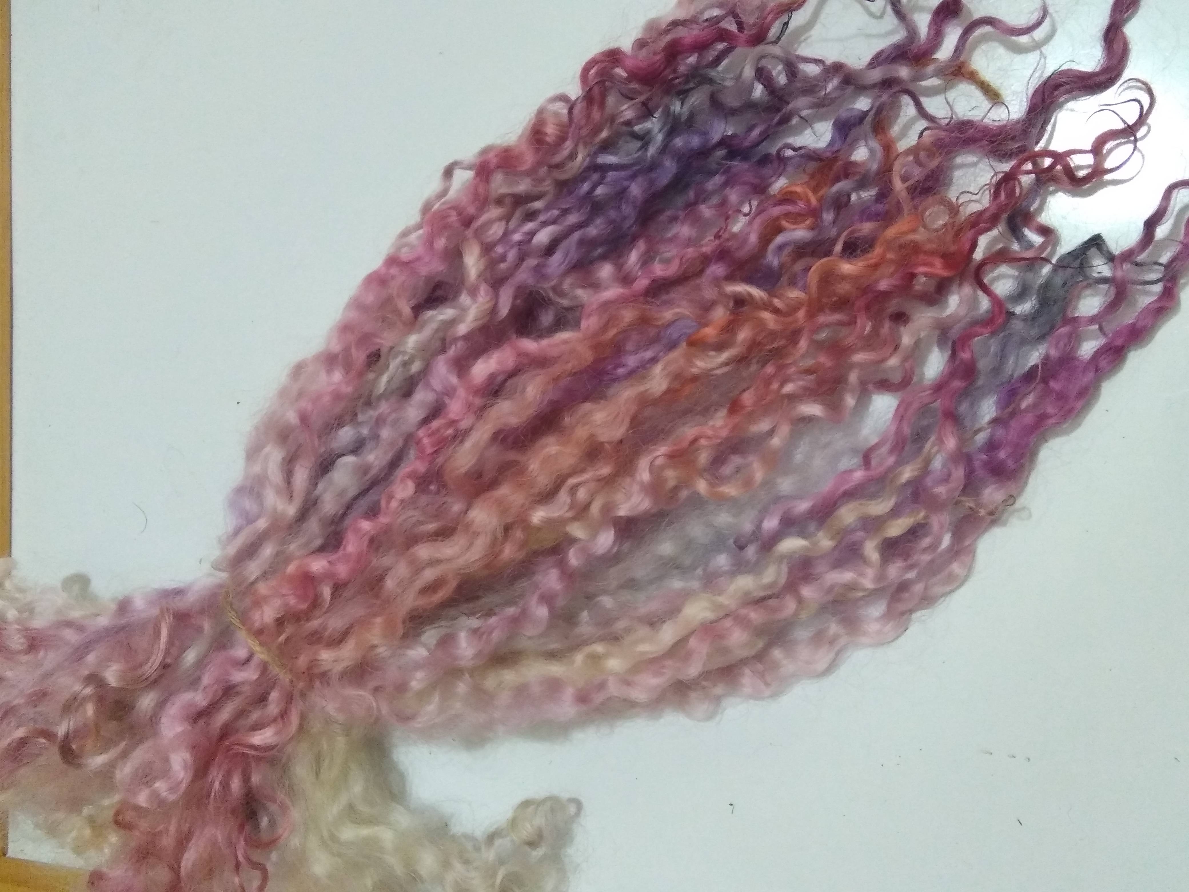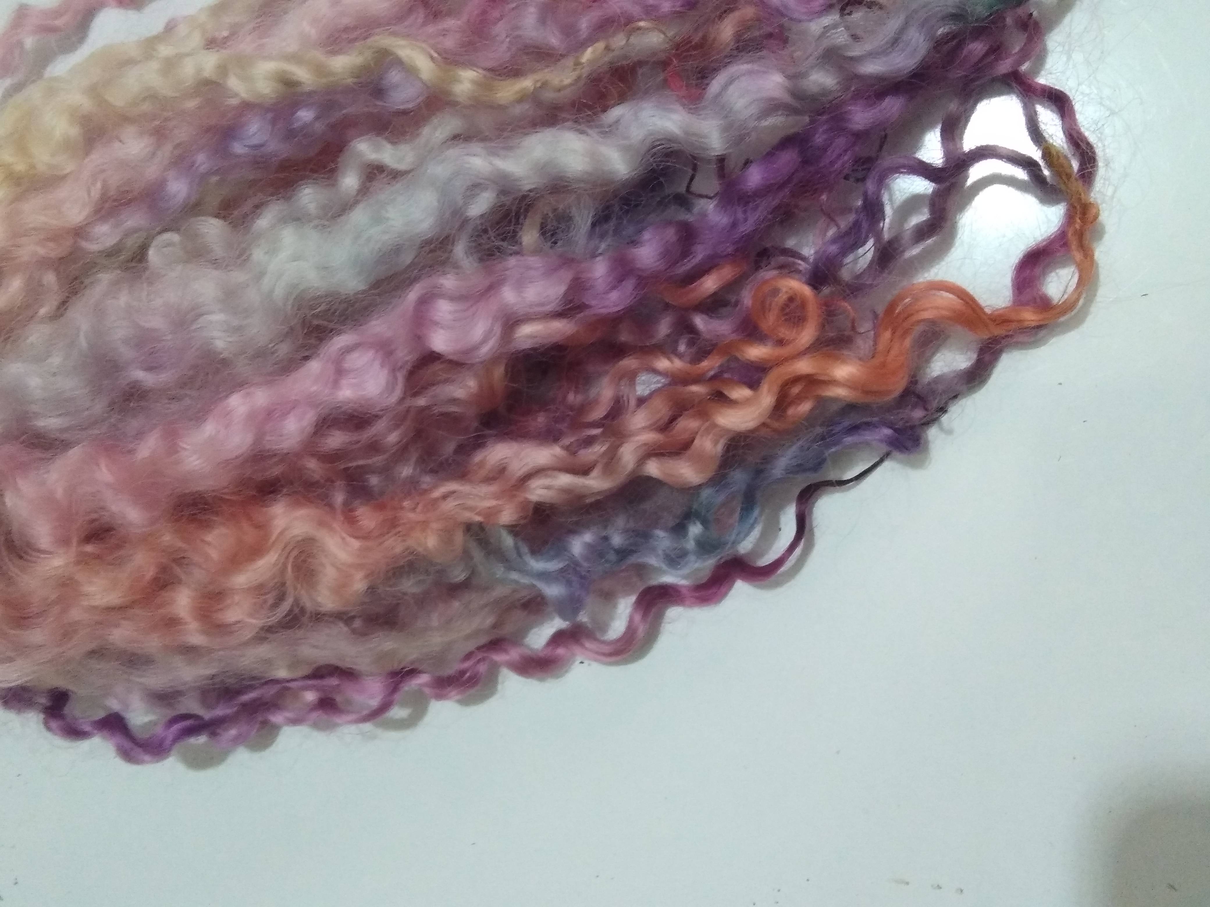 Rainbow mix wenselydale curly wool lock 28g 14g 7g