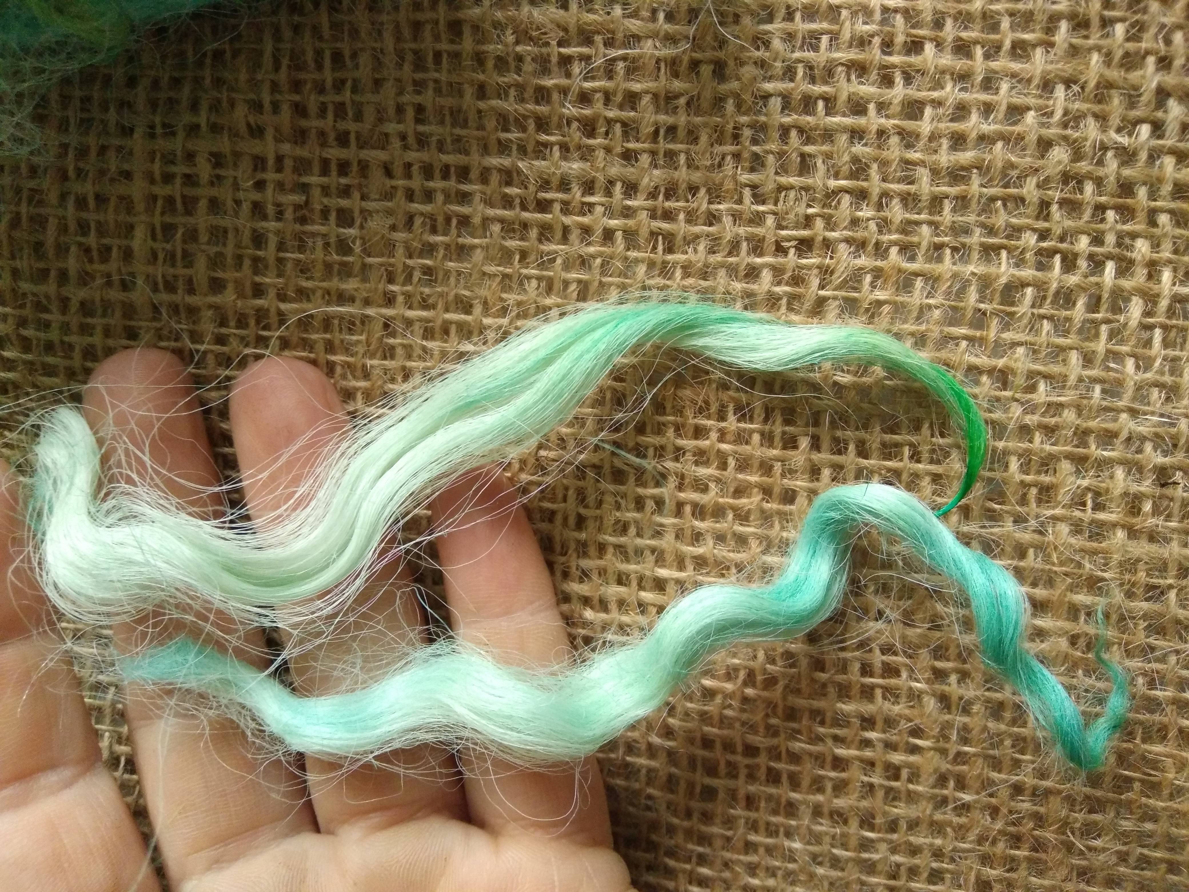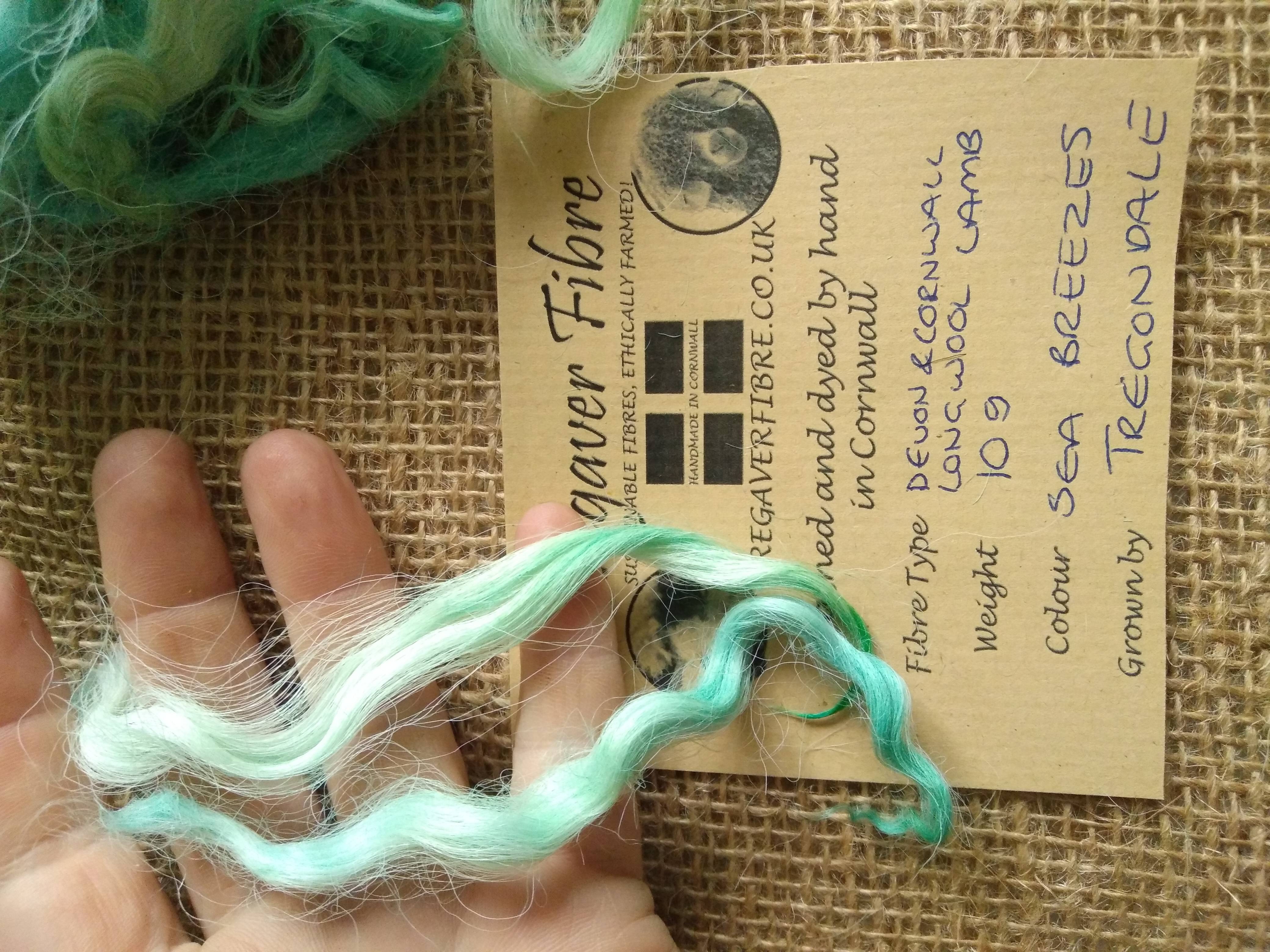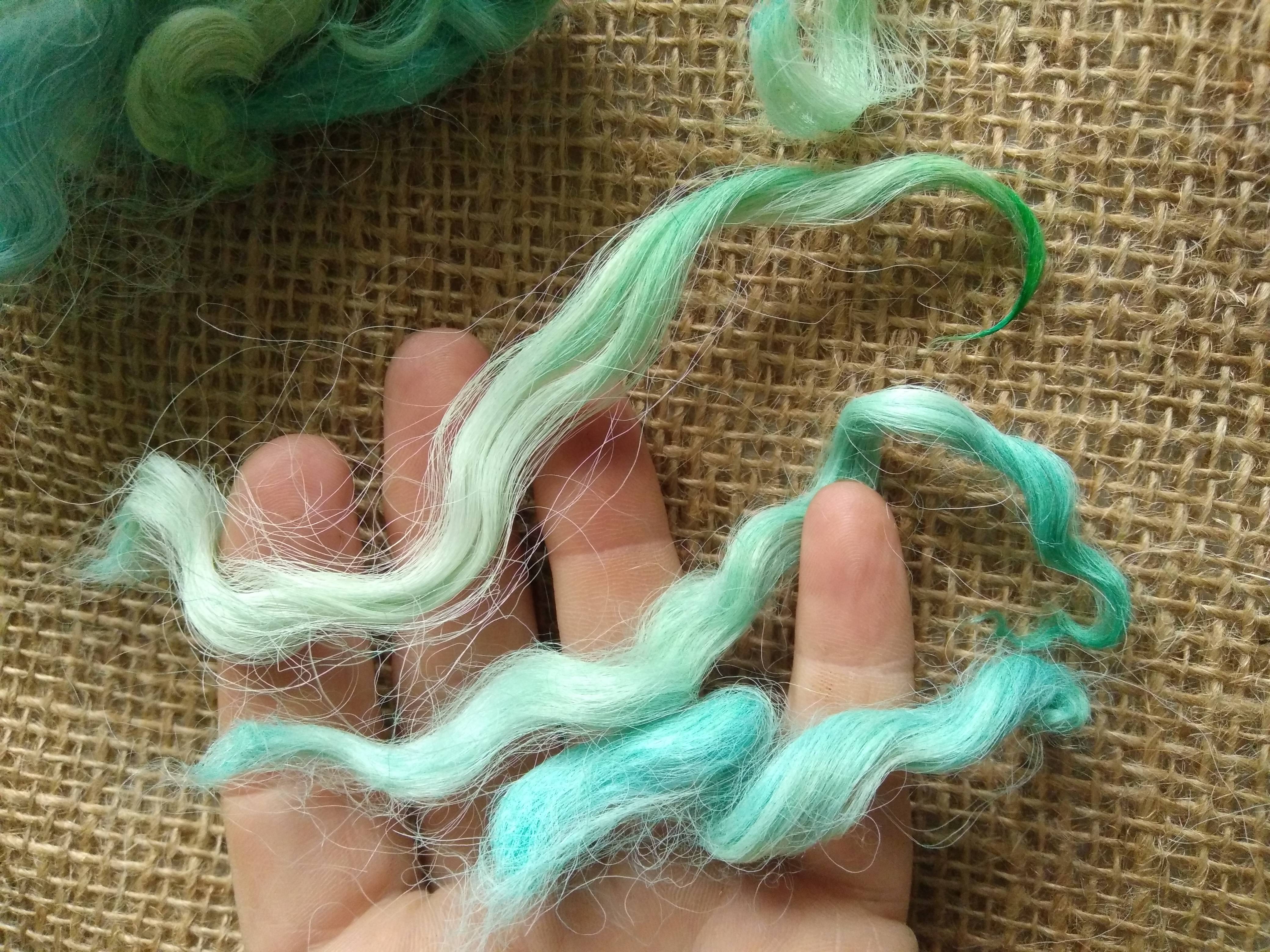 This fibre has been 100% hand processed (very well washed by hand multiple times) and is has been hand dyed in a mixture of blue green and teal/ turquoise tones