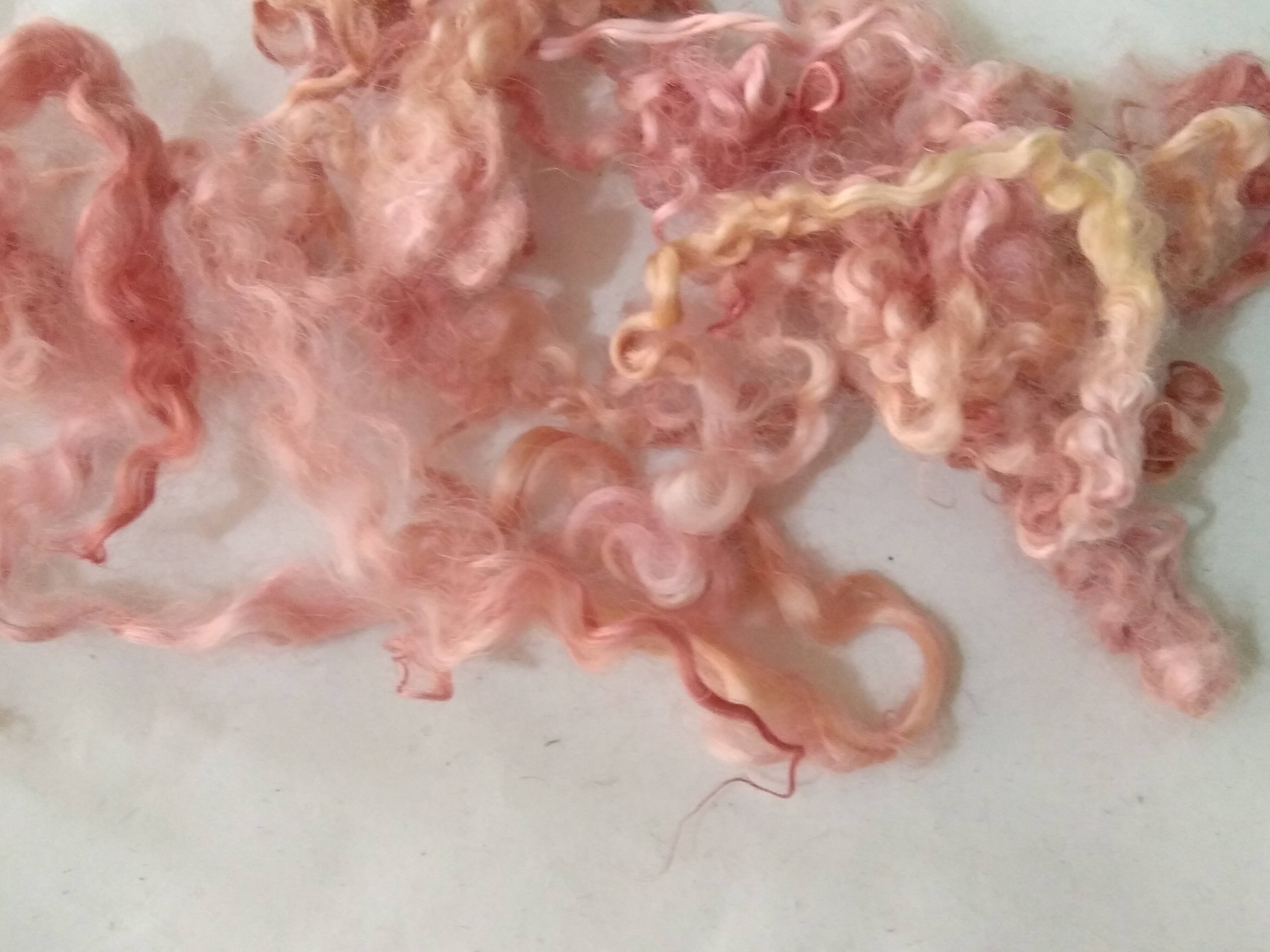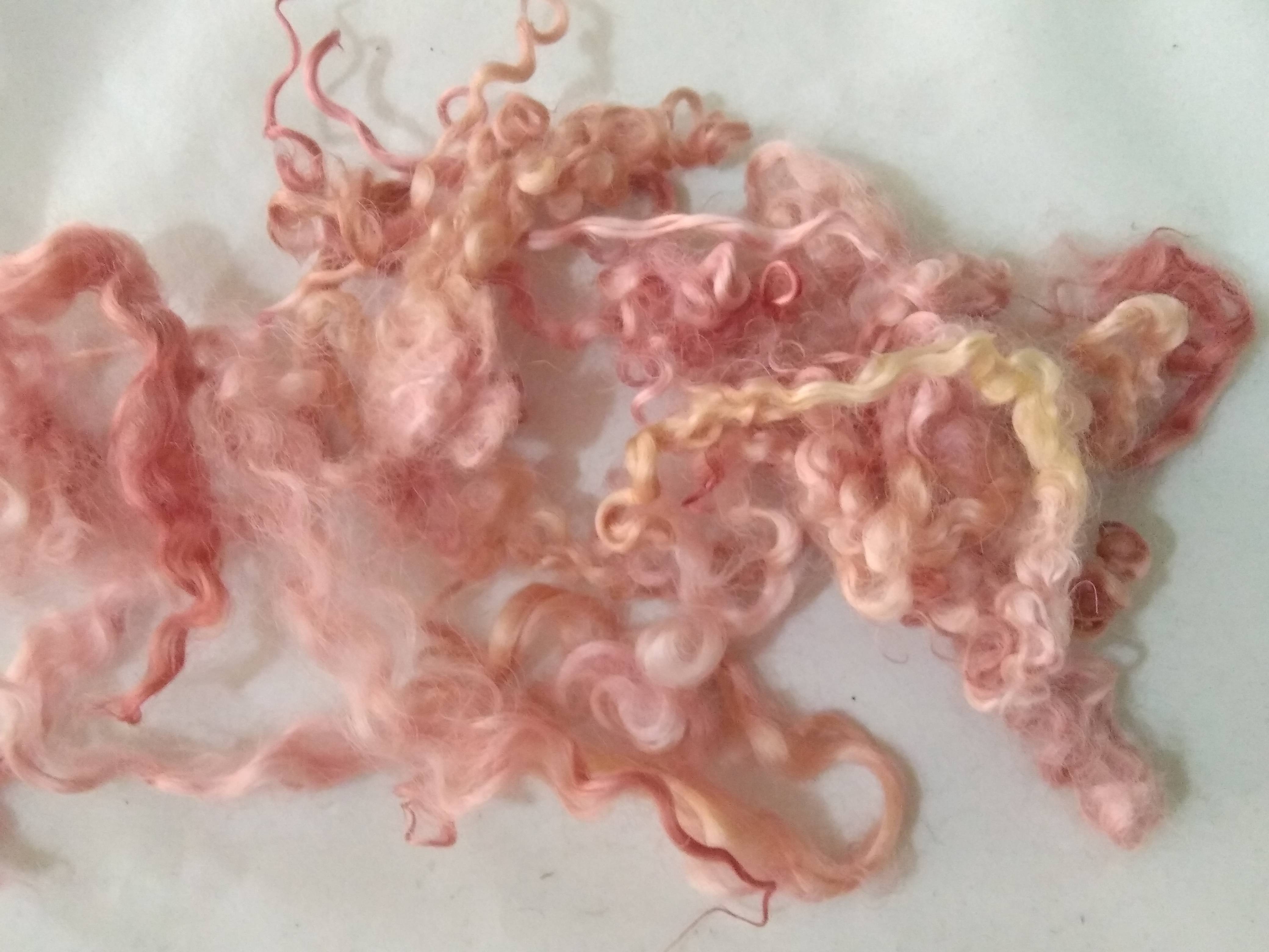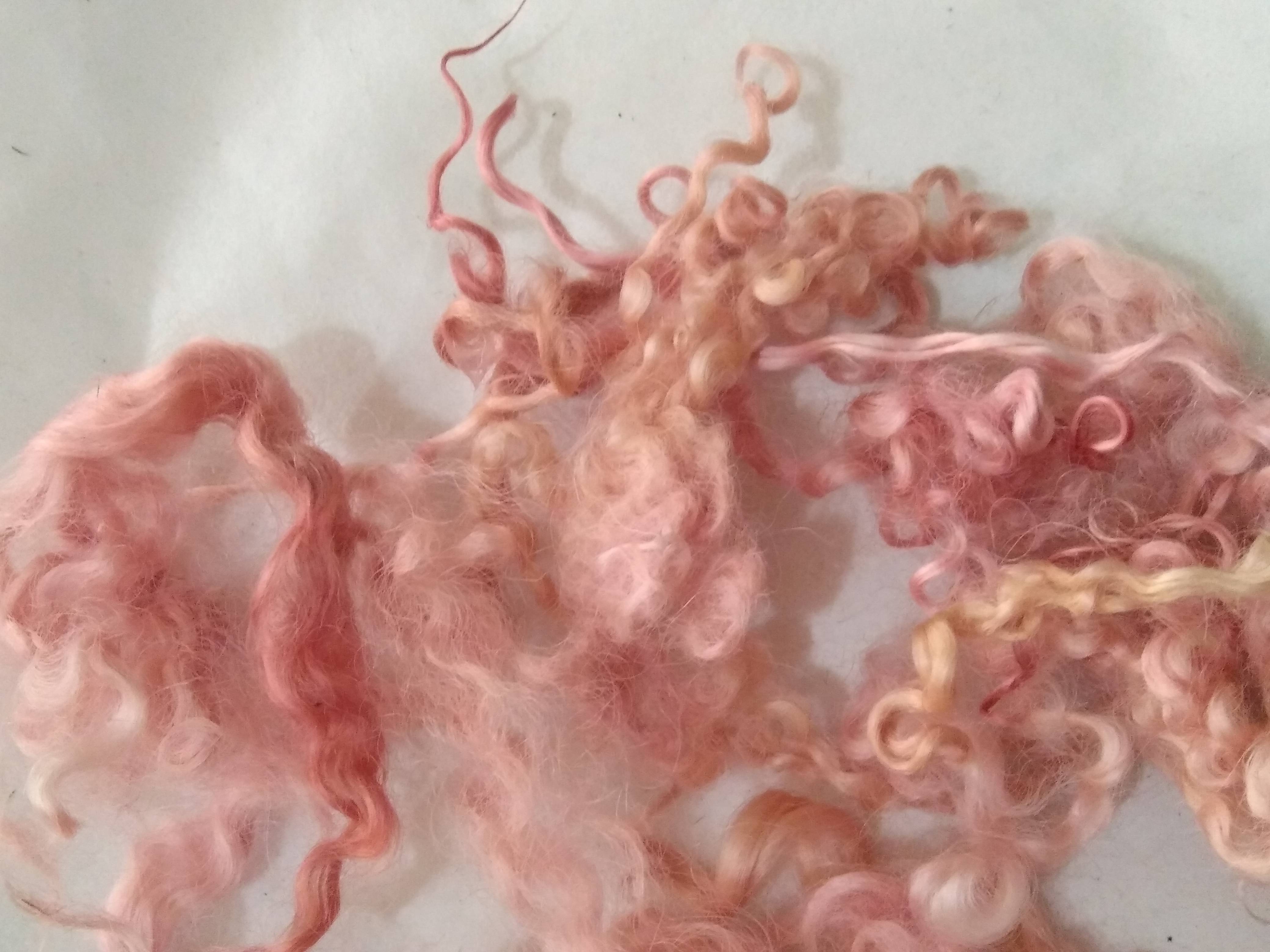 Sea pink and gold curly wool and locks, 10g