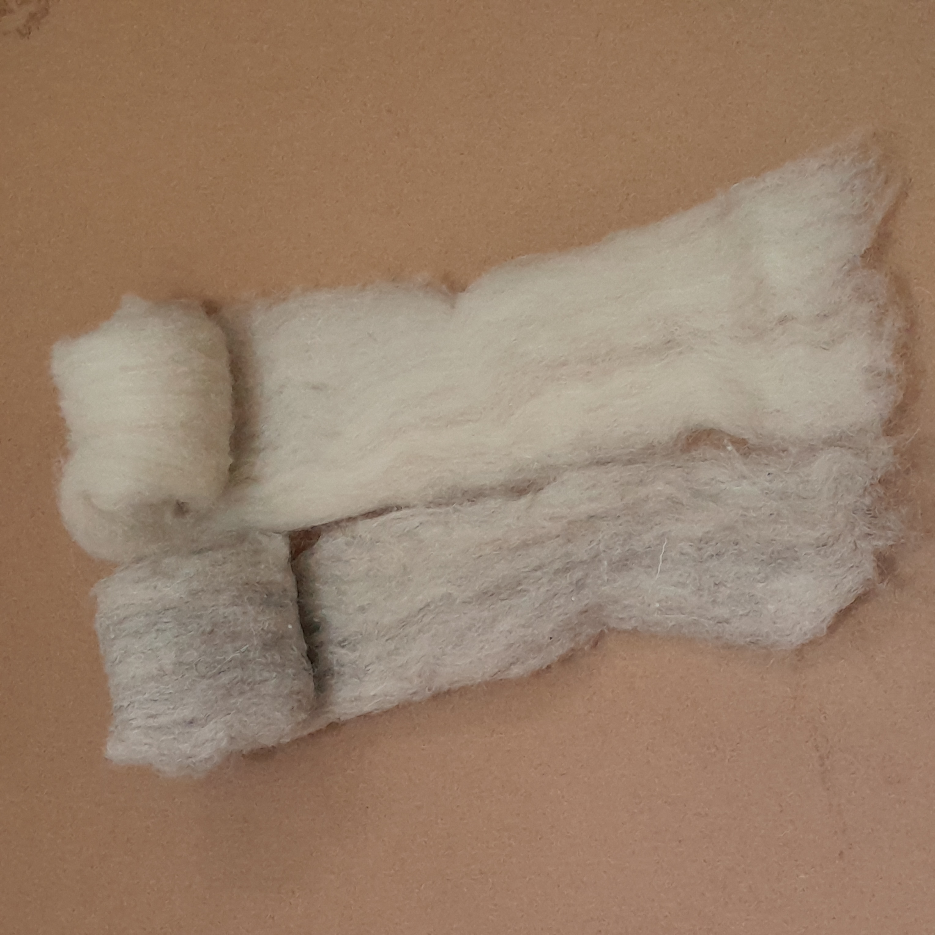 They are mixed natural fibres which have been been scoured (professionally cleaned), and it may have a very small amount of VM which is easily removed. It's made up from a mixture of natural fibres, such as wool, mohair and alpaca which have all been blended to create this gorgeous, lightweight and fluffy sliver.