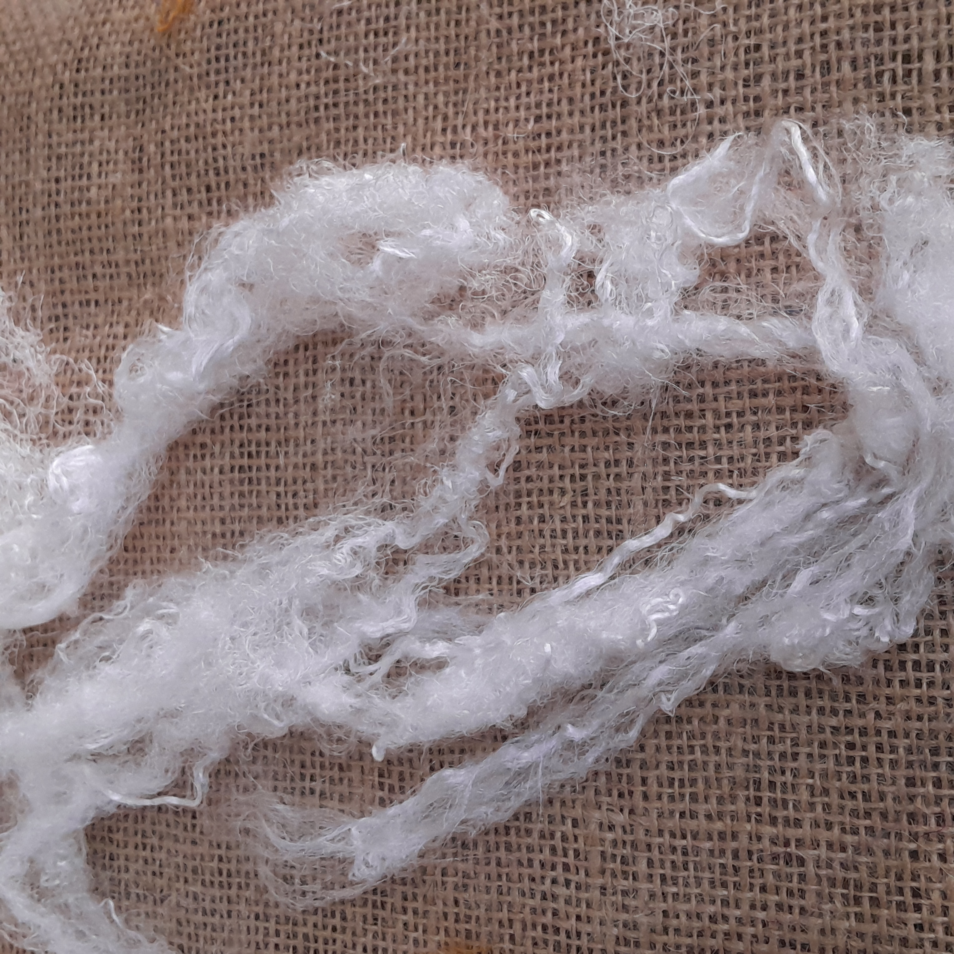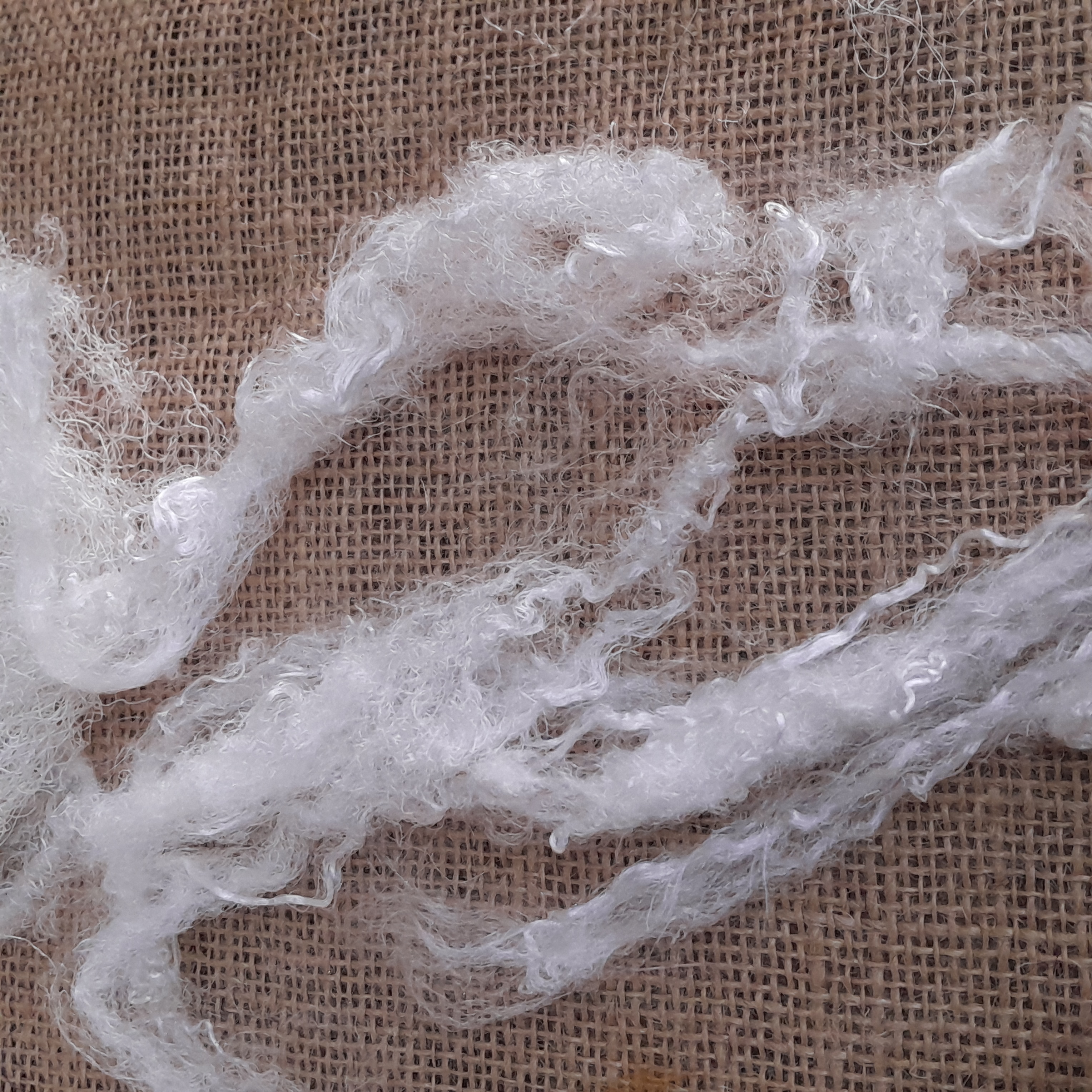 Collected as waste during the yarn making process, this fibre offers a beautifully random texture, it's soft and shiny, and can be used in felting and spinning as well as other fibre arts. We buy in this waste from our supplier in India, and import it here to the UK to give it a second chance at becoming something beautiful!