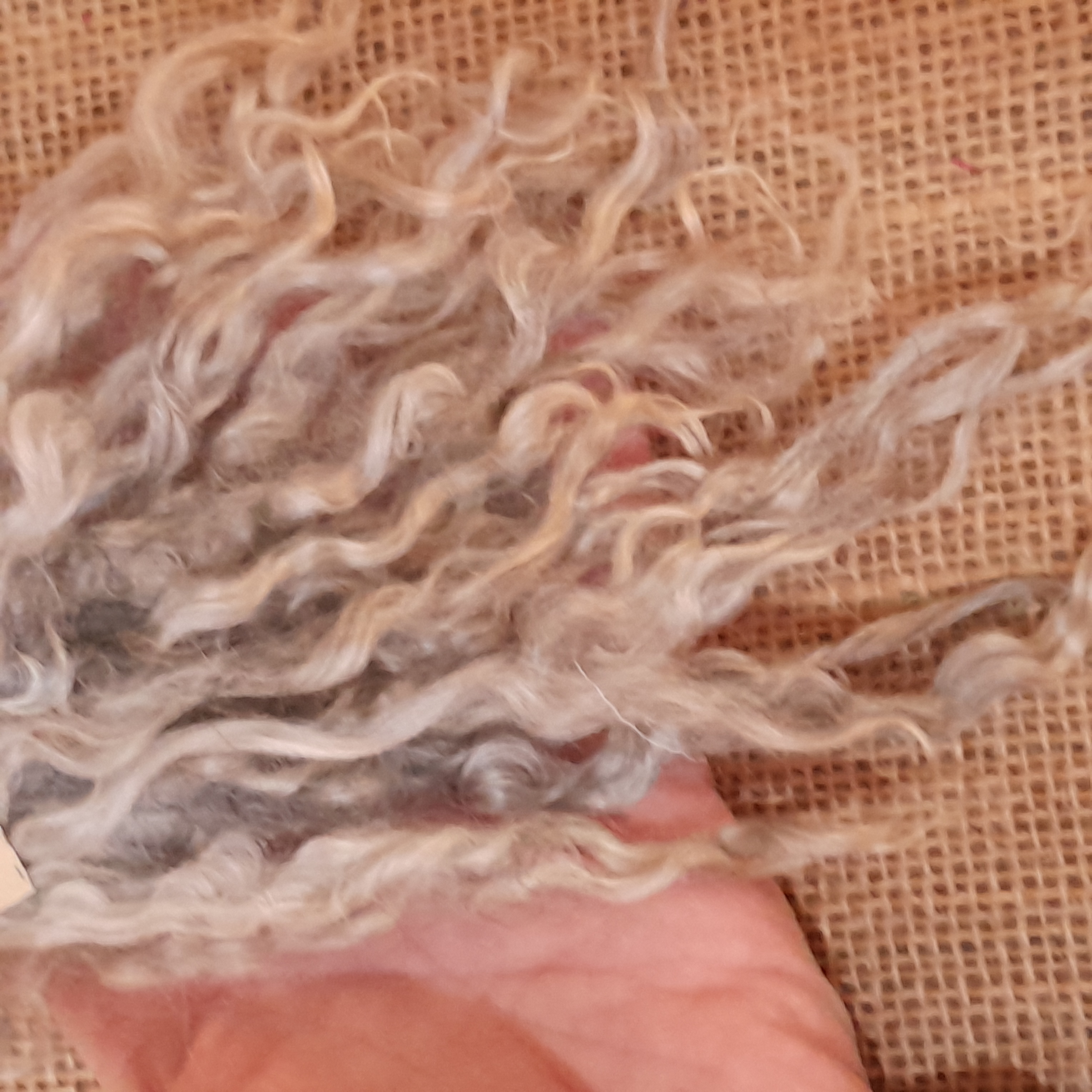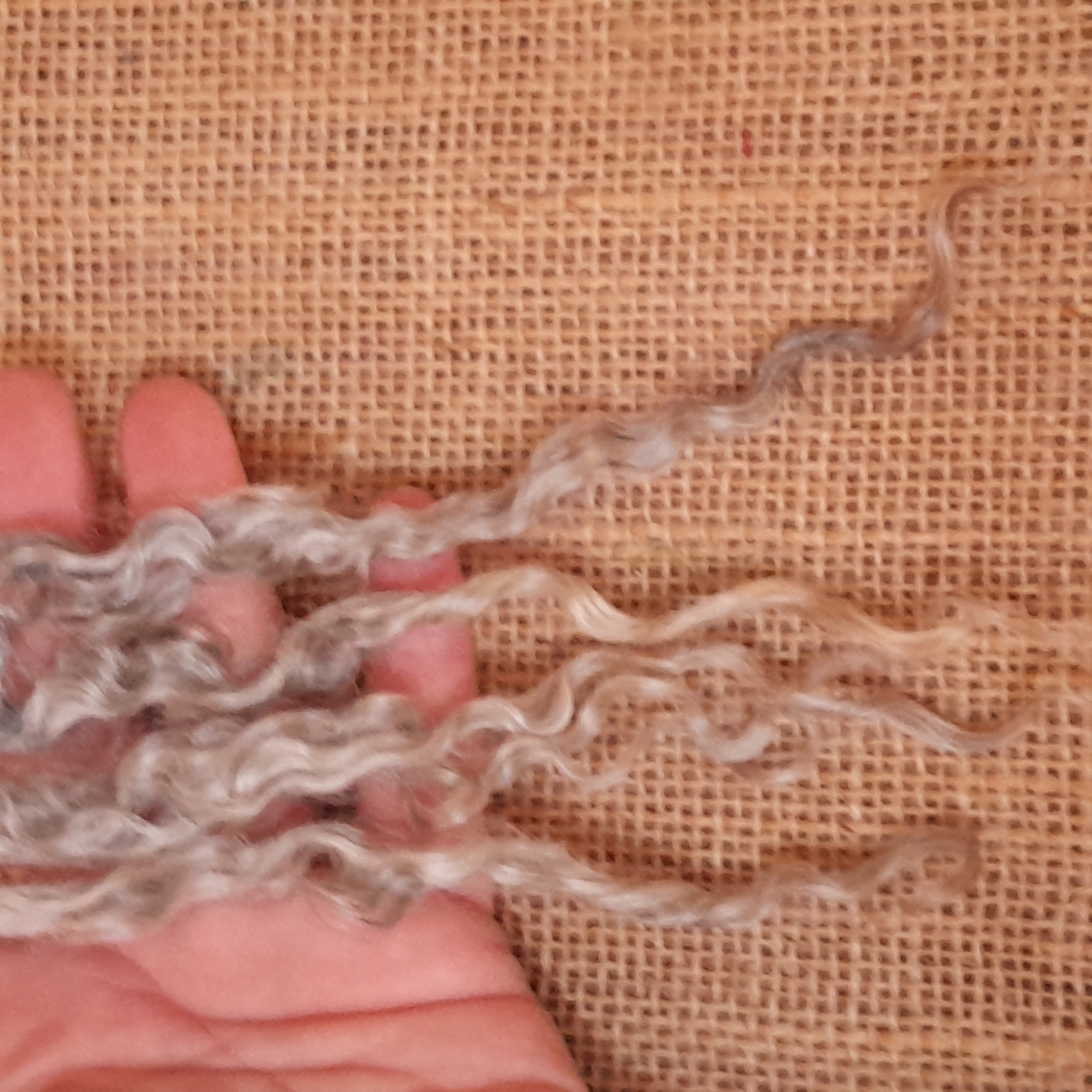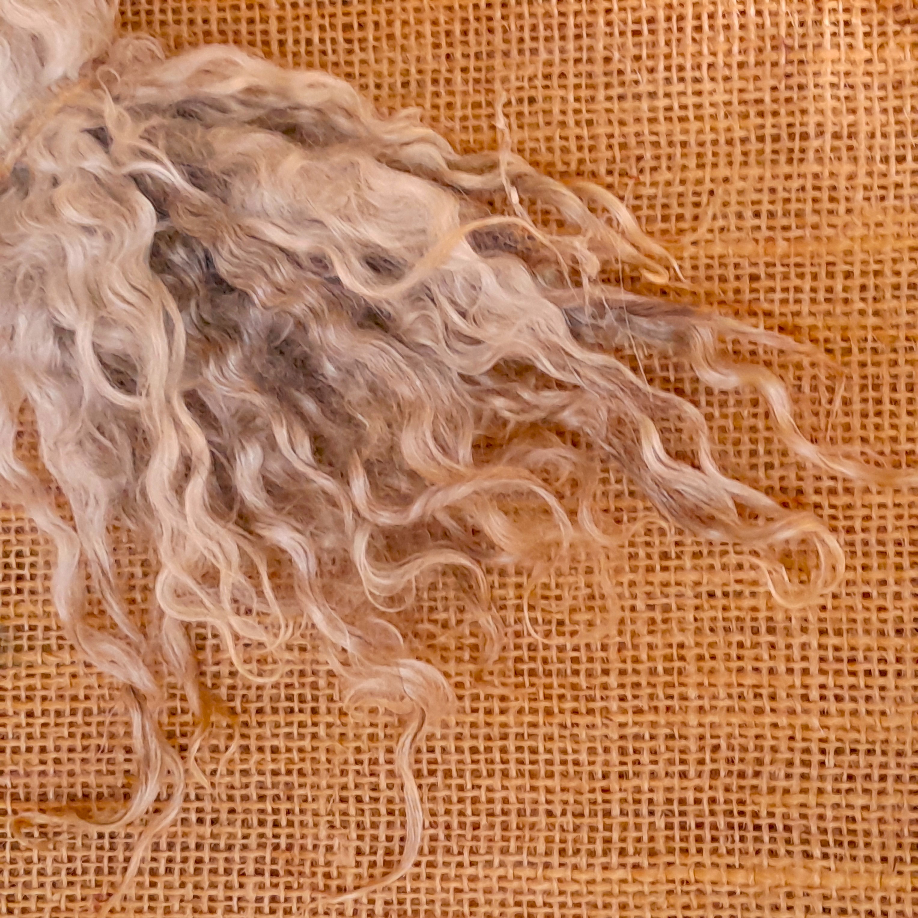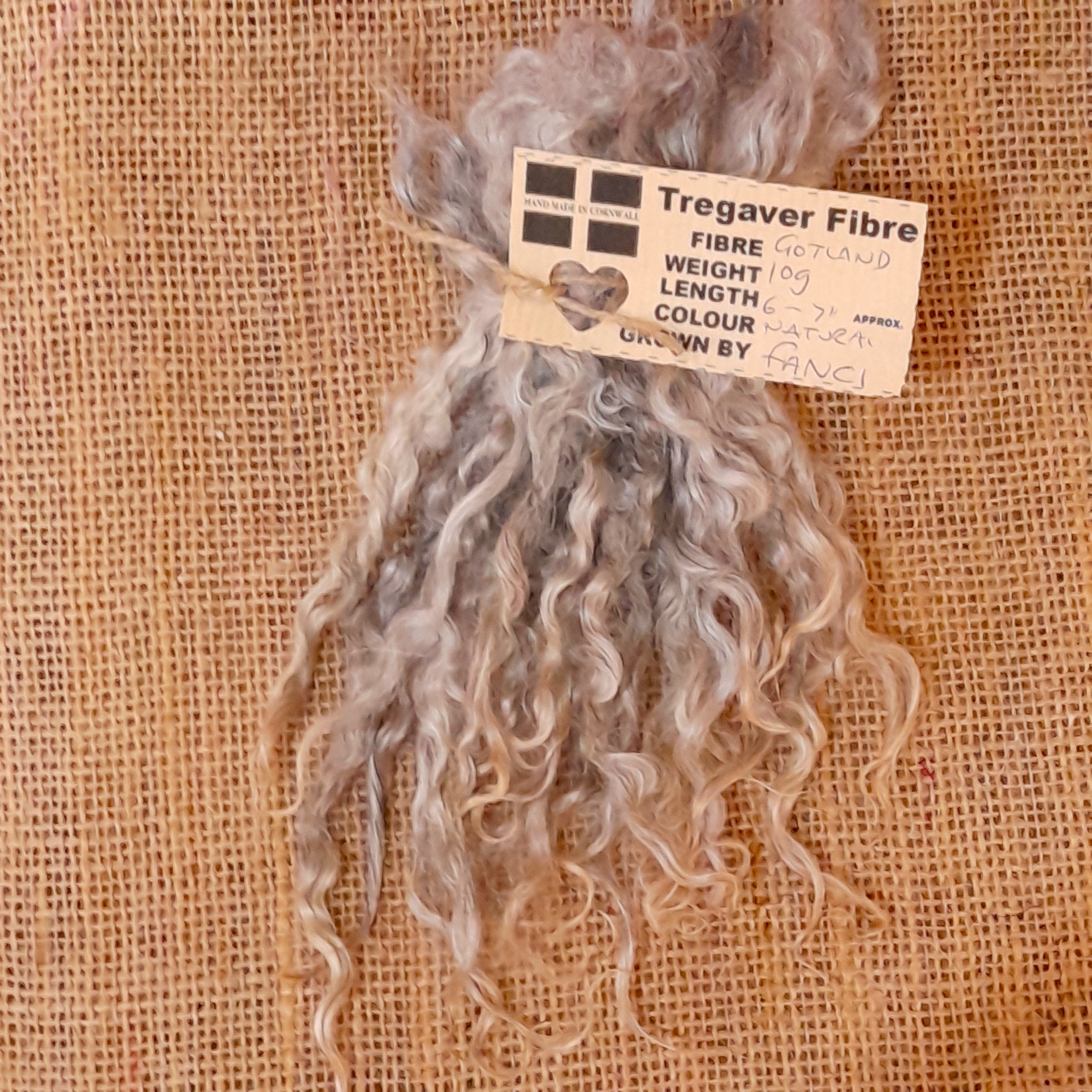 This gotland fleece is lambswool, so has a staple of around 6", perfect staple length for small beards and top coats for curly animals! Sold in a 10g bunch