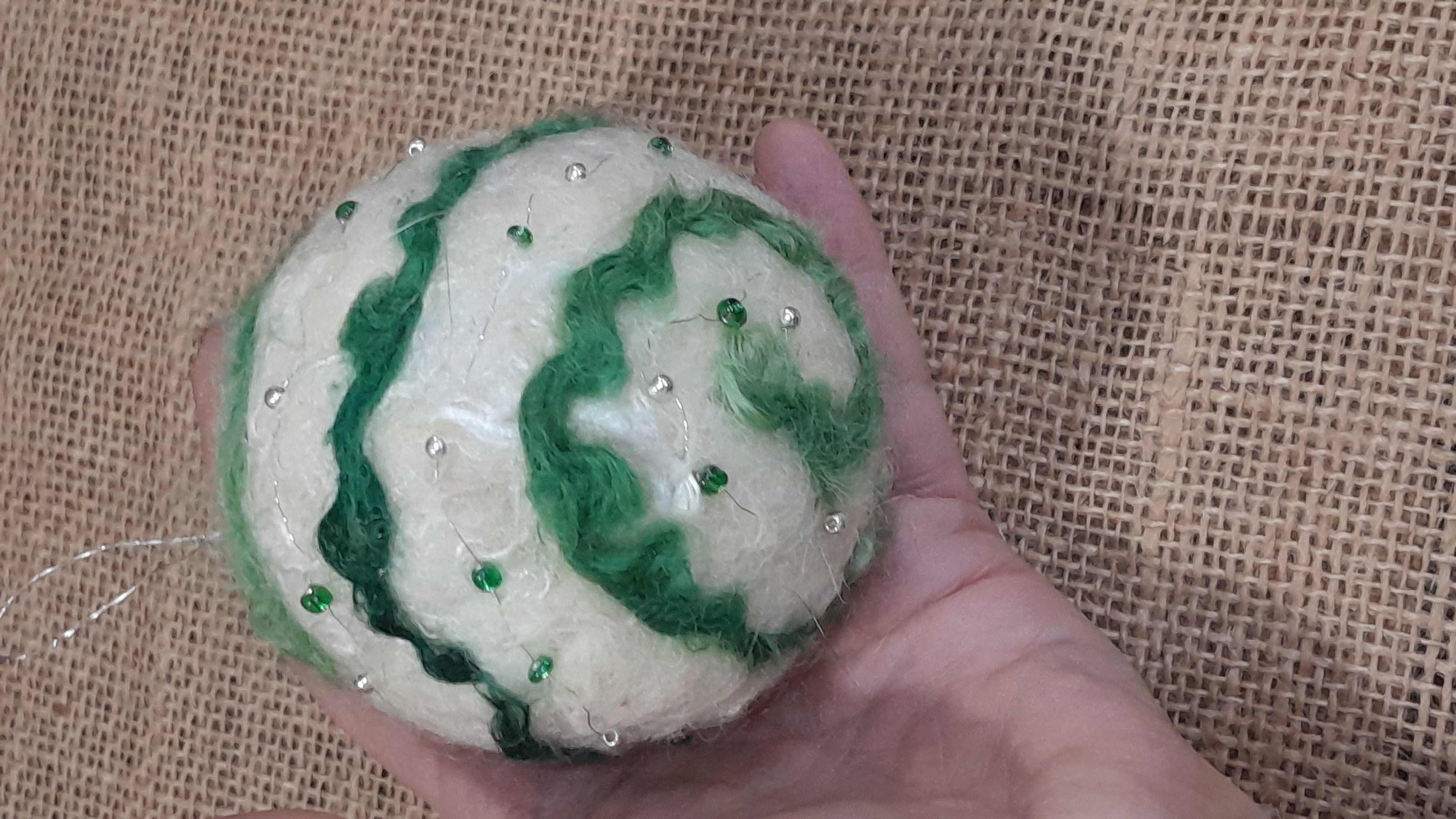 Handmade Wool Balls for felting crafts - snowy shimmer