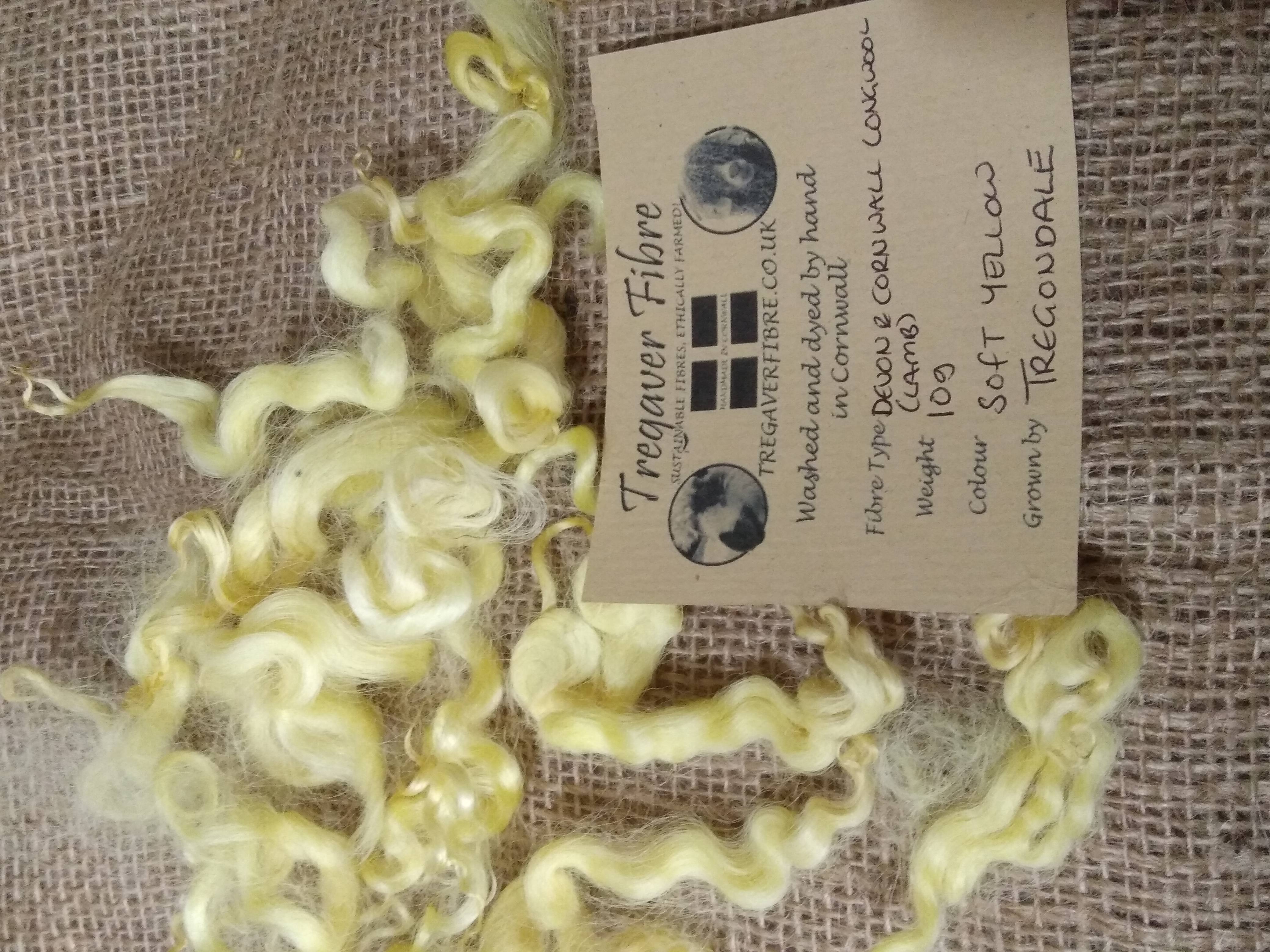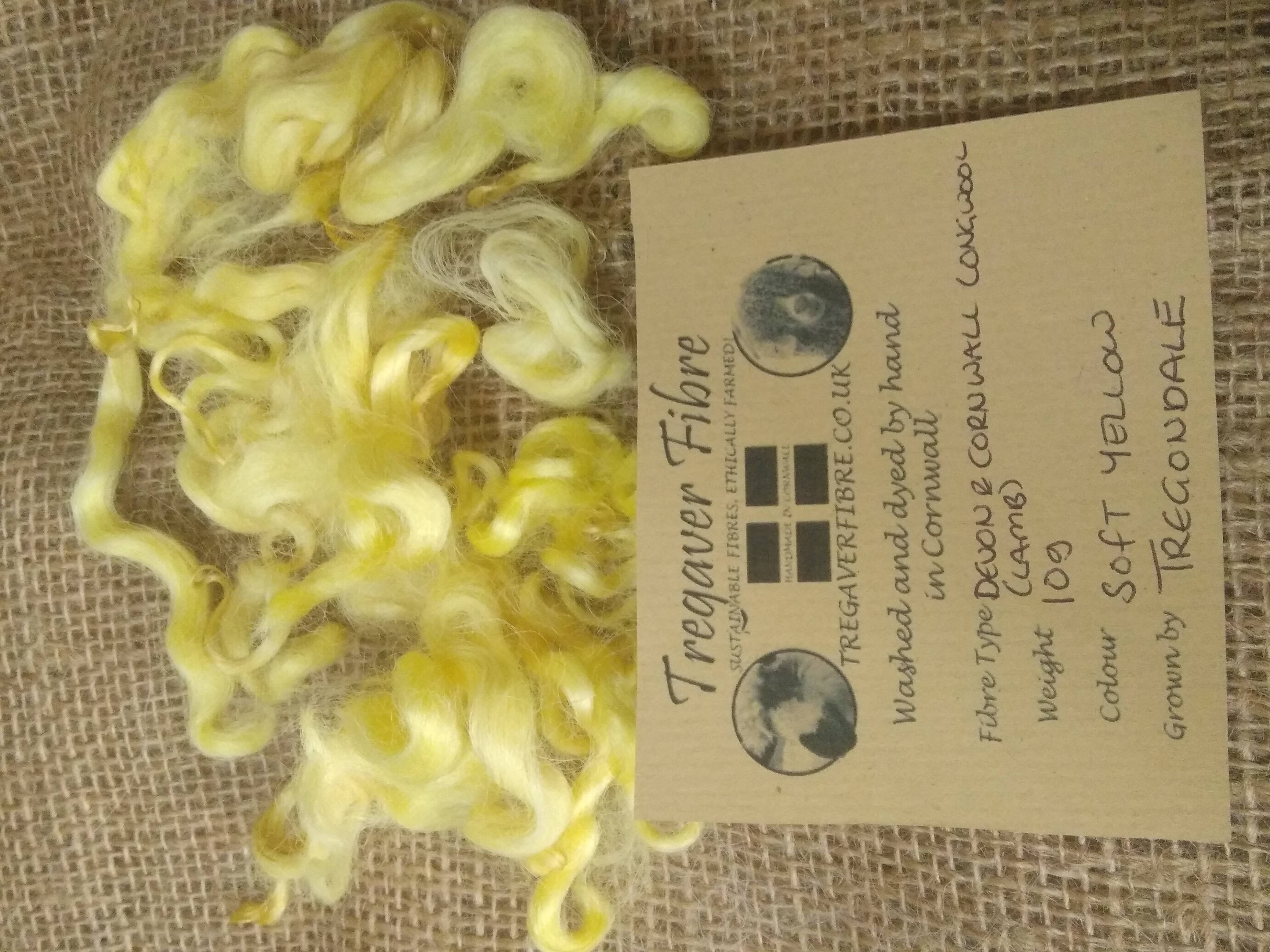 Soft Yellow curly wool and locks, 10g Devon and Cornwall Longwool