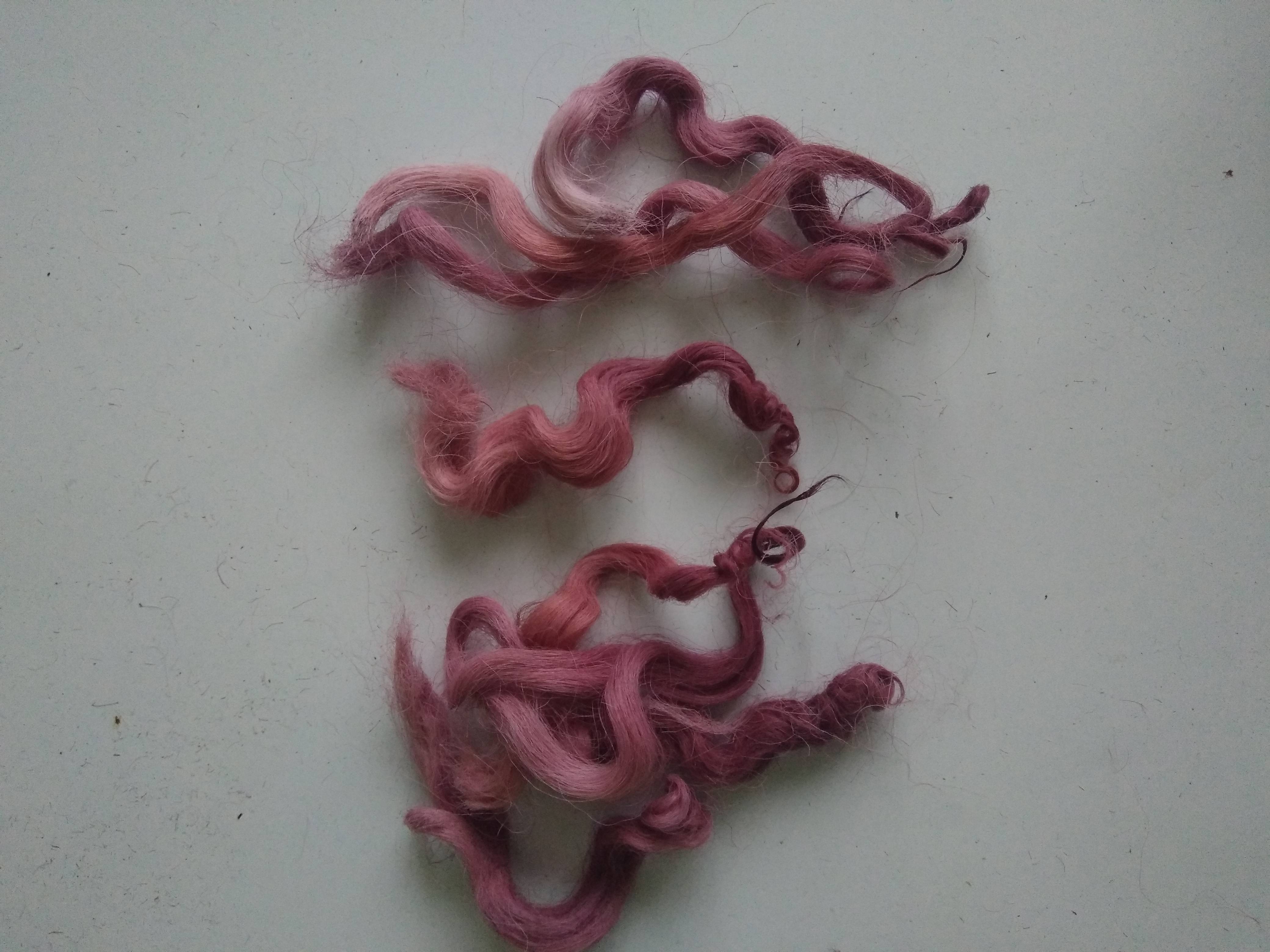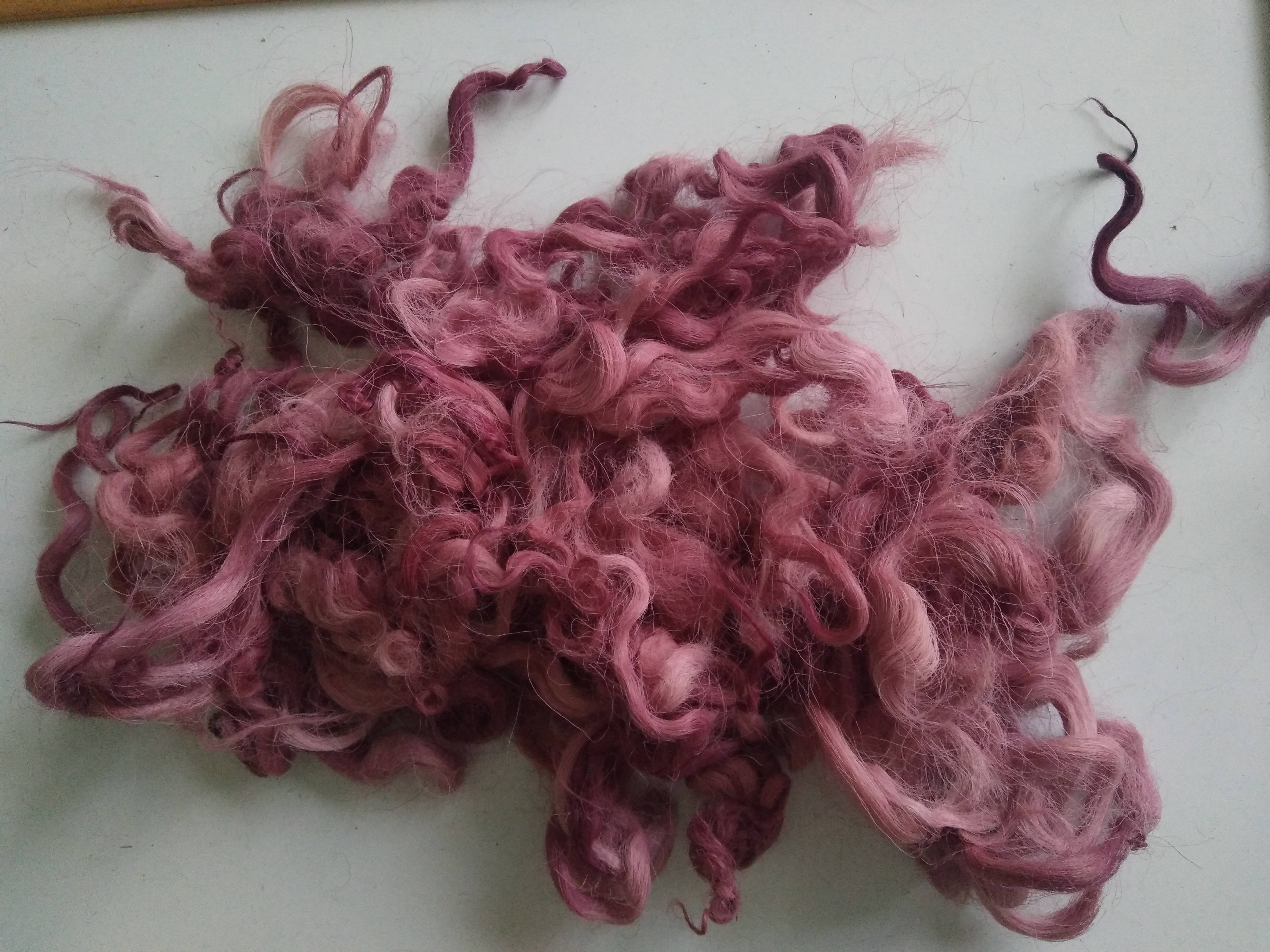This fibre has been 100% hand processed (very well washed by hand multiple times) and is has been hand dyed in a mixture of heather tones.