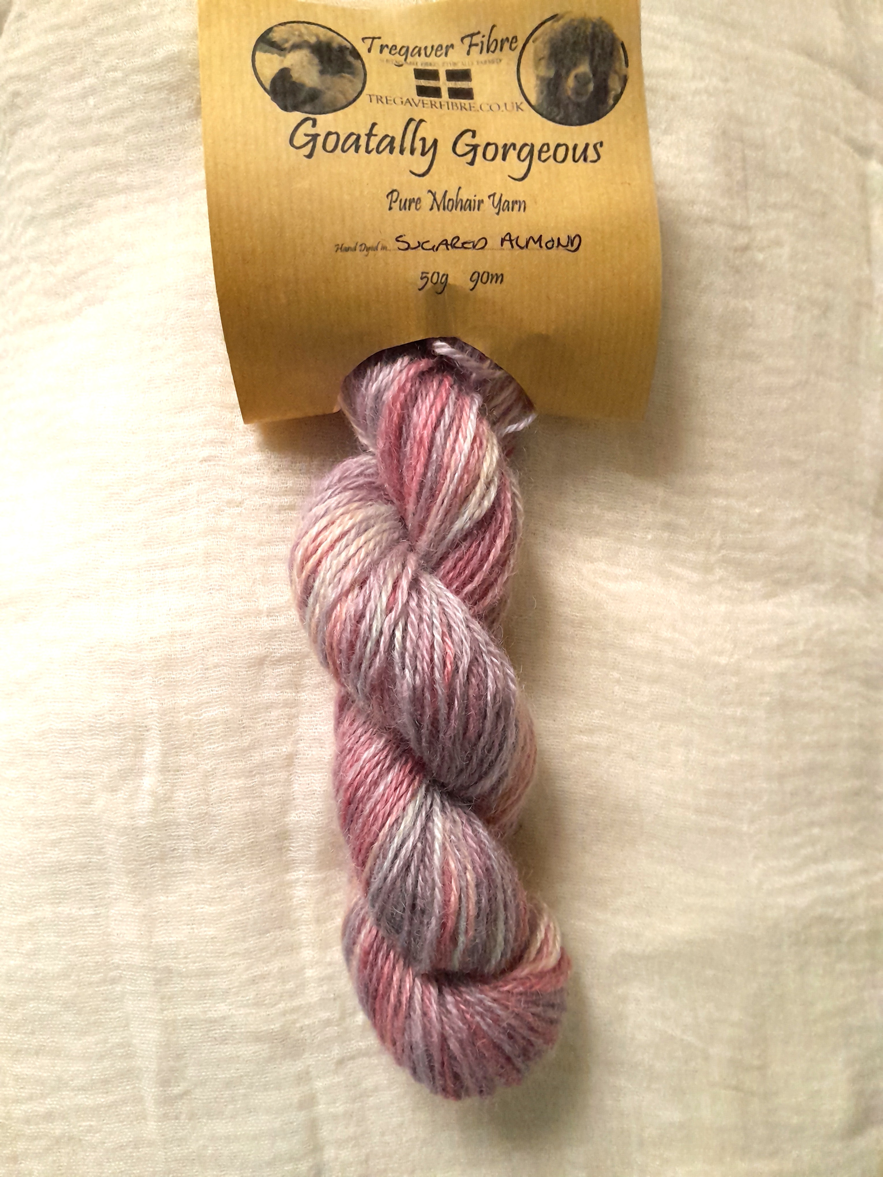 Professionally spun by the Natural Fibre Company in Launceston, Cornwall, this mohair yarn is spun as a light aran weight yarn, and each hank is 50g , with a length of 90m.