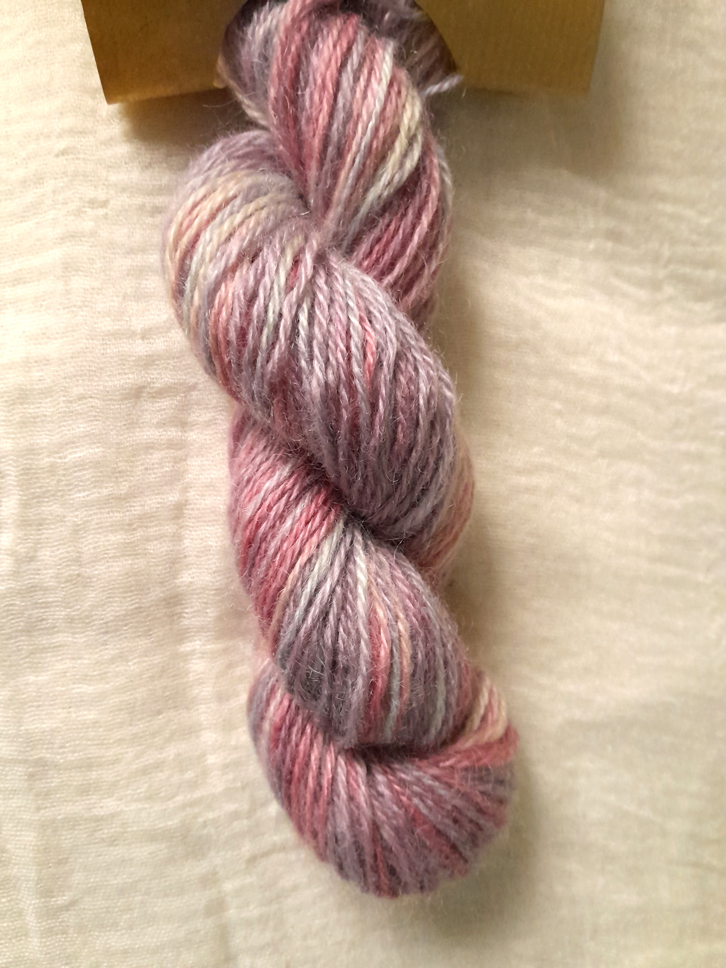It was then hand dyed in a varied mix of purples blues, cream and and pinks, in a sugared almond theme, with hues in between too!