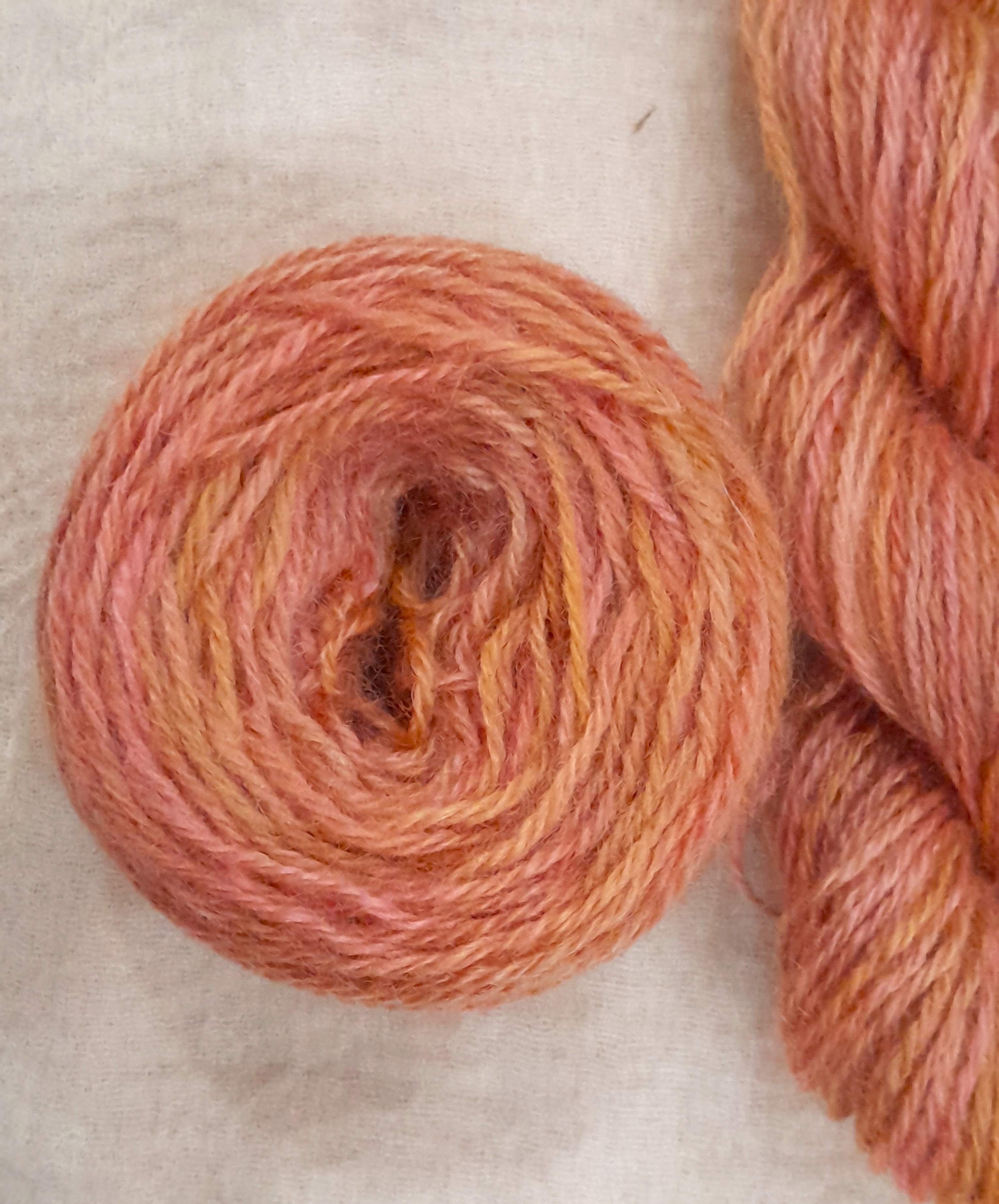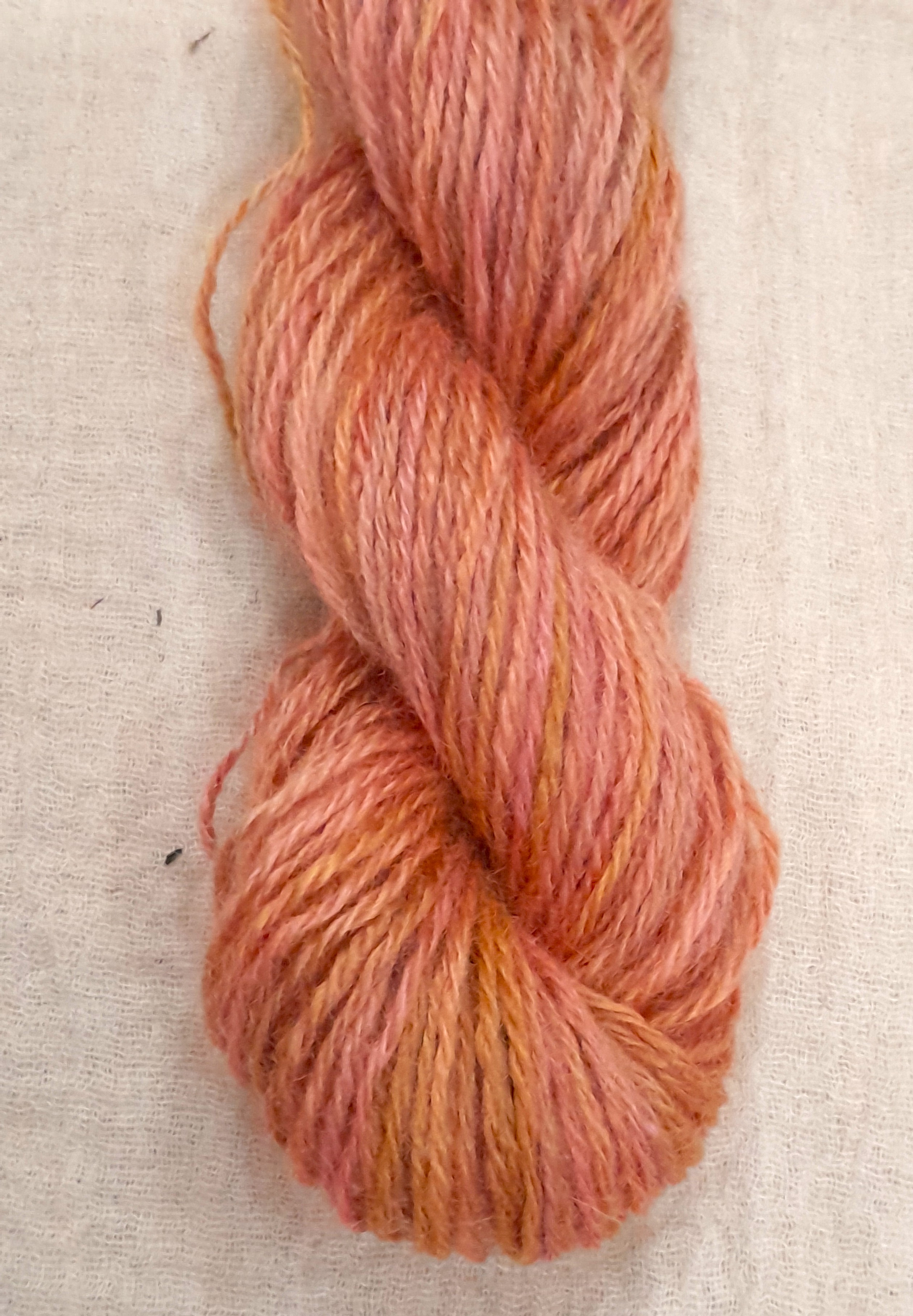 Goatally Gorgeous Pure Mohair Yarn, Hand Dyed in golden peach, orange and pink (v)