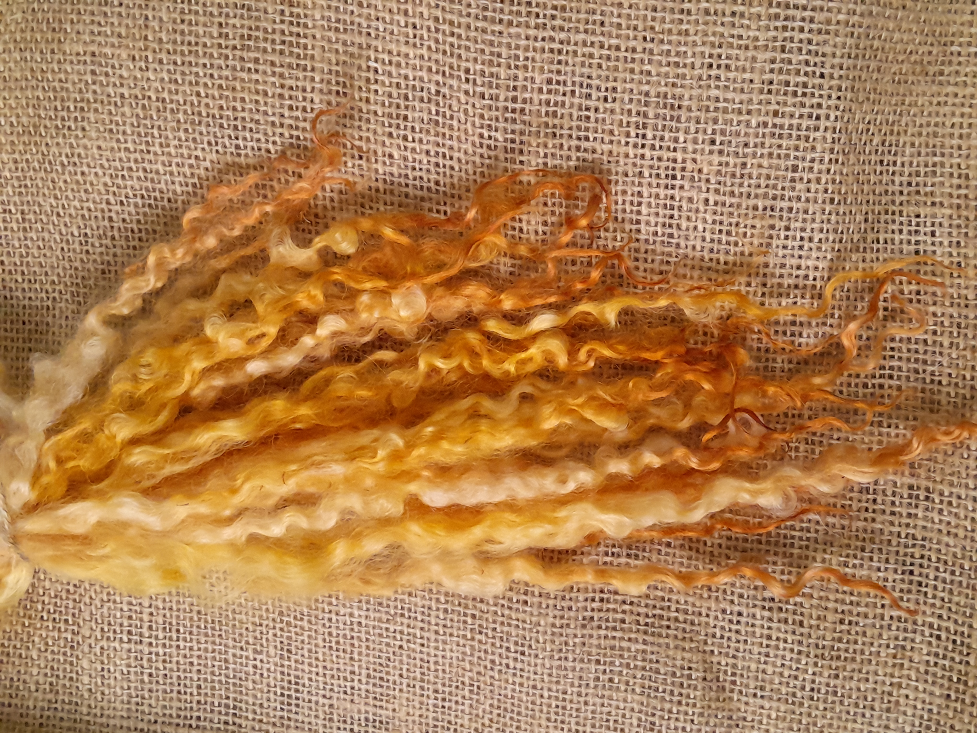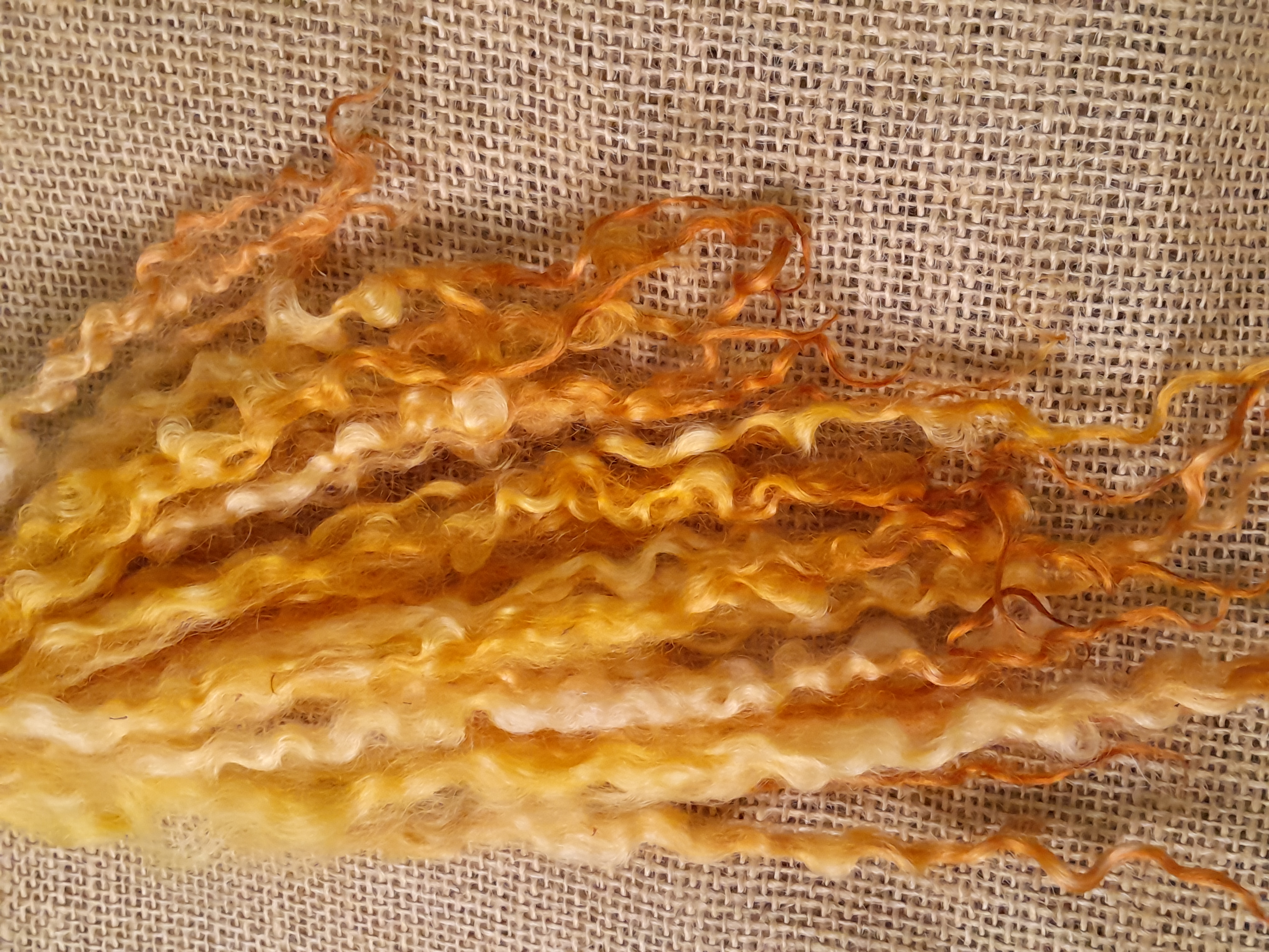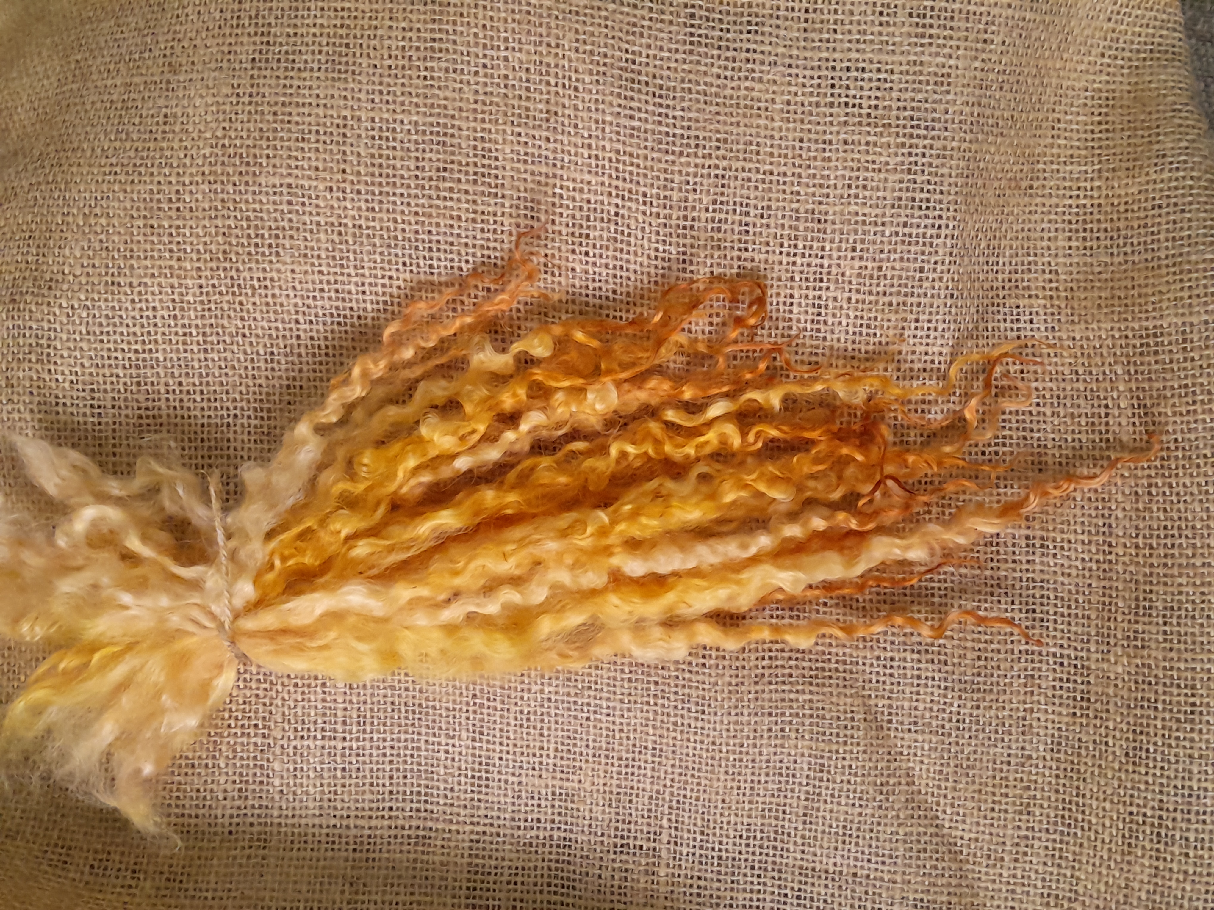 Sunny yellow and orange Masham Curly wool Locks, approx 8-12", 10g
