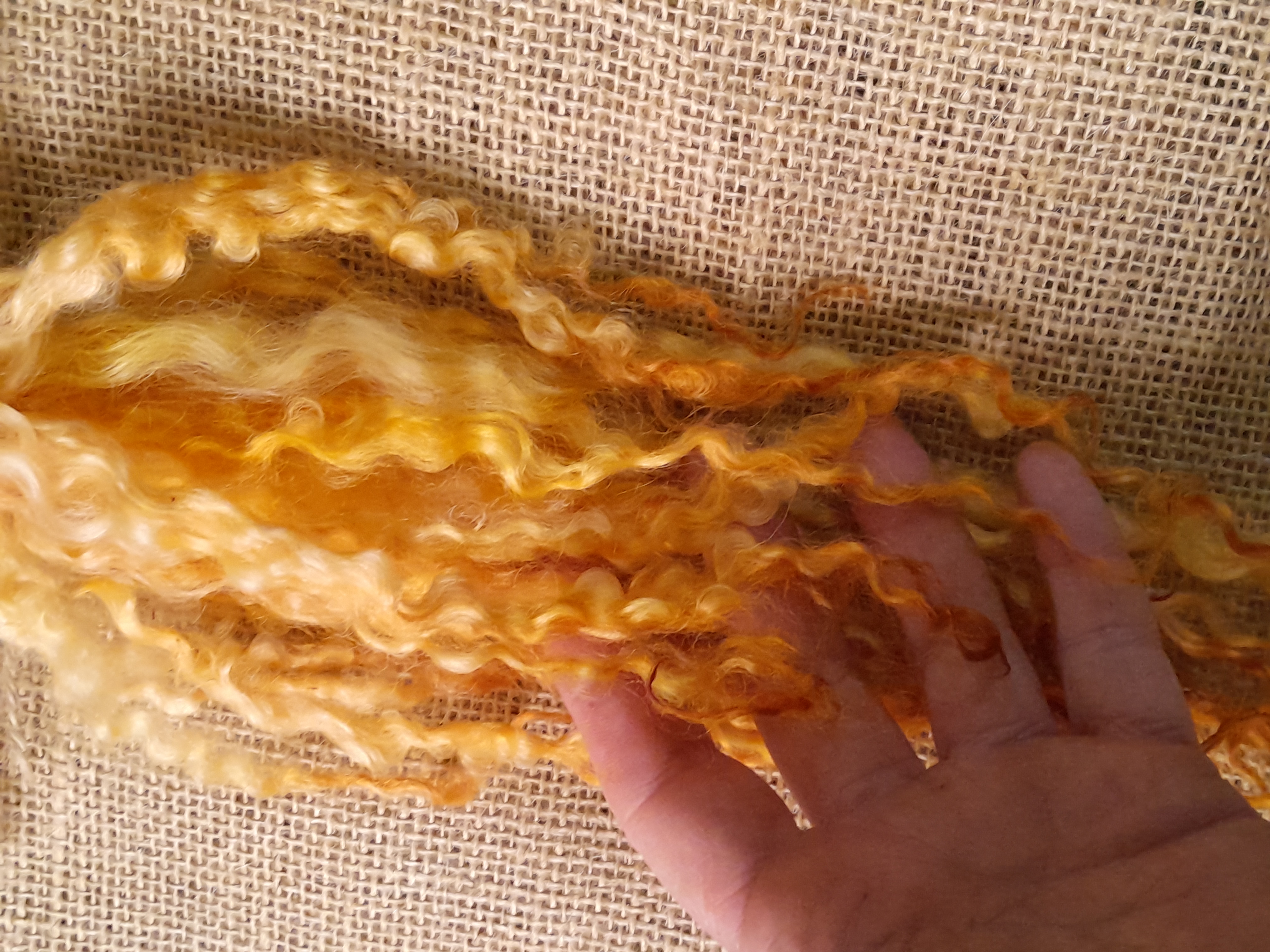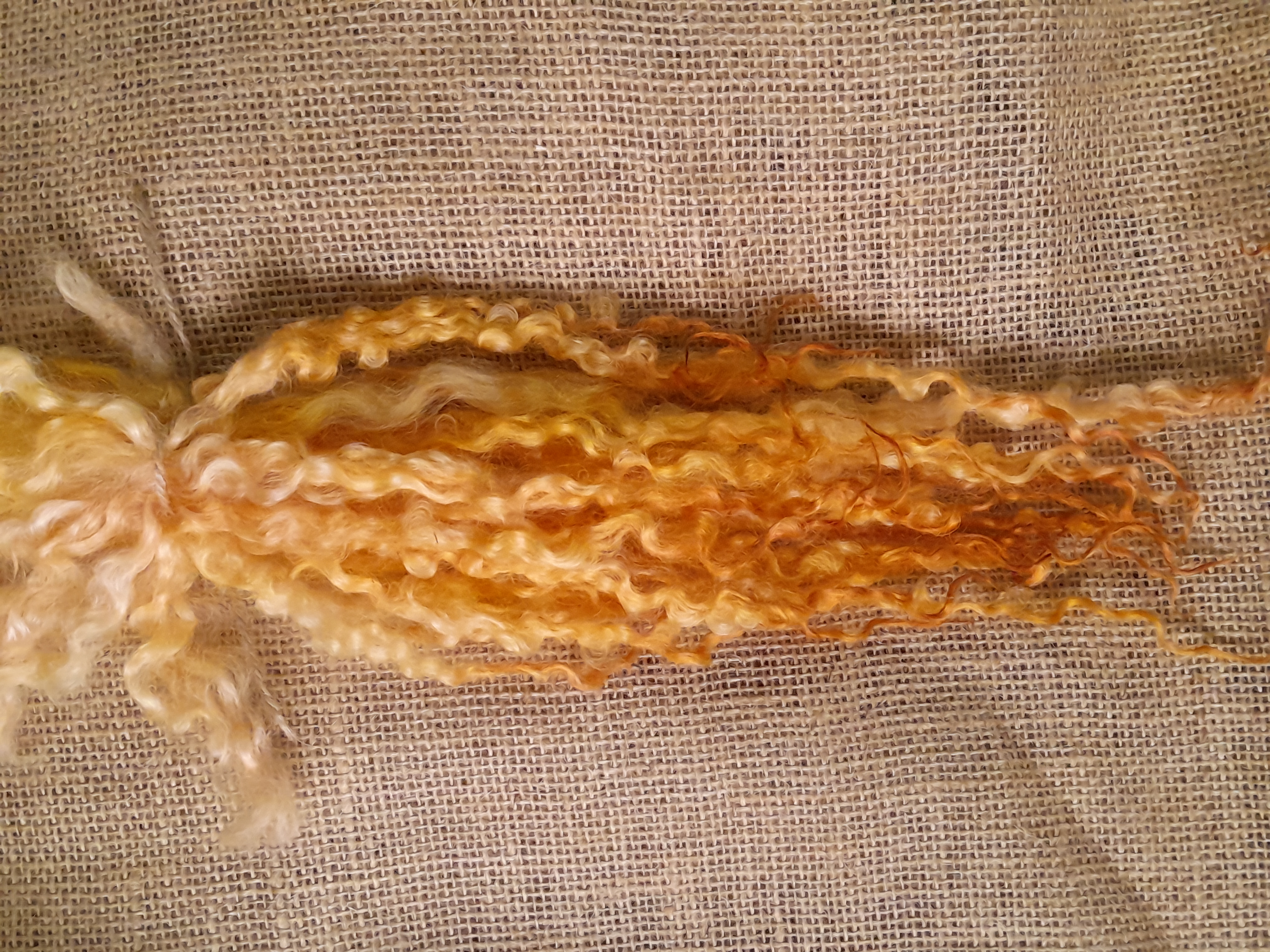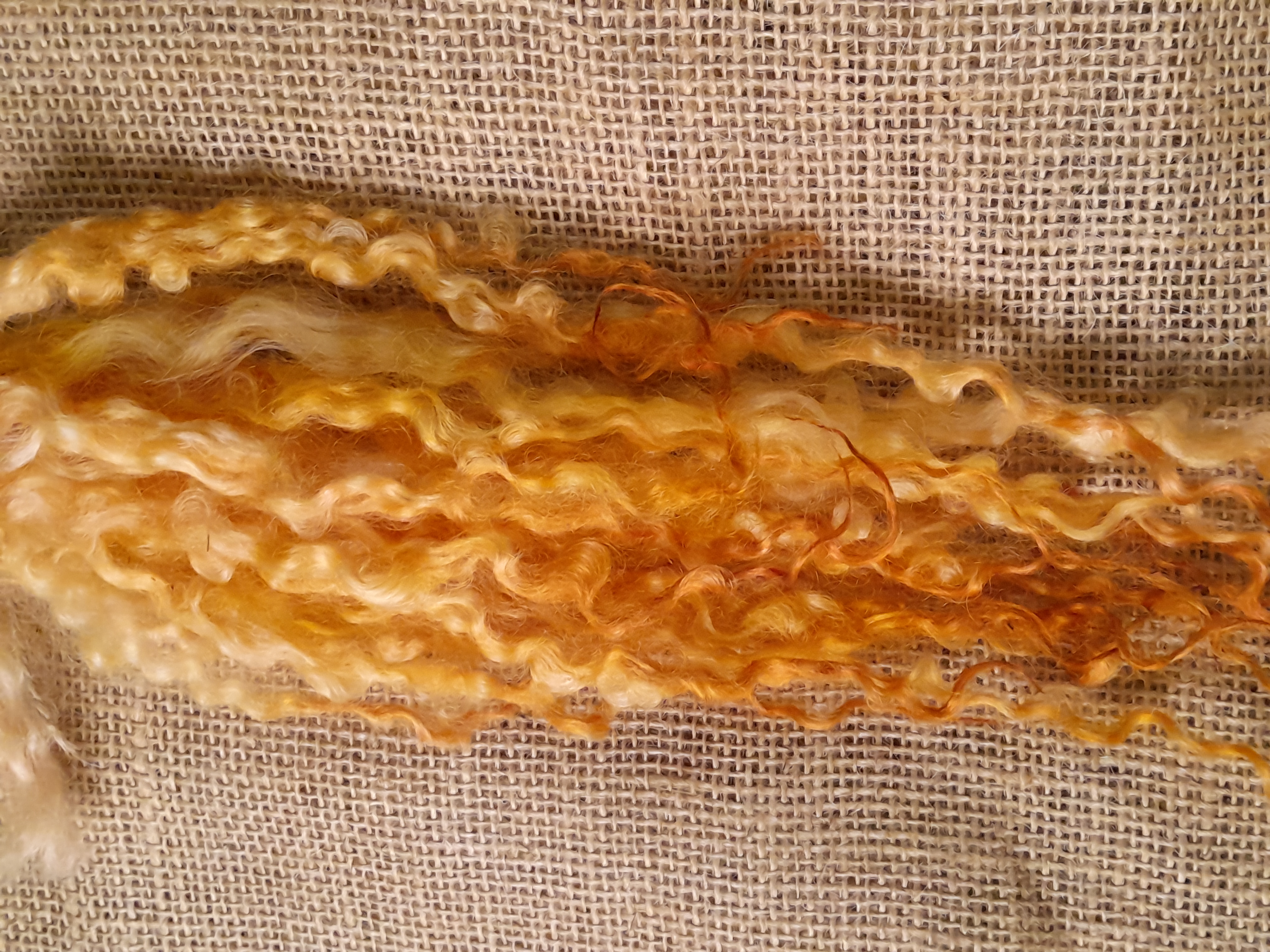 Sunny yellow and orange Masham Curly wool Locks, approx 8-12", 10g
