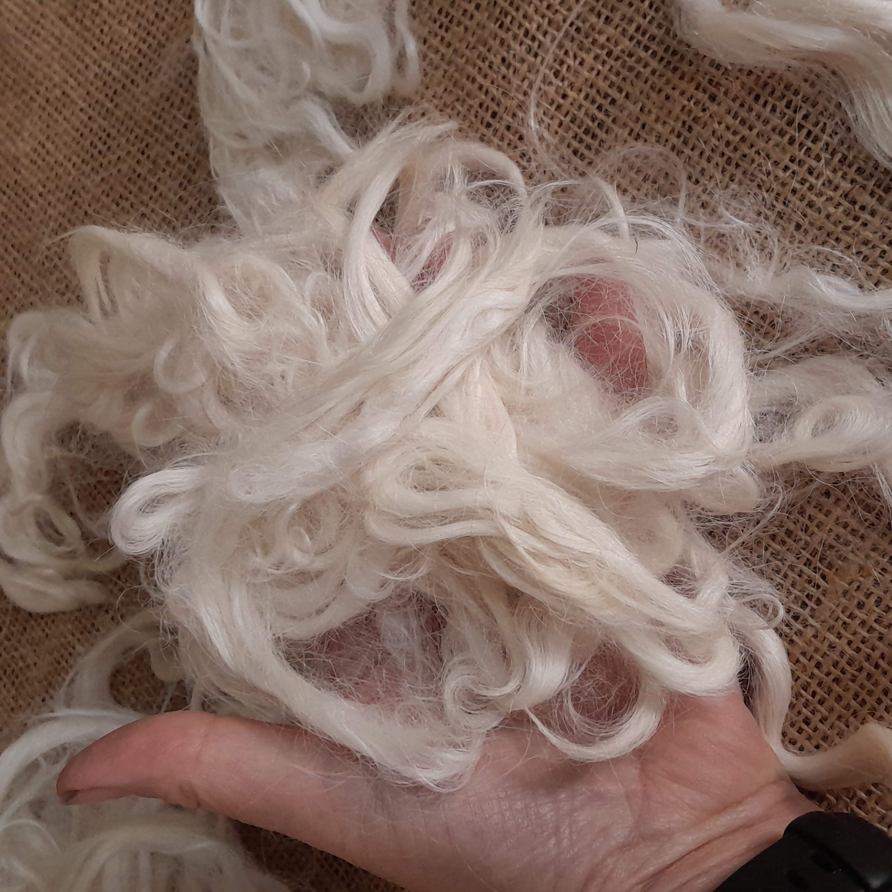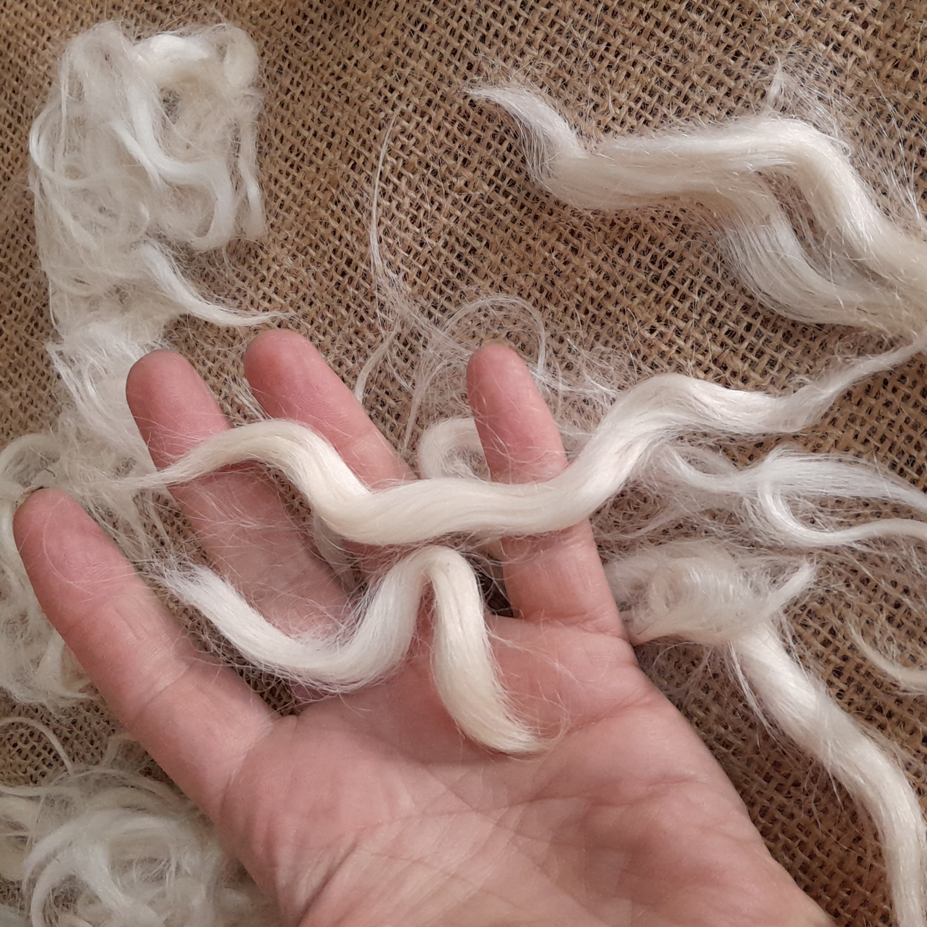 suri alpaca fibre, natural undyed white/cream perfect for beards