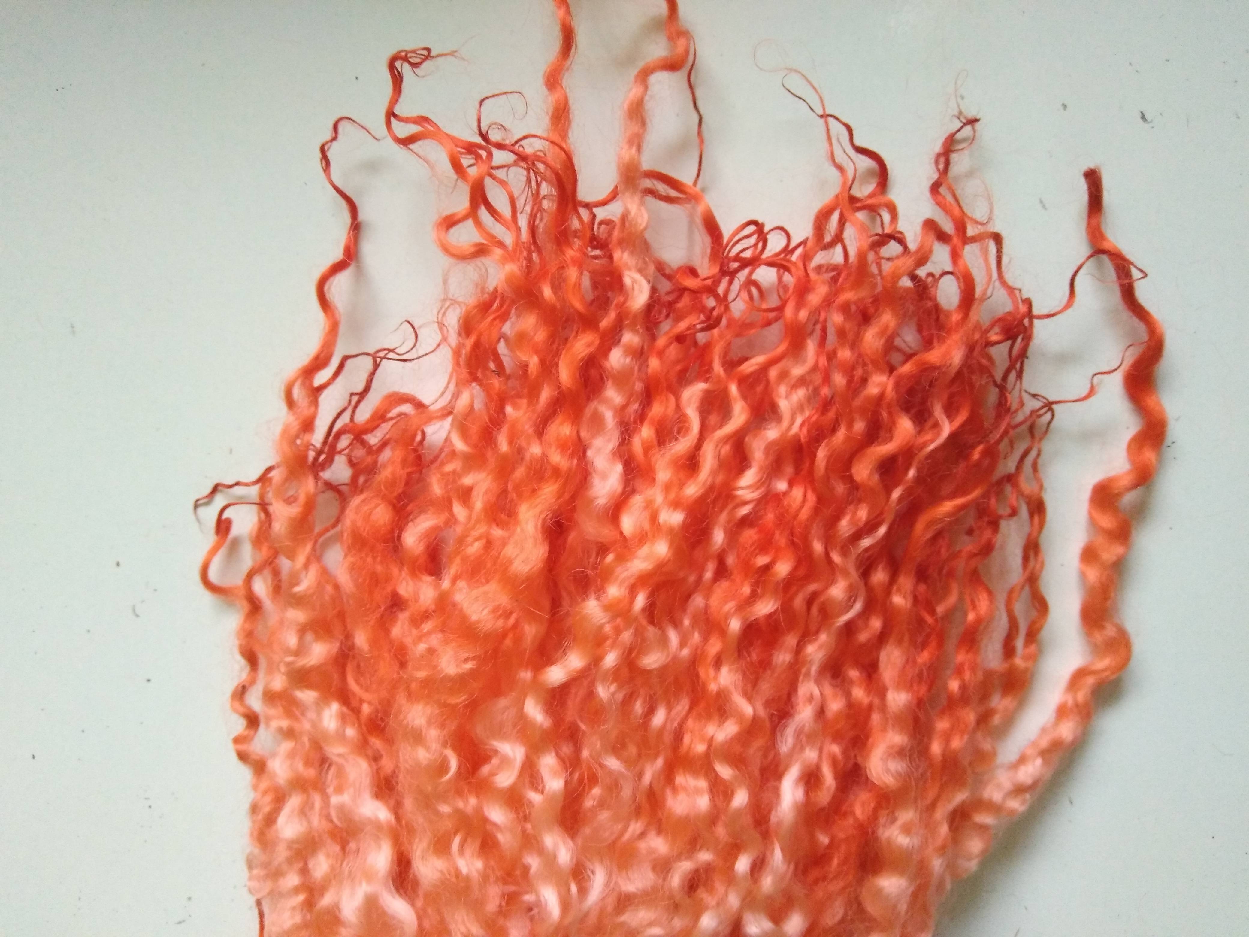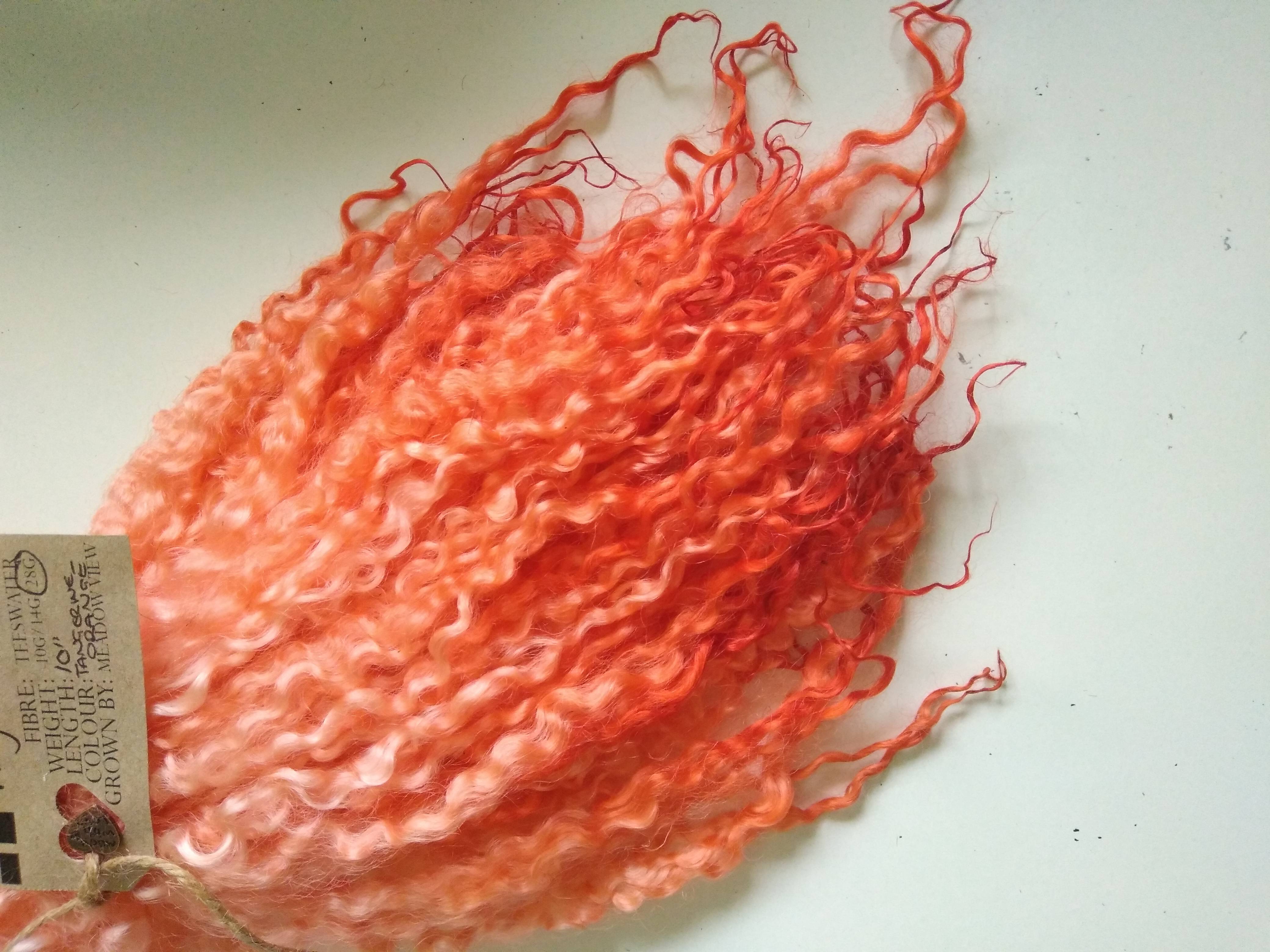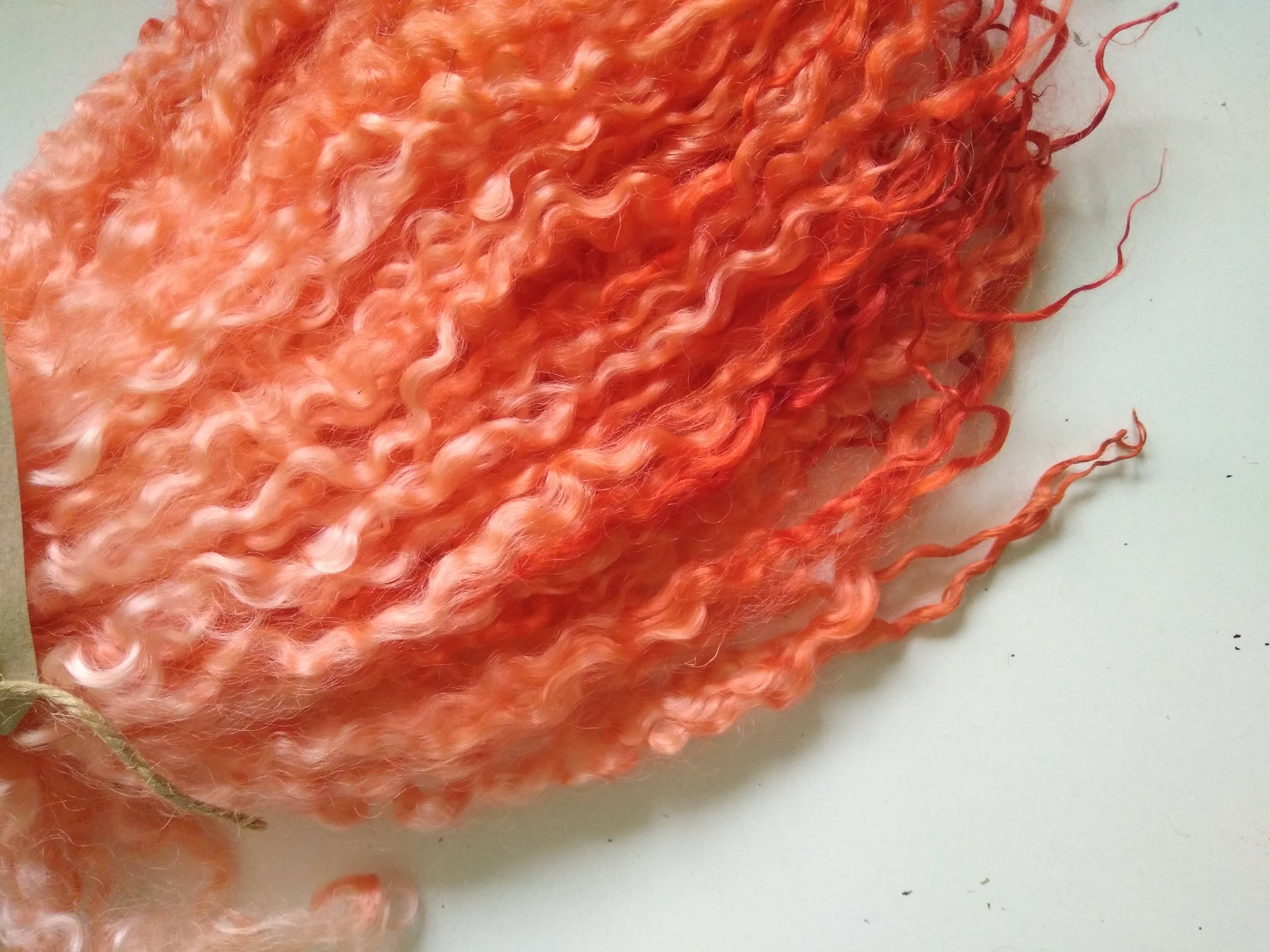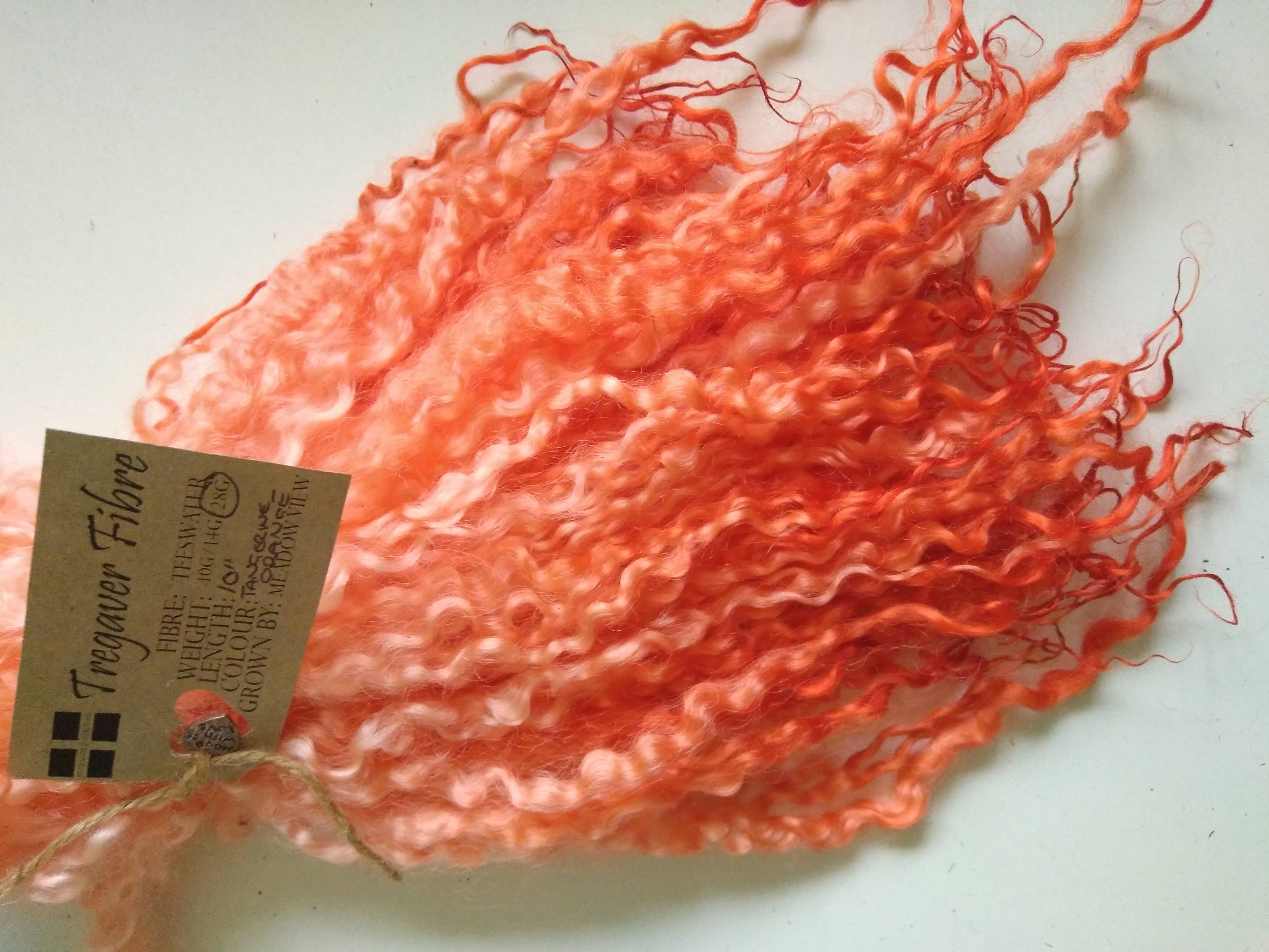 Tangerine orange Teeswater wool locks, 28g 14g or 7g