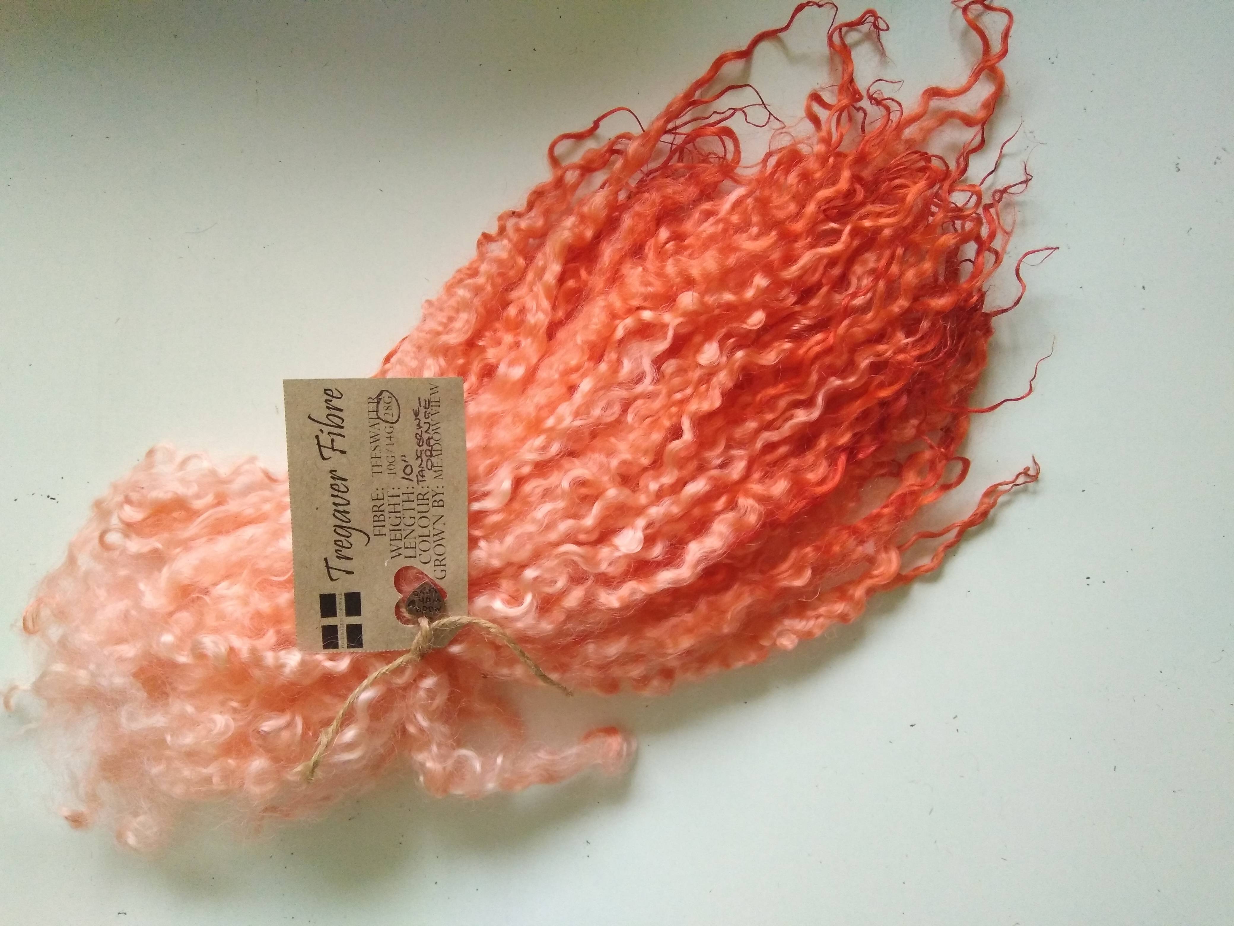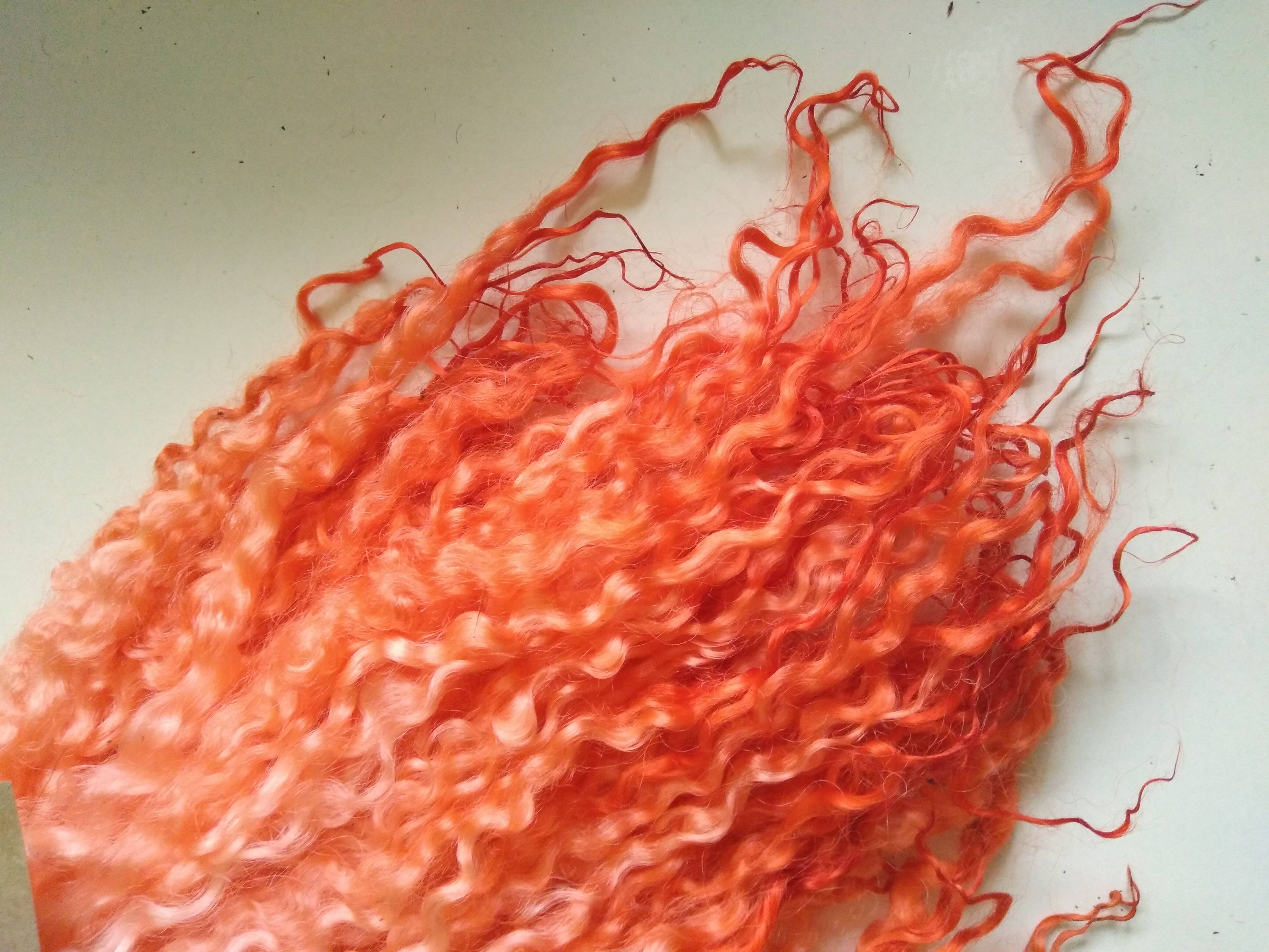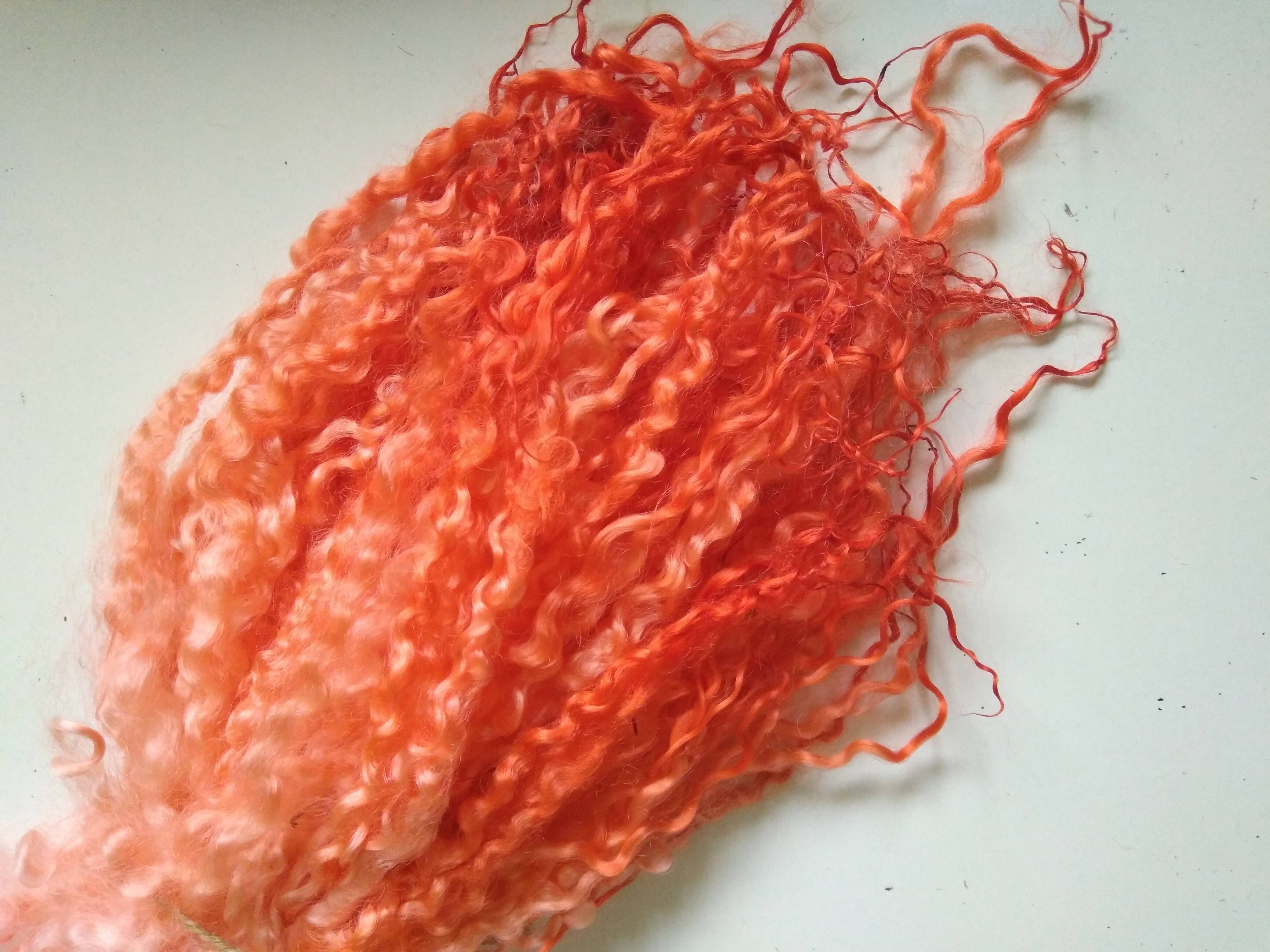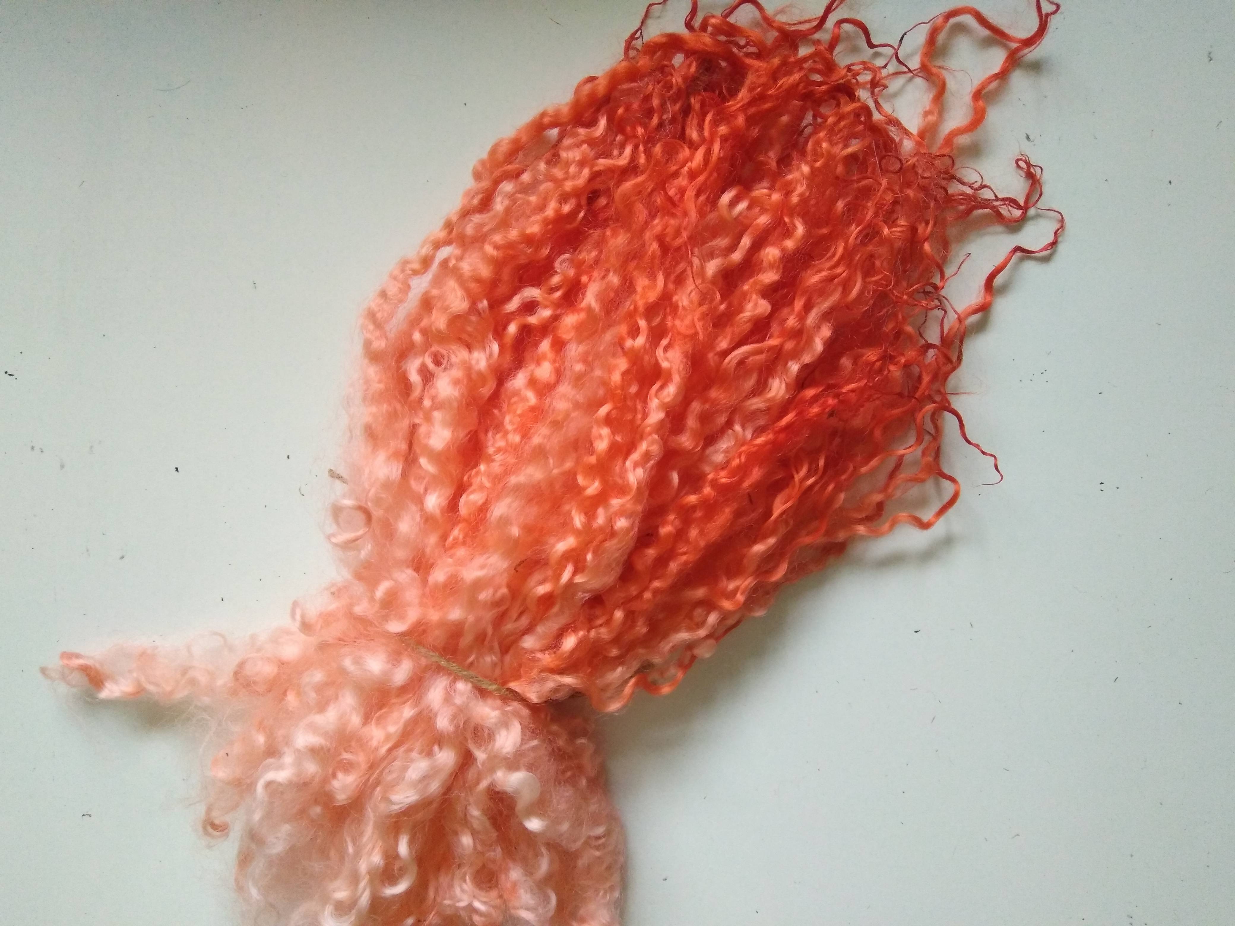 Tangerine orange Teeswater wool locks, 28g 14g or 7g