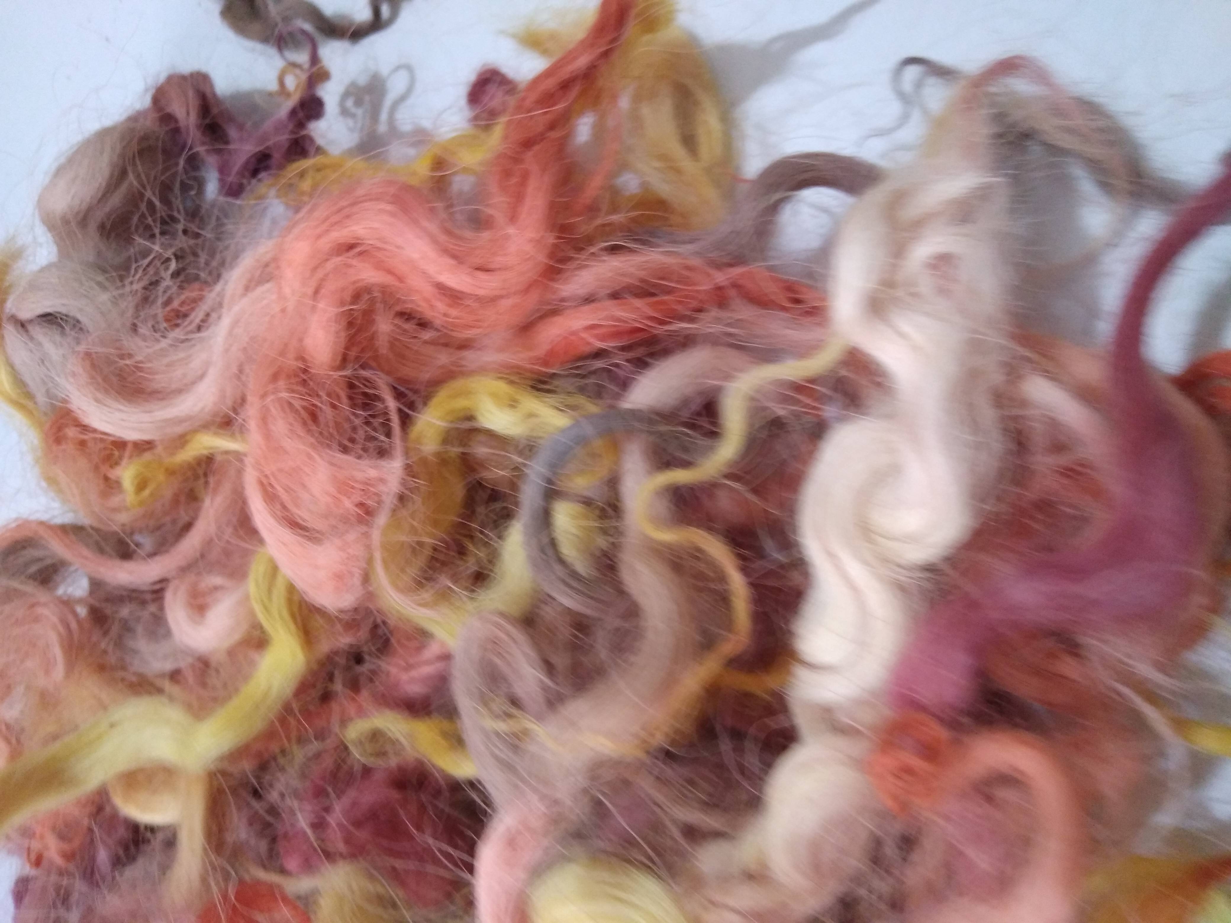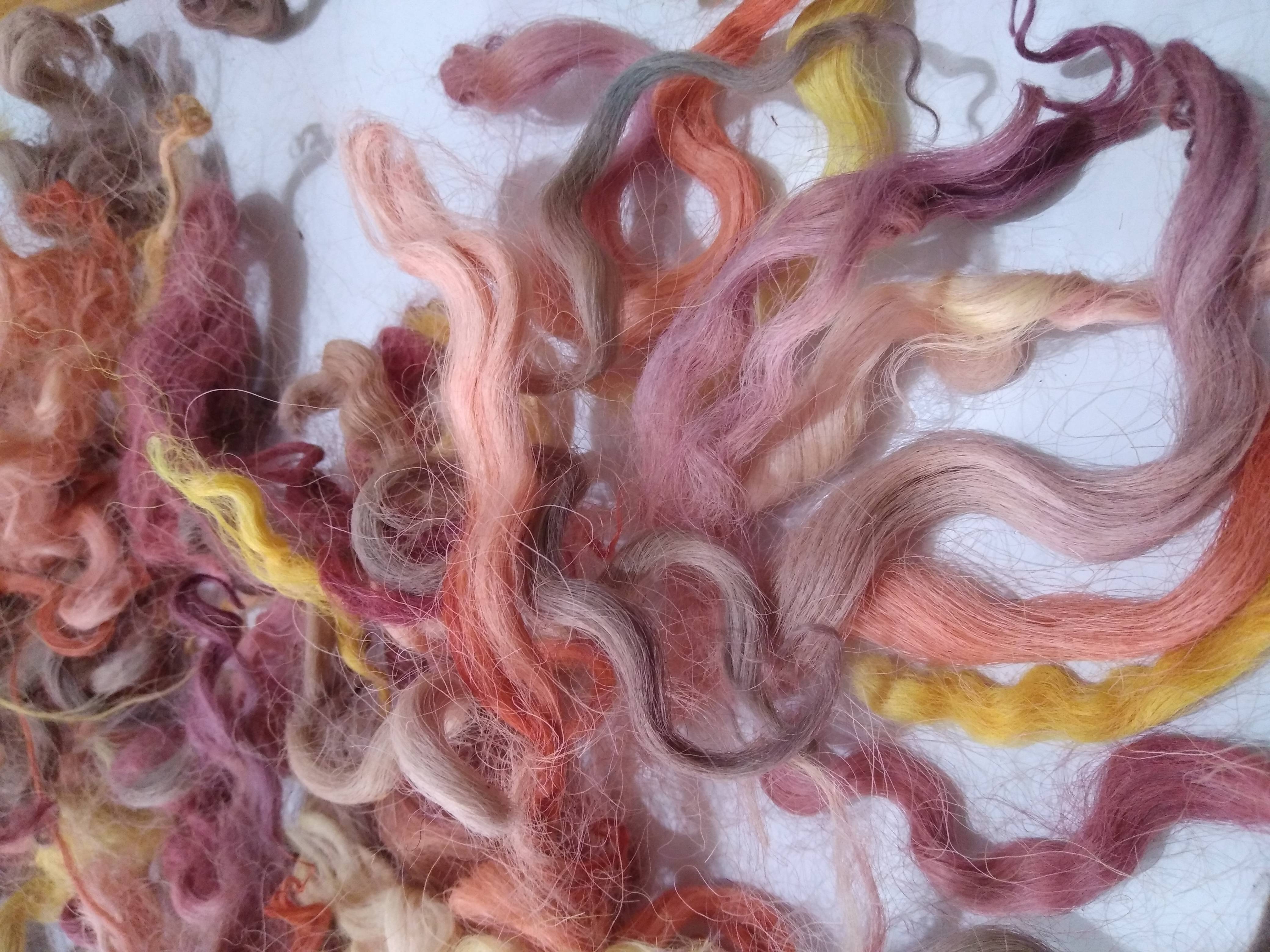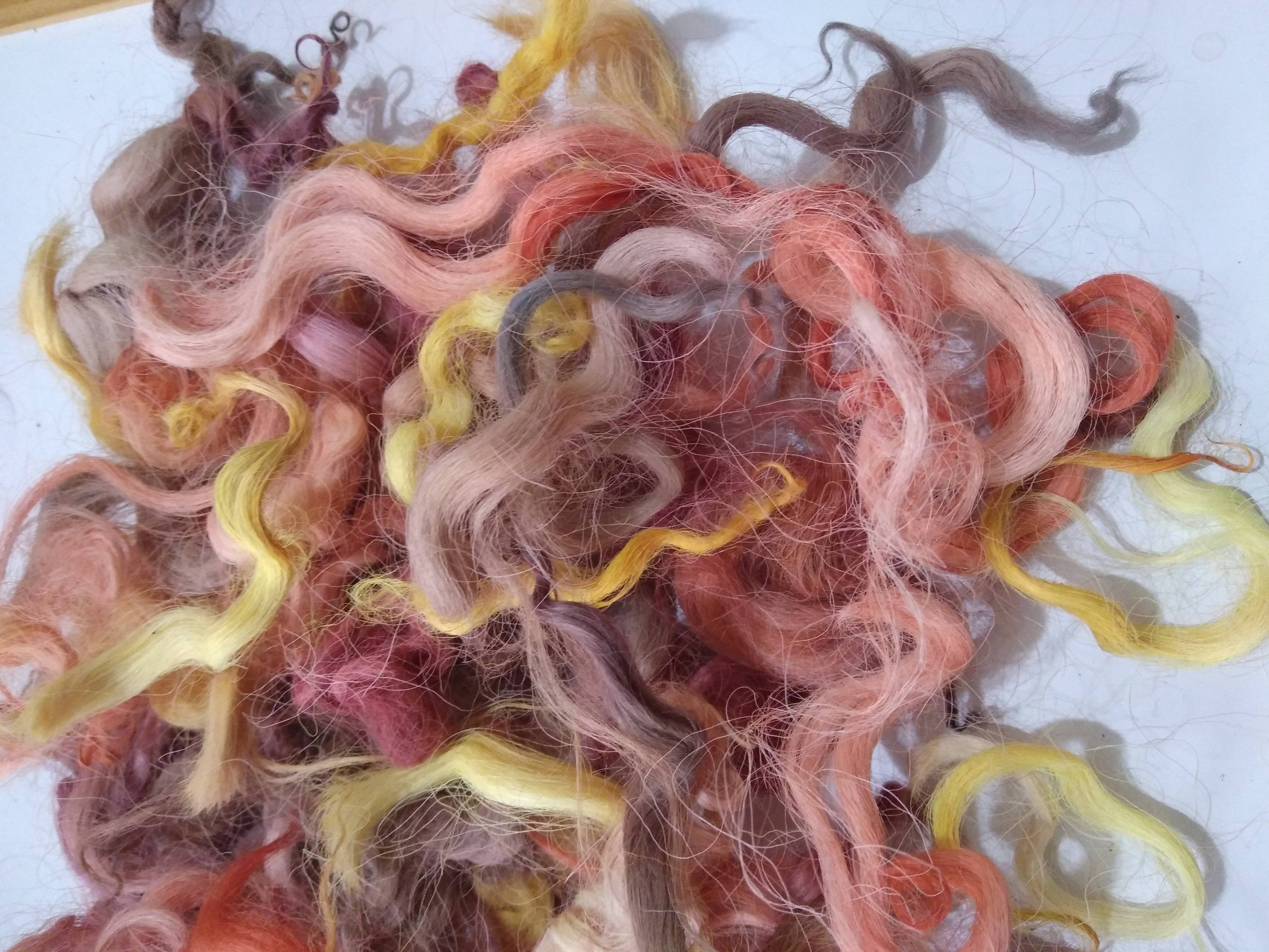 This fibre has been 100% hand processed (very well washed by hand multiple times) and is has been hand dyed in wide mixture of "Truly Autumnal" tones - oranges, reds, yellows, browns, maroons - all of the colours of the Autumn Leaves!