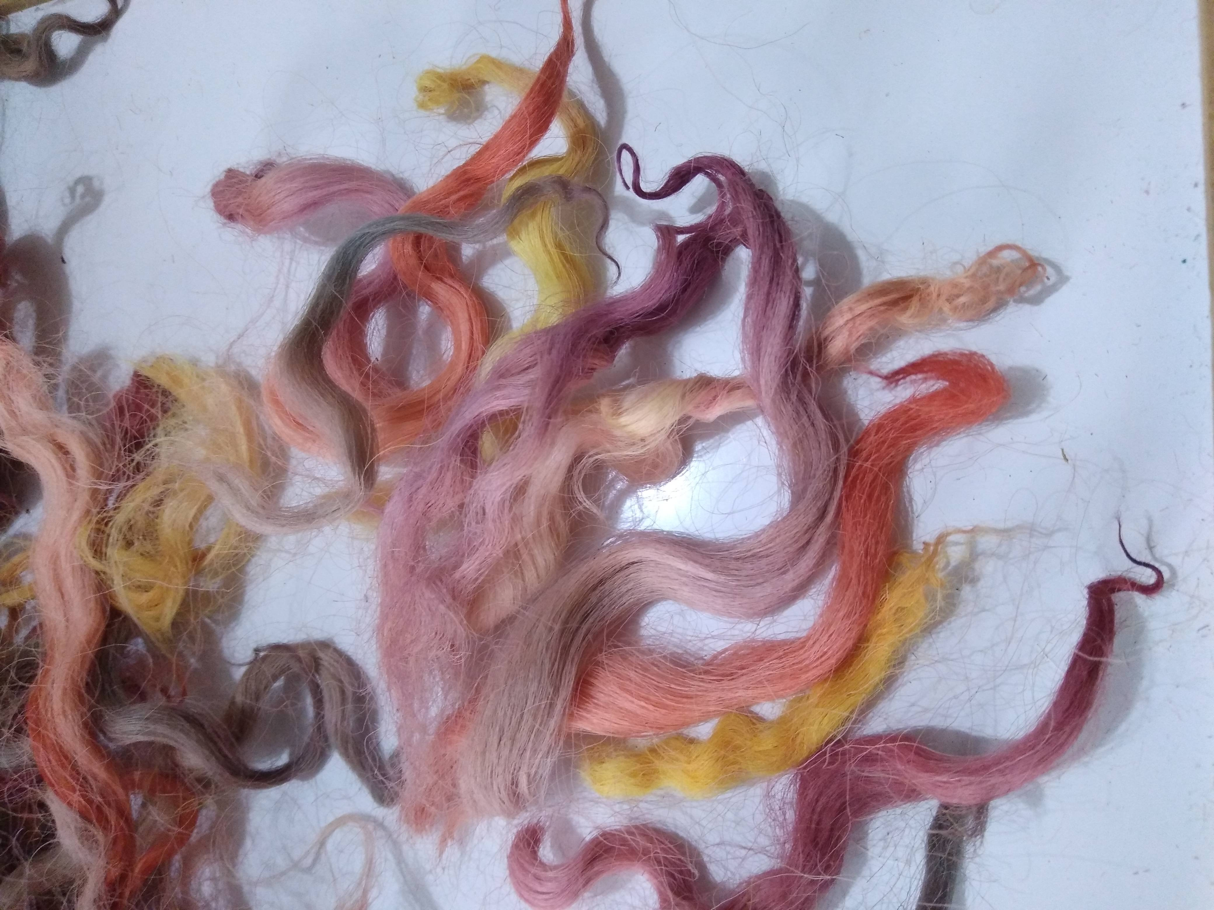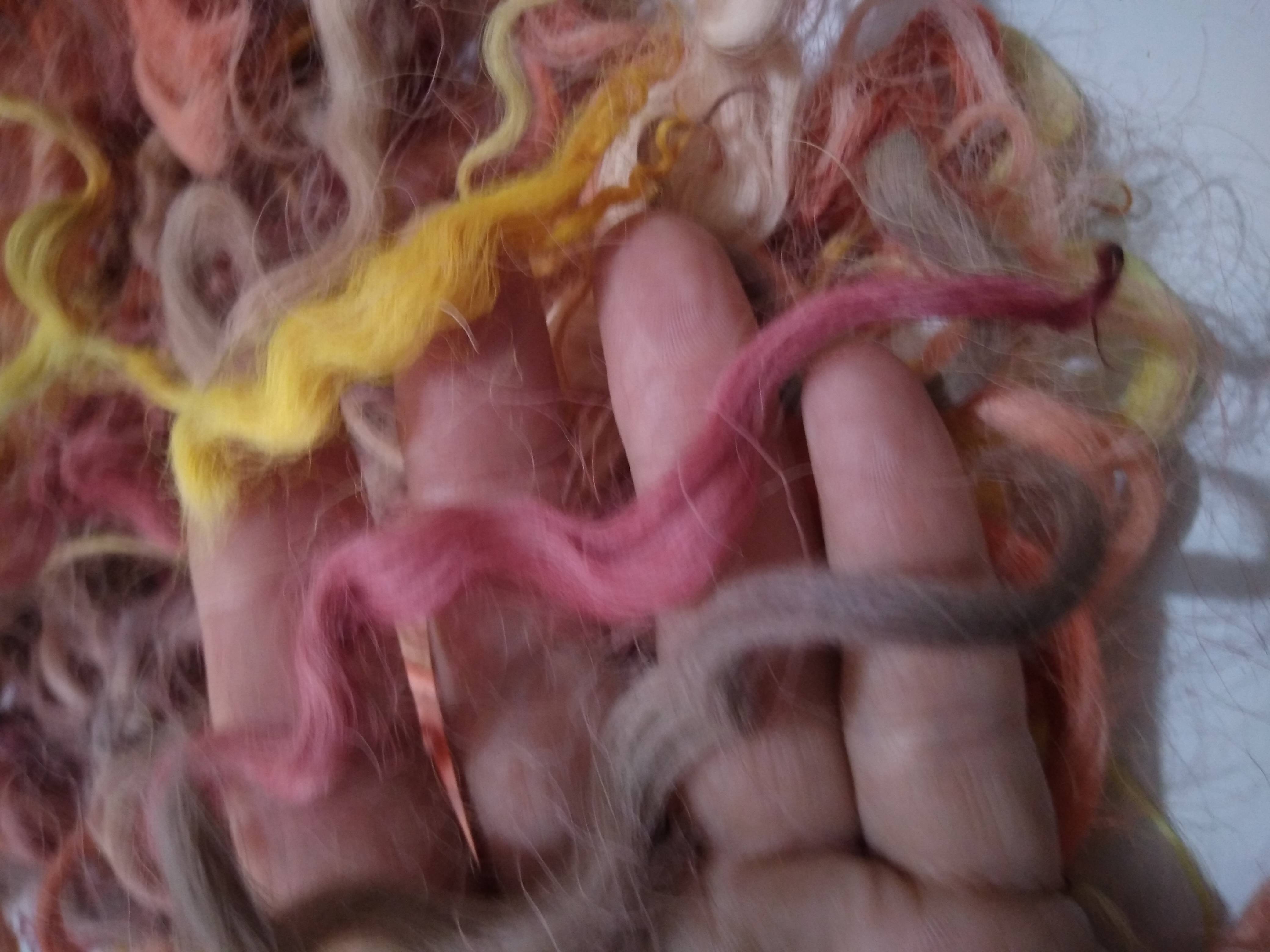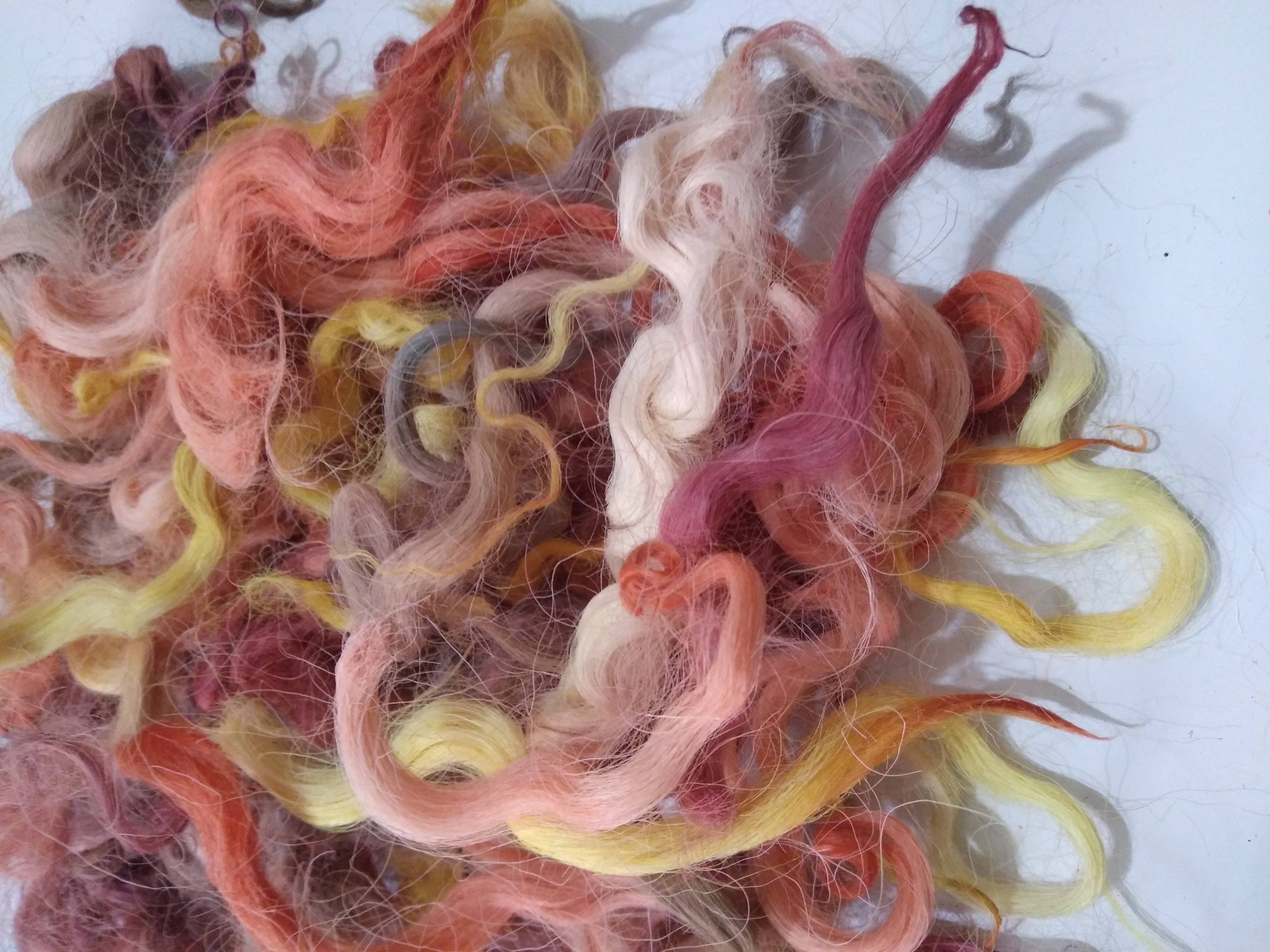 This fibre has been 100% hand processed (very well washed by hand multiple times) and is has been hand dyed in wide mixture of "Truly Autumnal" tones - oranges, reds, yellows, browns, maroons - all of the colours of the Autumn Leaves!