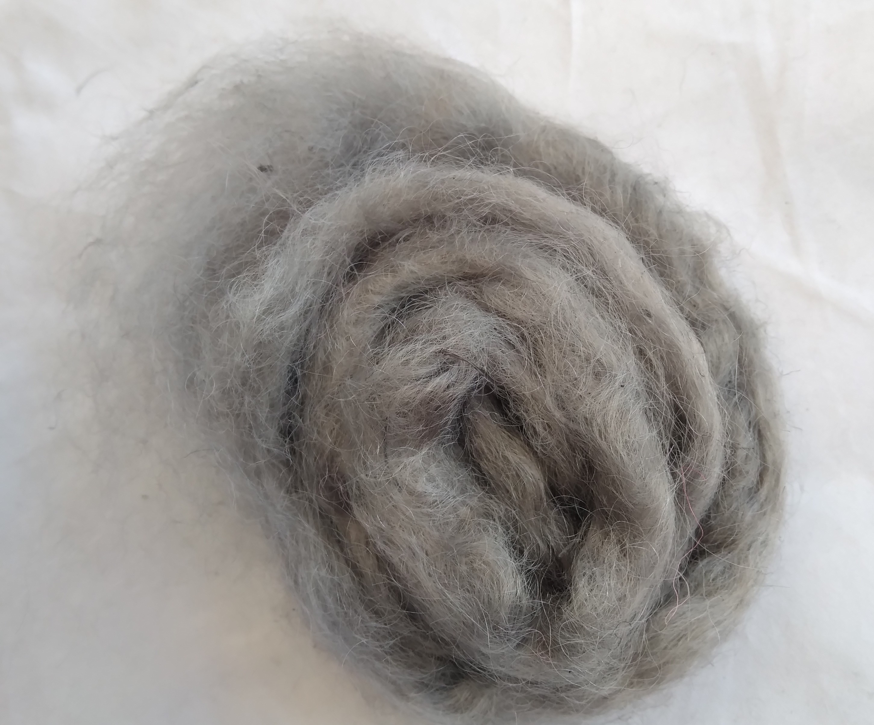 Hand Dyed, in silver, Mohair Carded Roving, 10g(v)