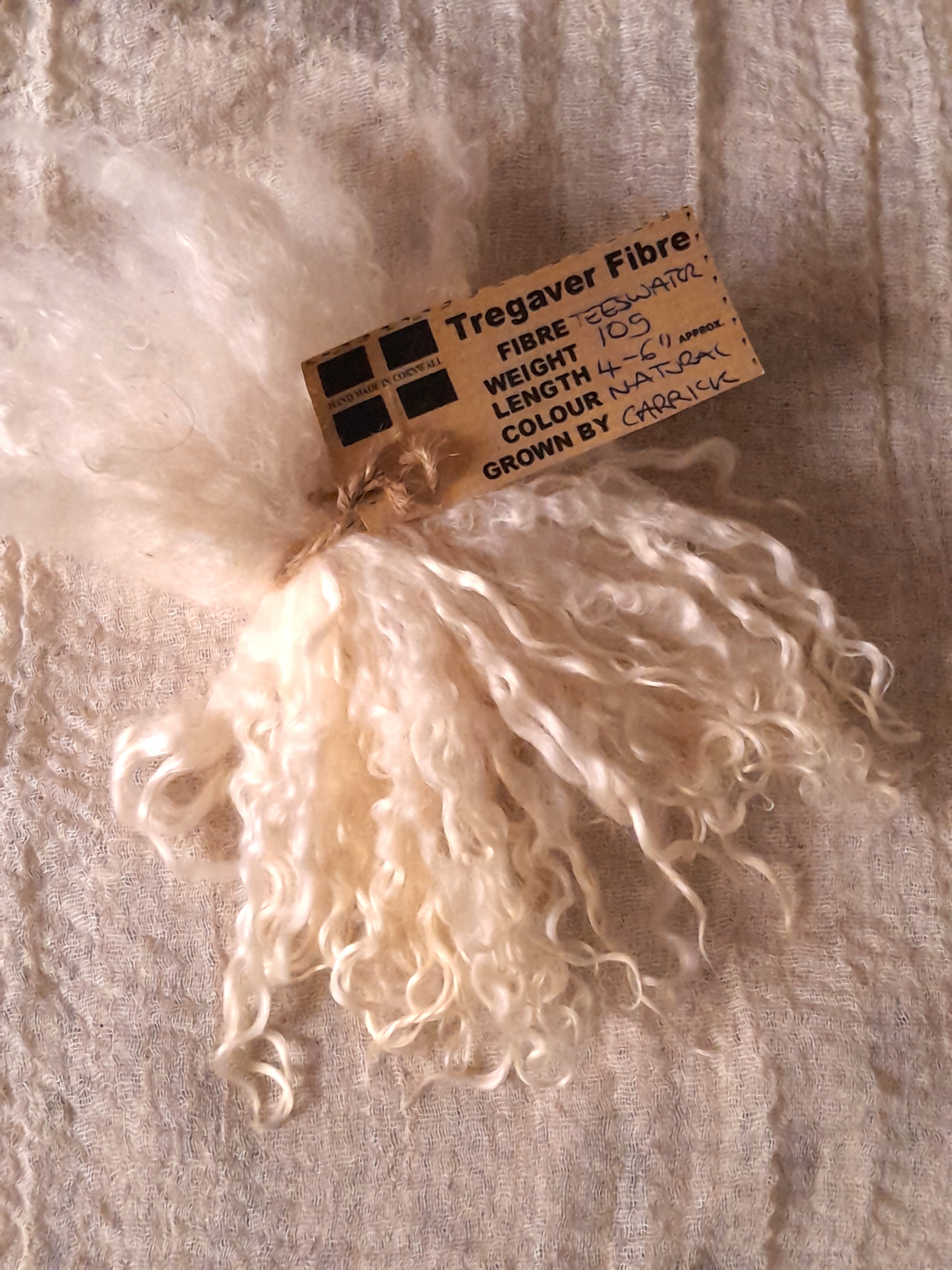 These have been 100% hand processed well washed, and are in a natural undyed tone - cream and white. Please note wool is not white unless it has been bleached or lightened, and we never use harsh chemicals during processing, so these ringlets are the natural colour of the teeswater sheep, Carrick, that they came from.