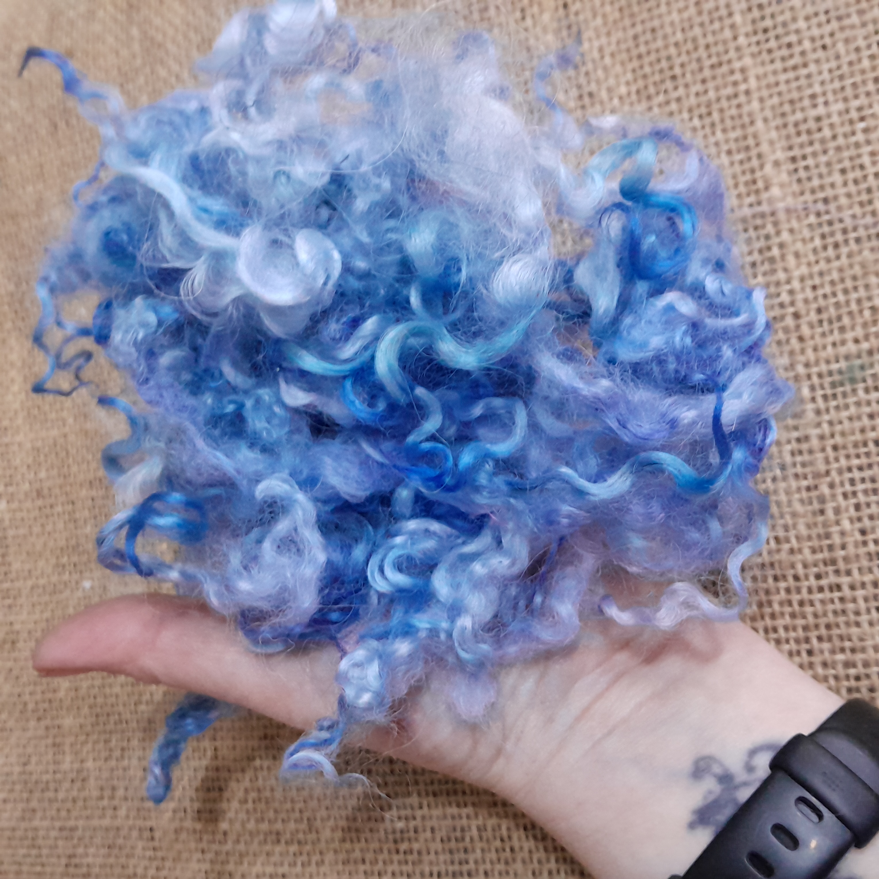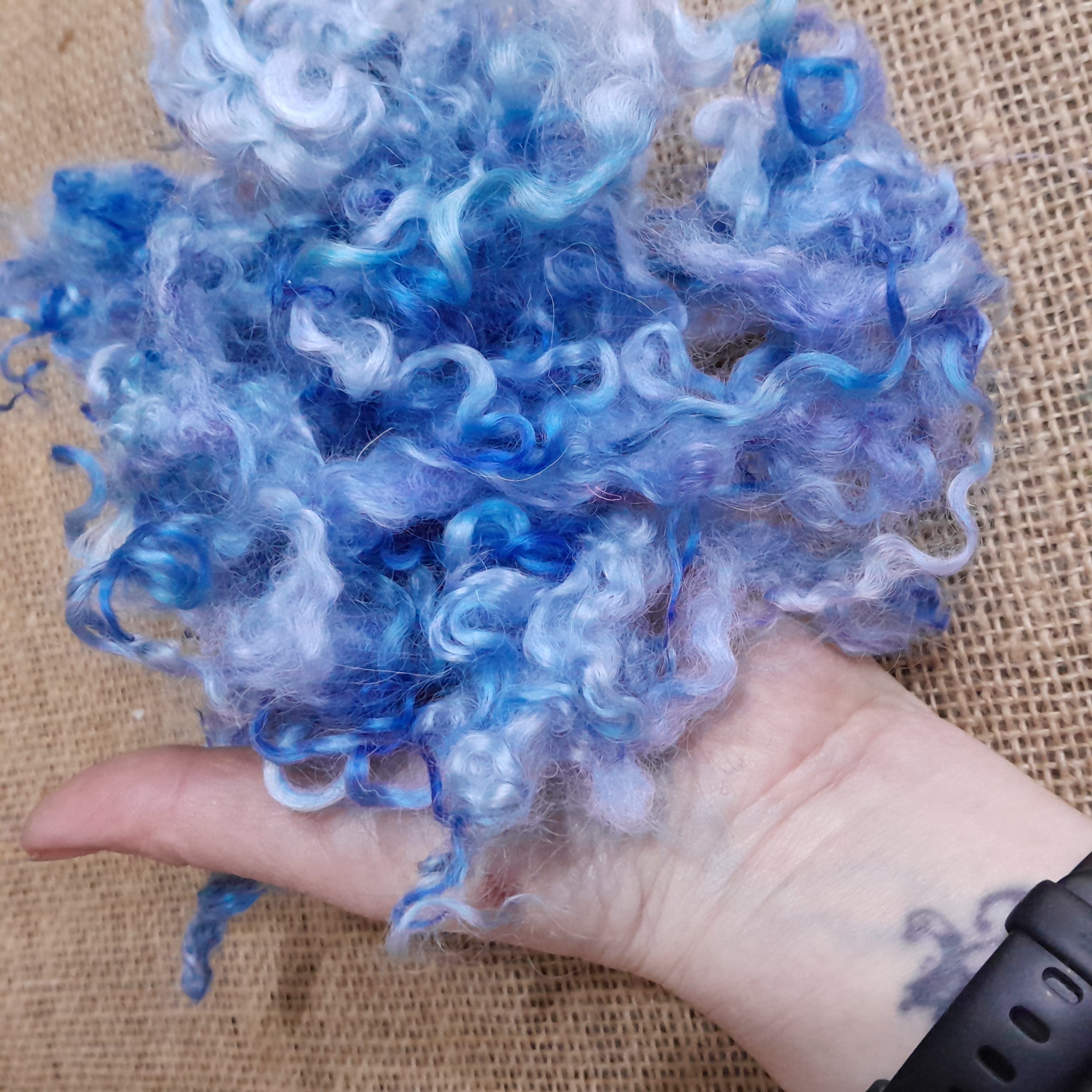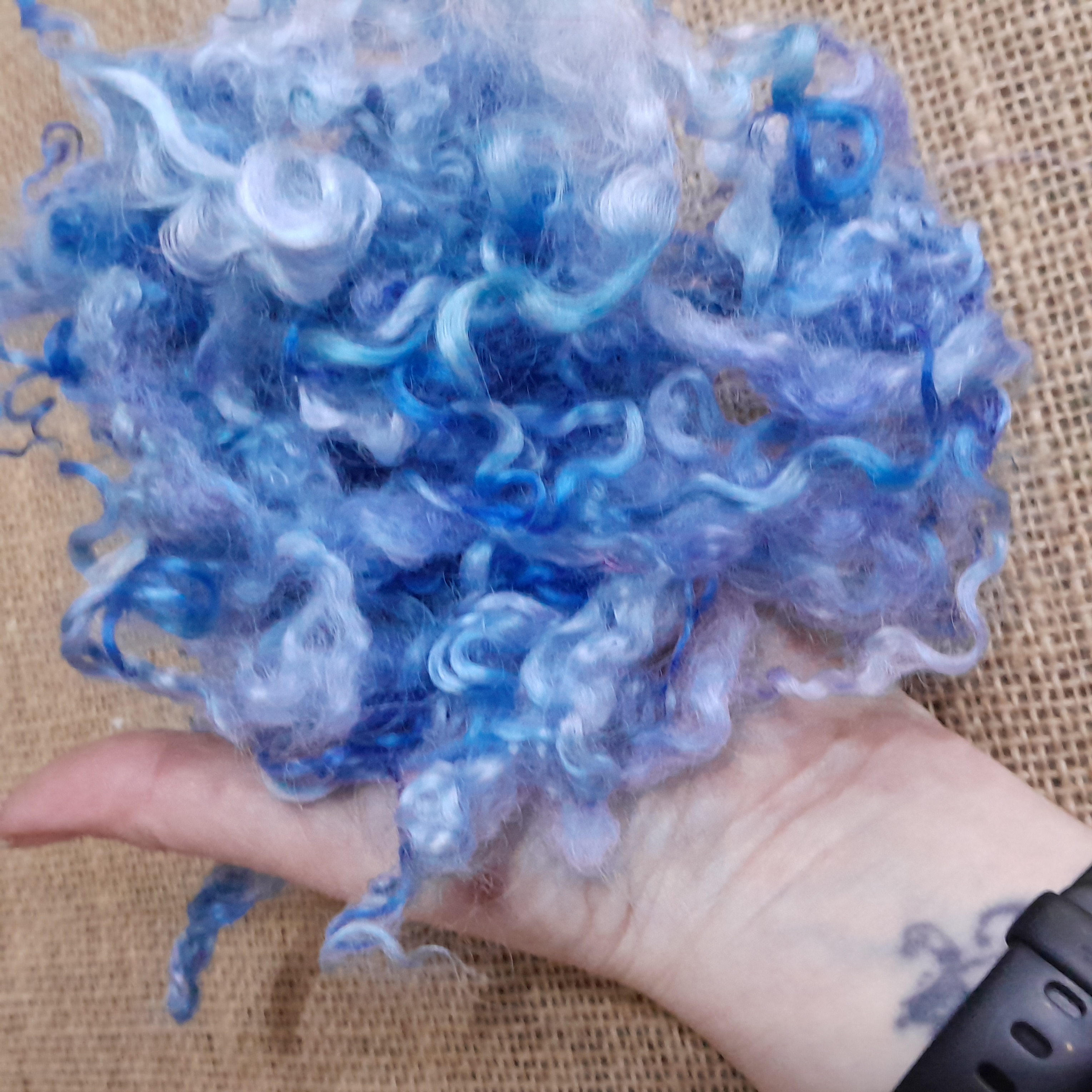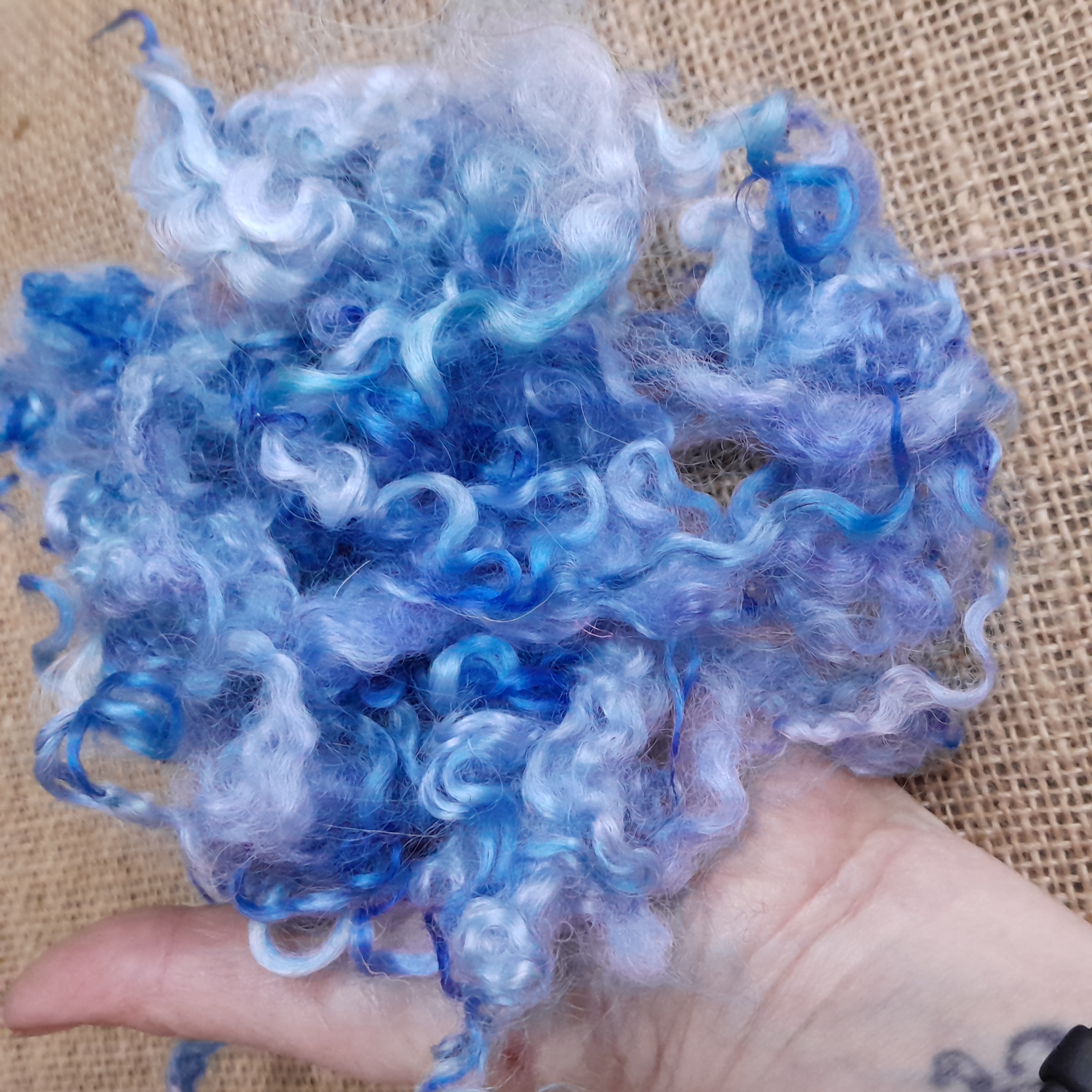 Introducing our delightful Blue Sky Teeswater Curly Wool Locks and Ringlets! Perfect for all your crafting needs, these luxurious 10g bundles of wool are not just any ordinary fibres; they are the essence of creativity wrapped in a soft, curly embrace. Each lock is a beautiful blend of vibrant blue hues, reminiscent of a clear sky on a sunny day, making them an ideal choice for your next project.