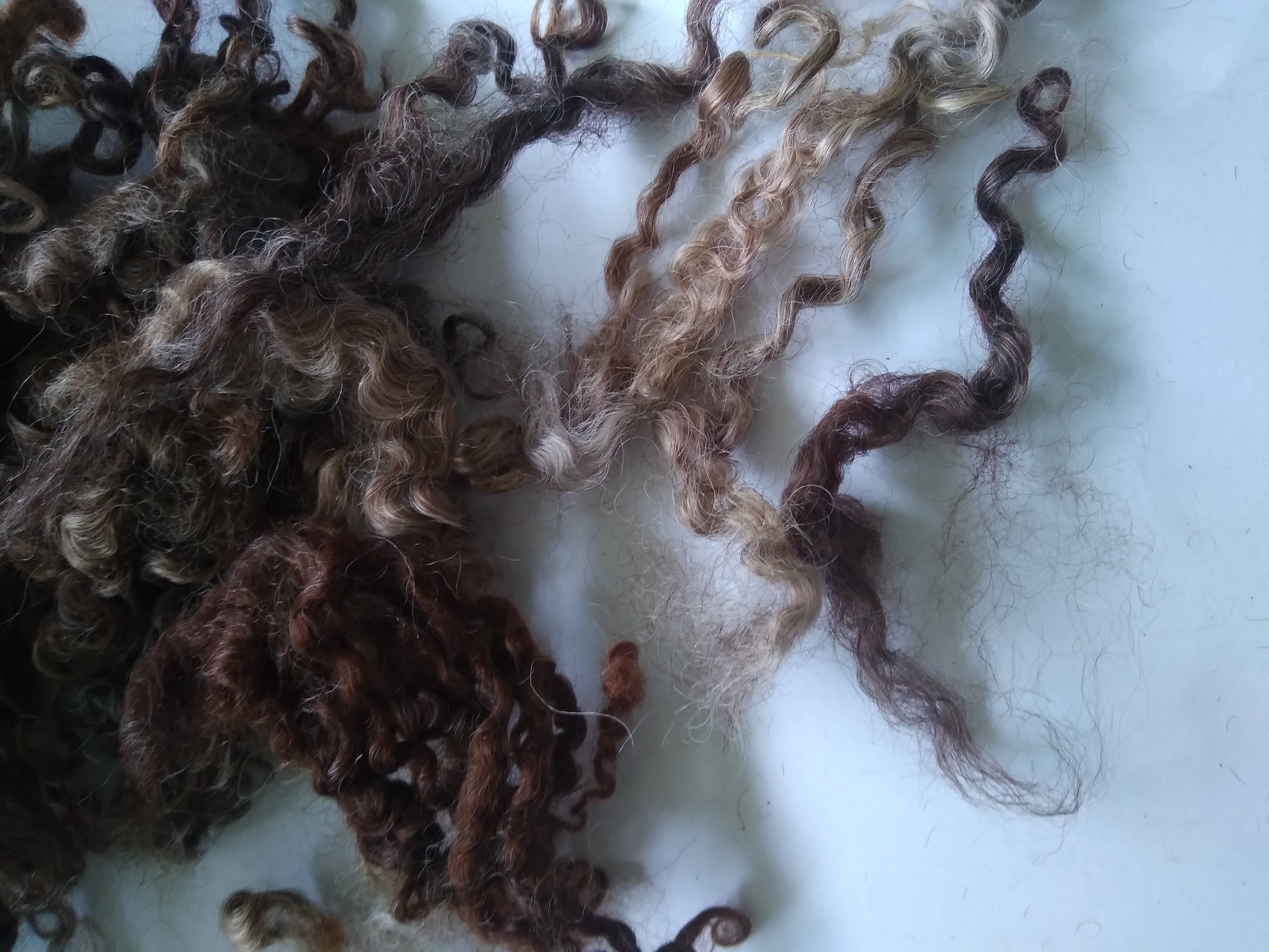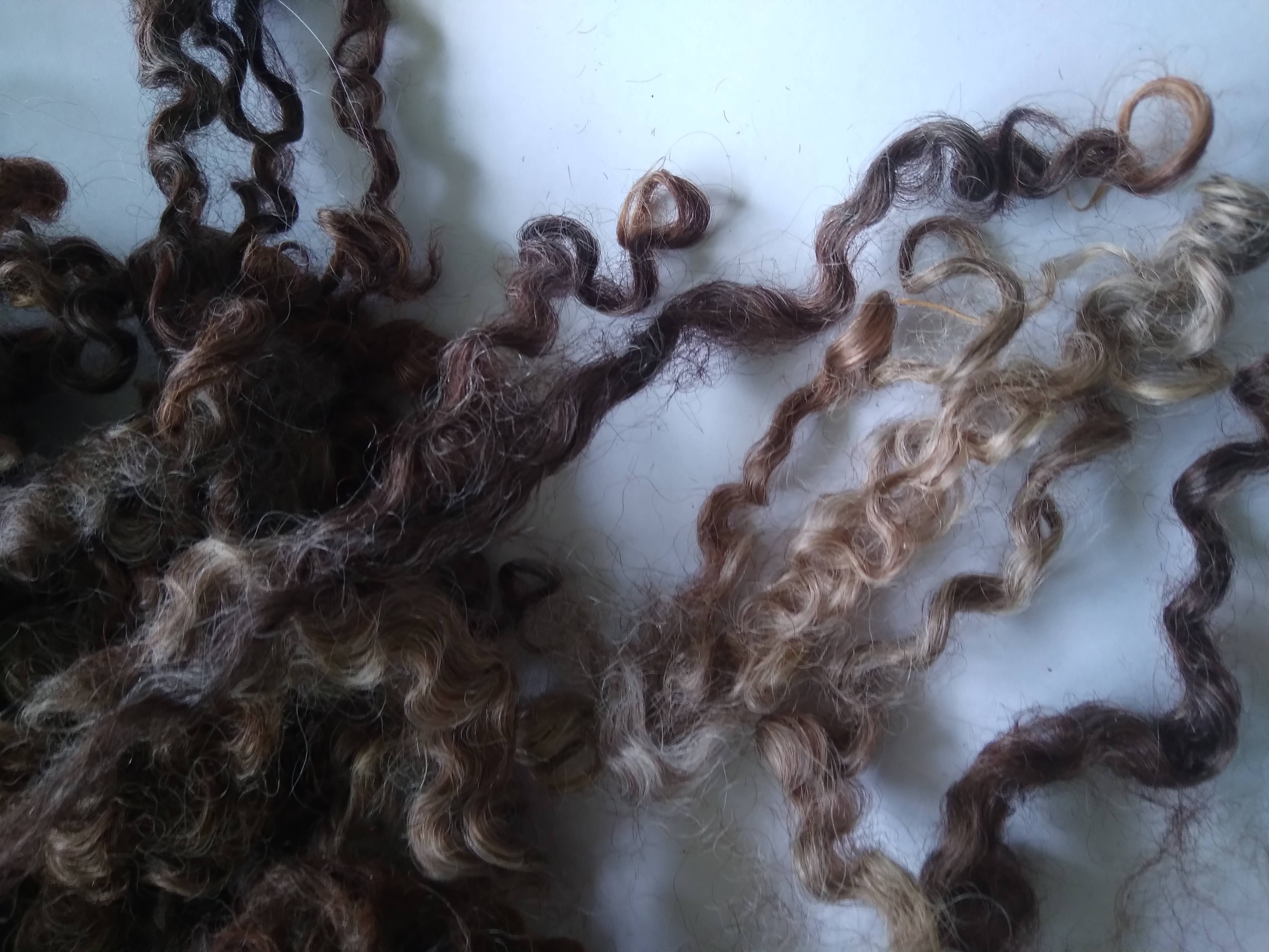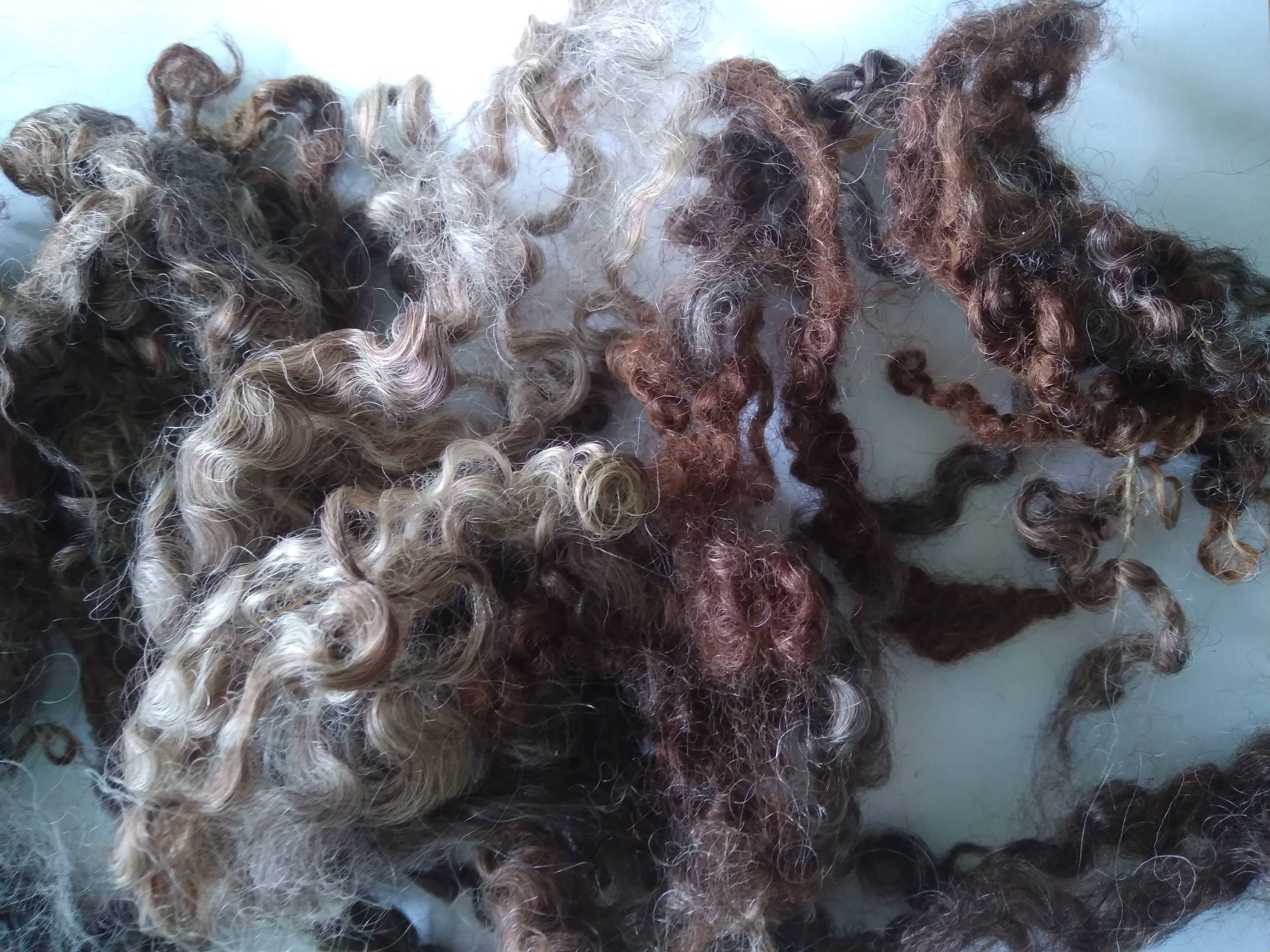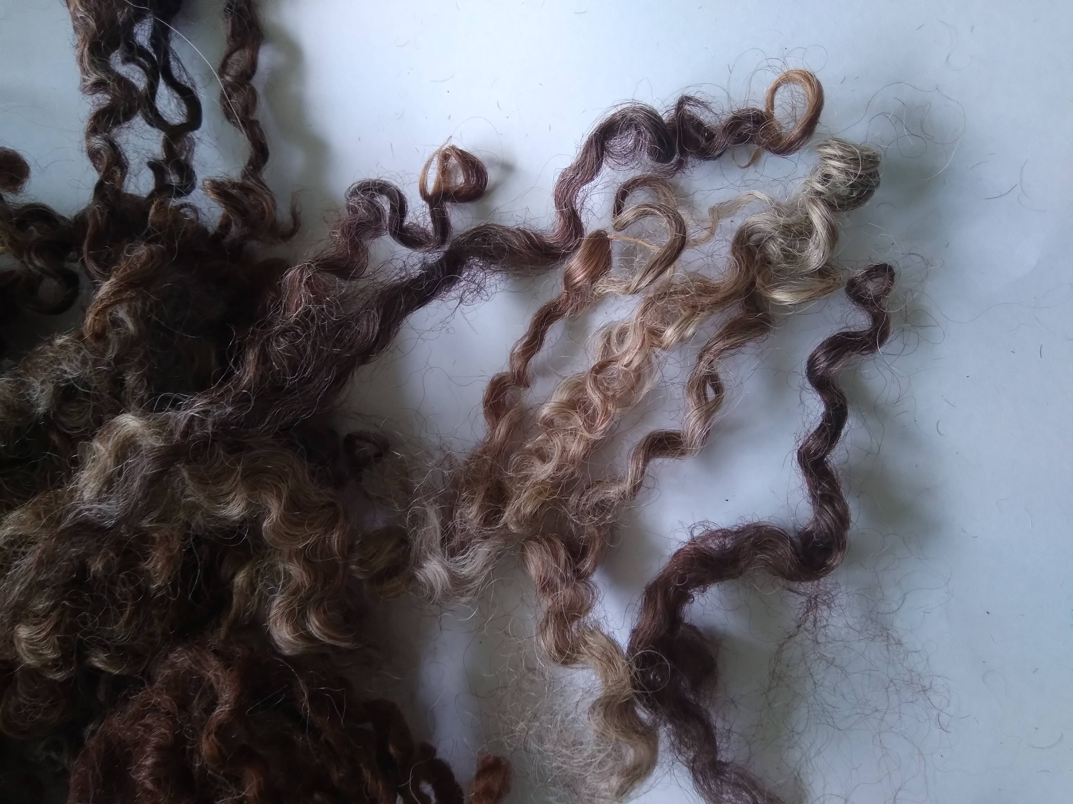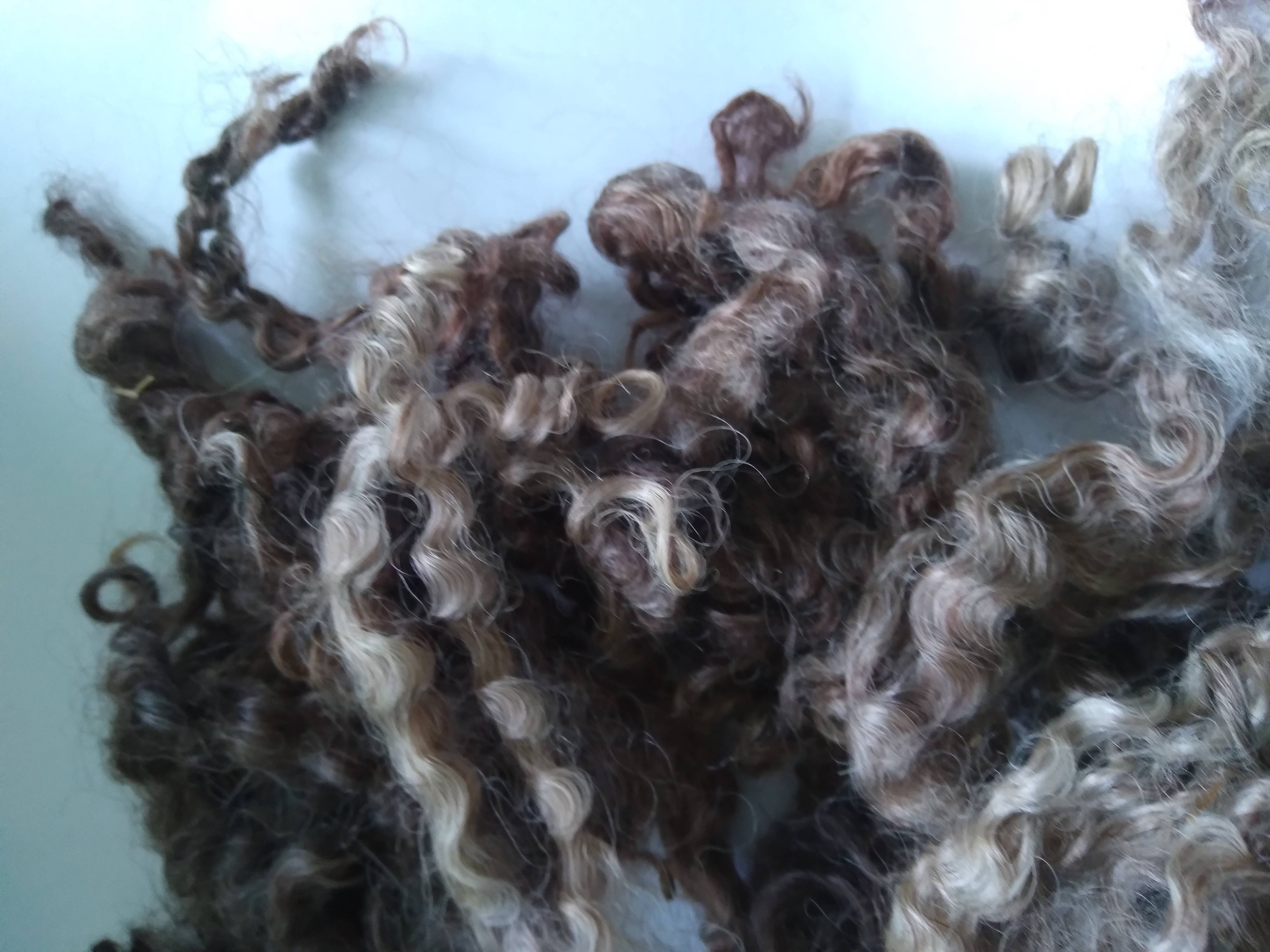 100% hand processed and undyed, this curly wool and ringlet locks come from Endelyn, one of our Wensleydale ewes who has a very multi tonal fleece.