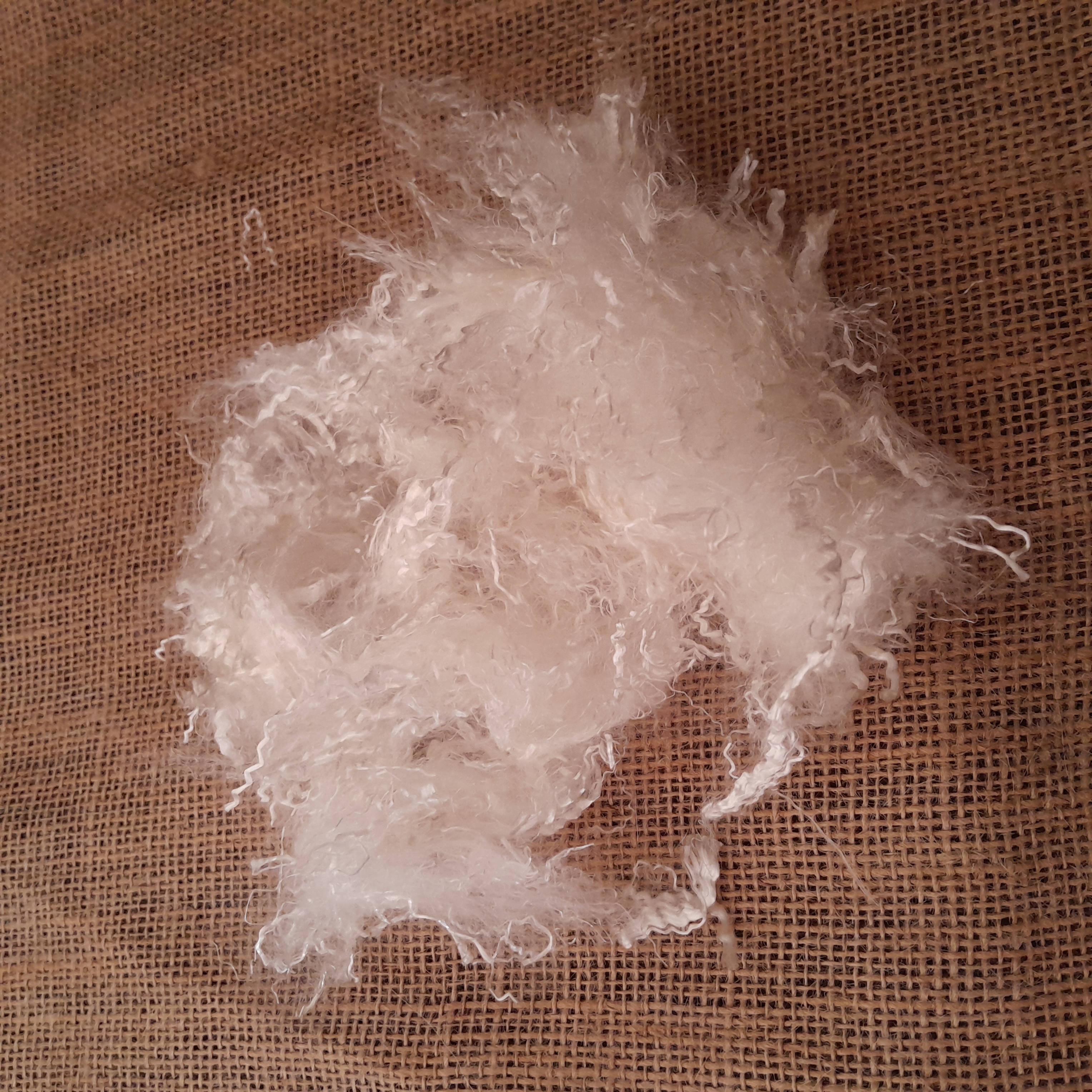 As it is a wood pulp fibre, it does not have hooks and barbs like wool, so it takes a little more work to felt into your work, but is suitable for needle felting, wet felting and spinning too, plus any other uses that needs a shiny, shimmery, sustainable fibre!